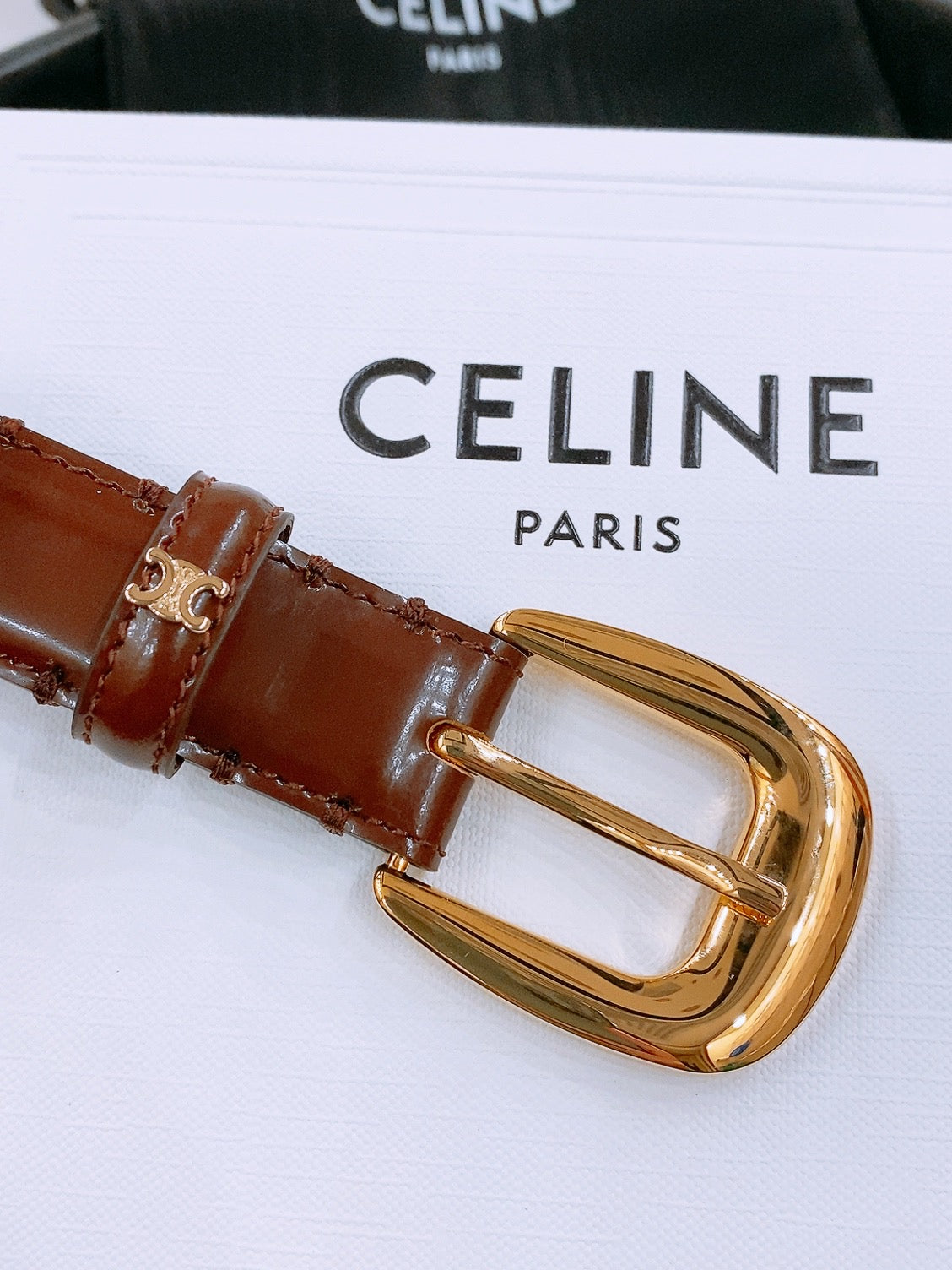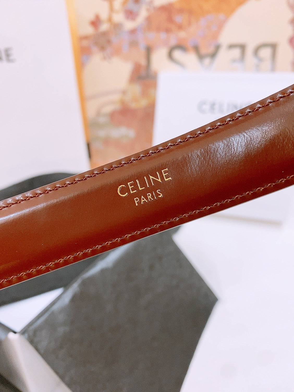 CELINE 25S BELT 25MM WITH ARC DE TRIOMPHE BUCKLE IN BURNT UMBER 571500