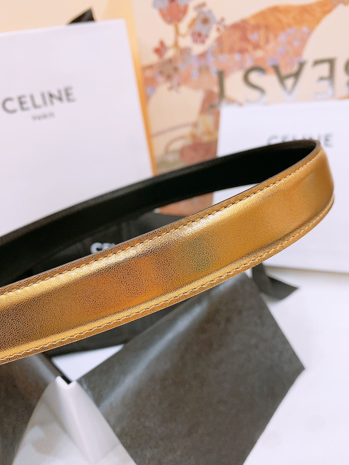 CELINE 25S BELT 25MM WITH ARC DE TRIOMPHE BUCKLE IN GOLD 571497