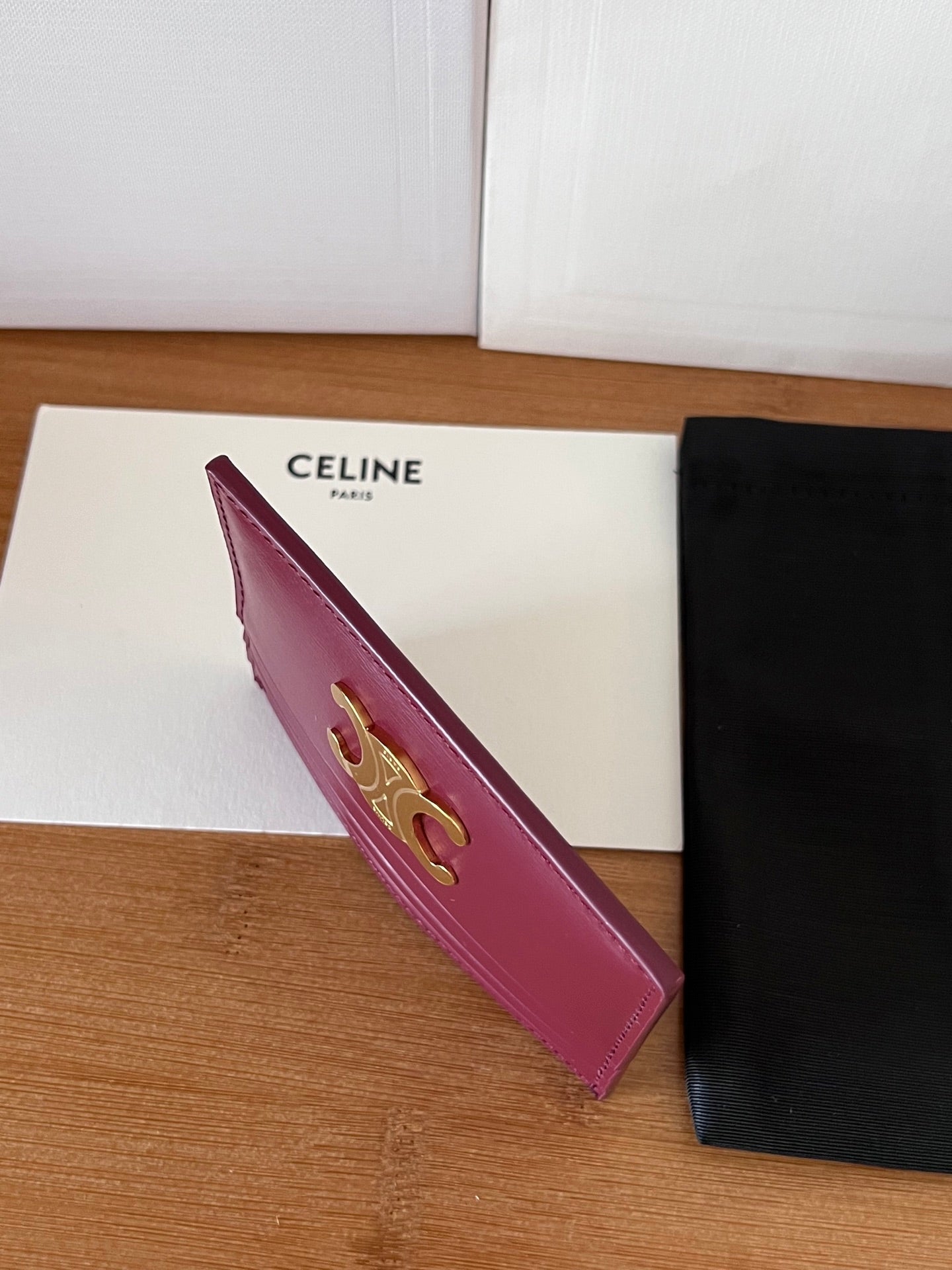 CELINE 25S CARD HOLDER WITH TRIOMPHE LOGO 11 IN OXBLOOD CALFSKIN
