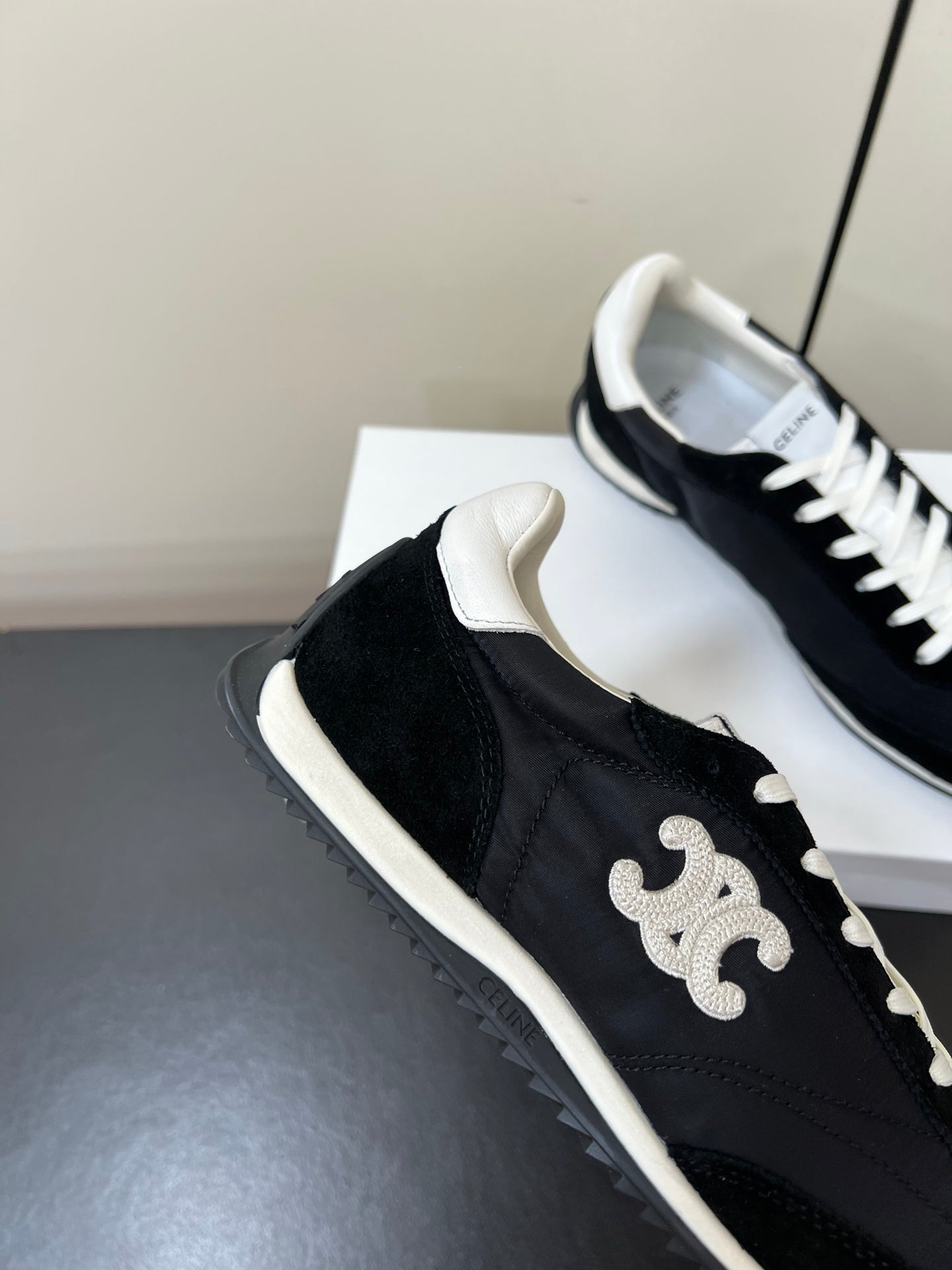 CELINE 25S RACER FORREST GUMP SNEAKERS IN BLACK MERCERIZED CALFSKIN