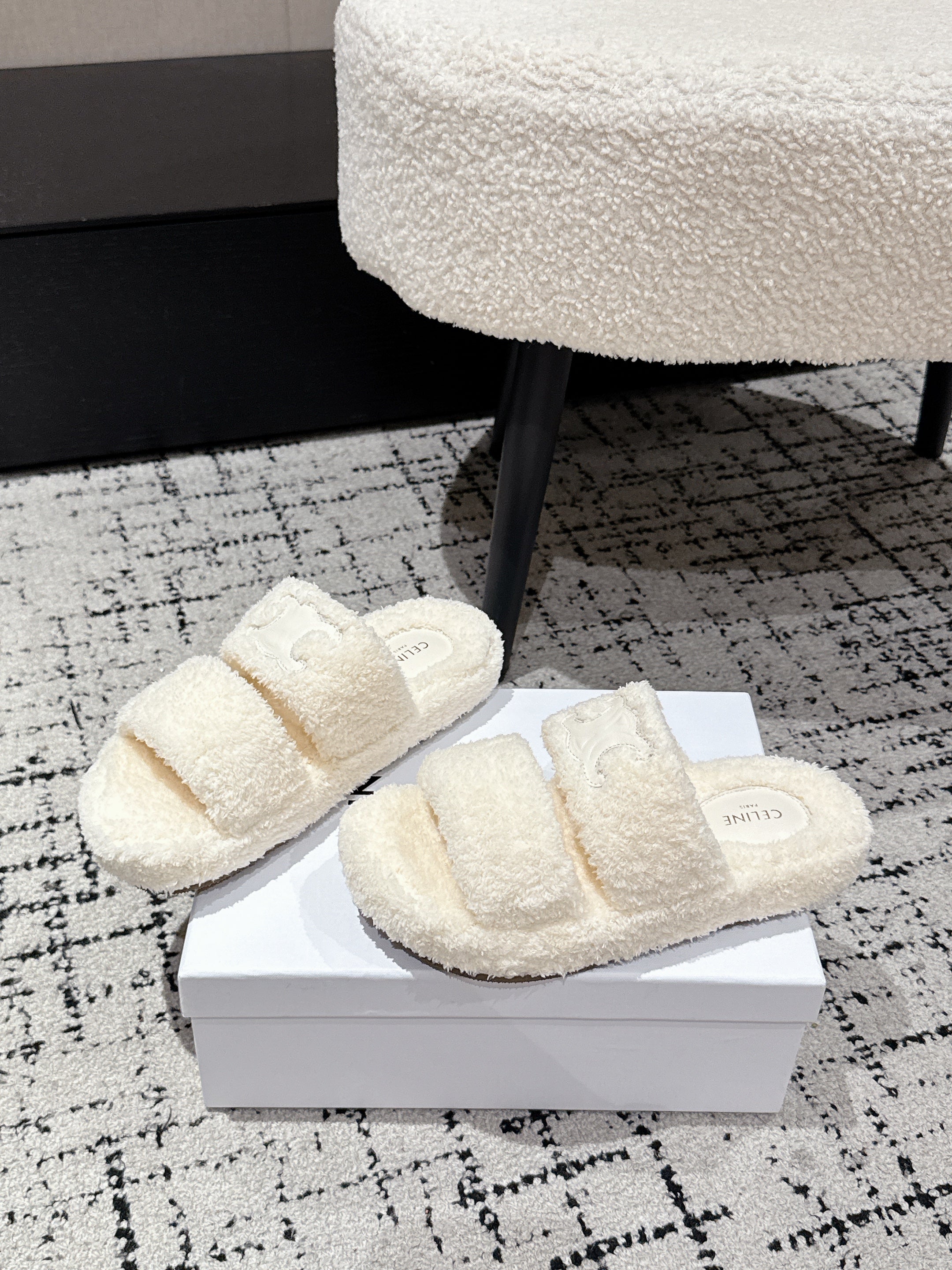 CELINE 25S SLIDES TRIOMPHE IN IVORY SPONGE FABRIC