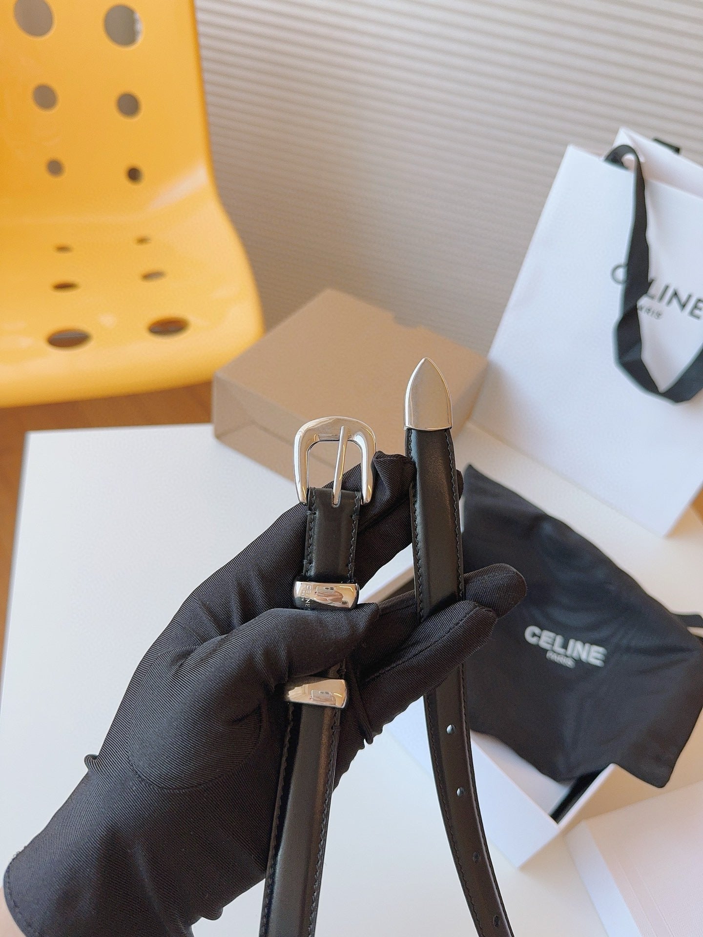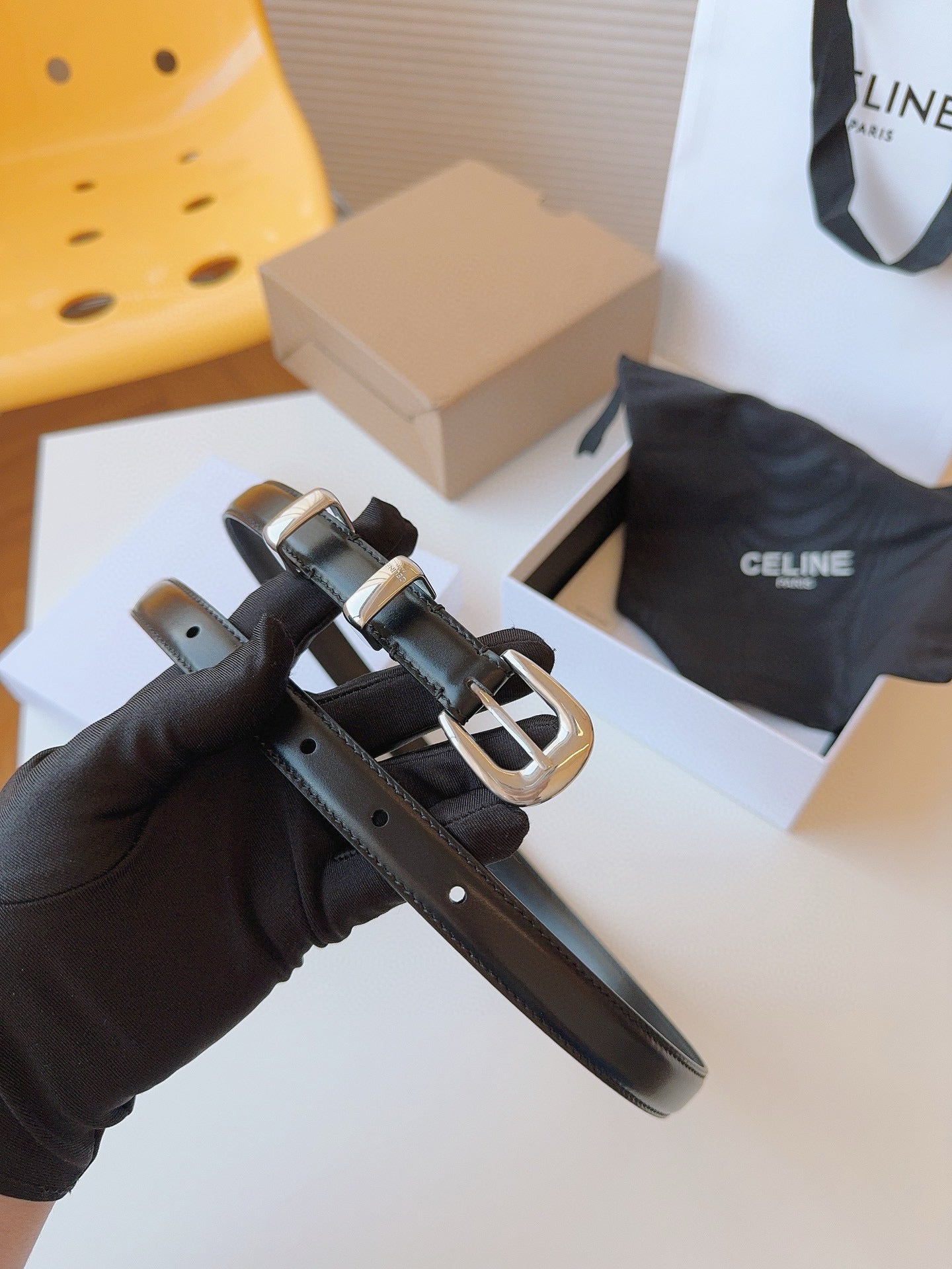 CELINE 25S SMALL 18MM WESTERN BELT IN BLACK CALFSKIN 566641