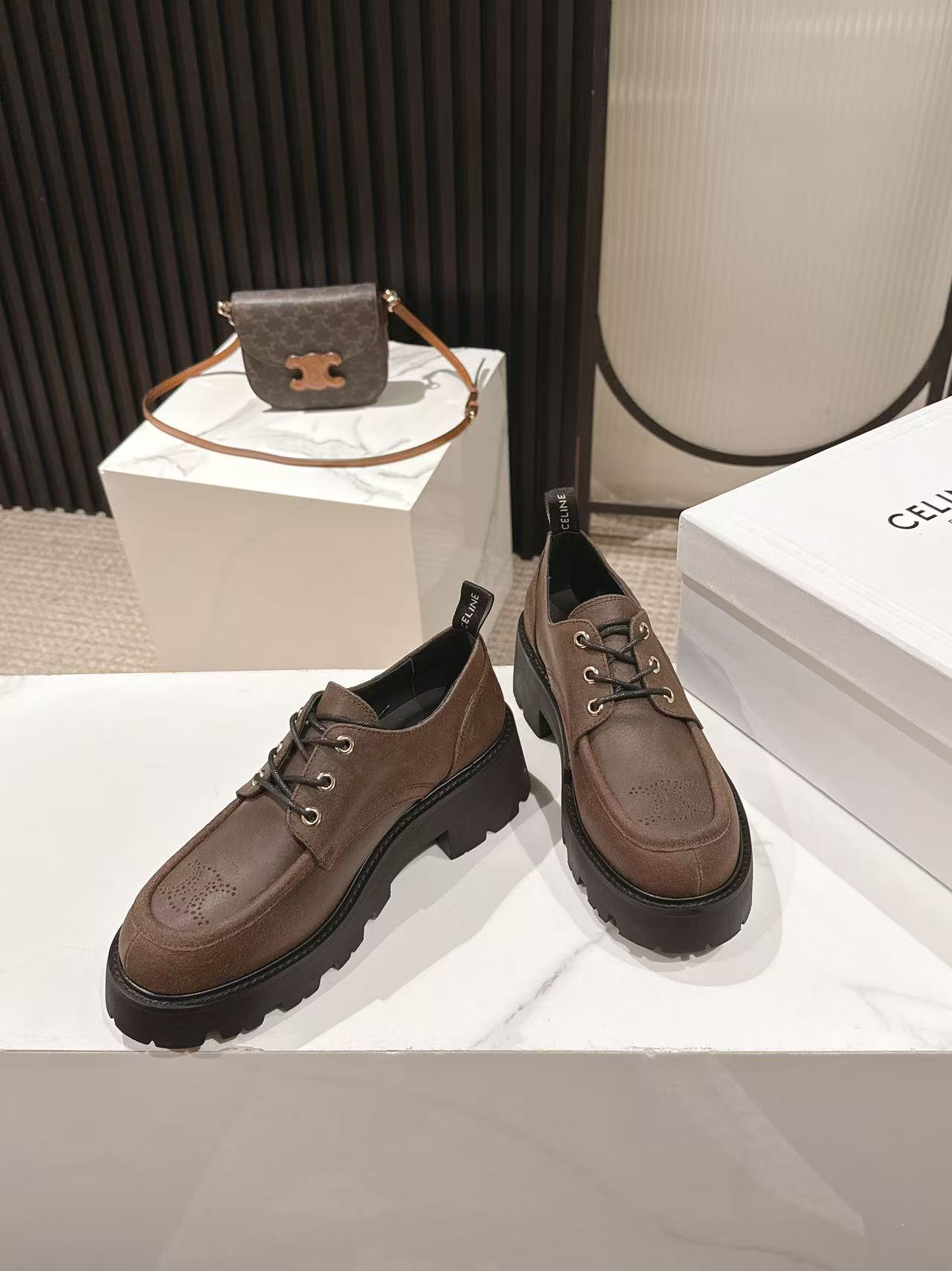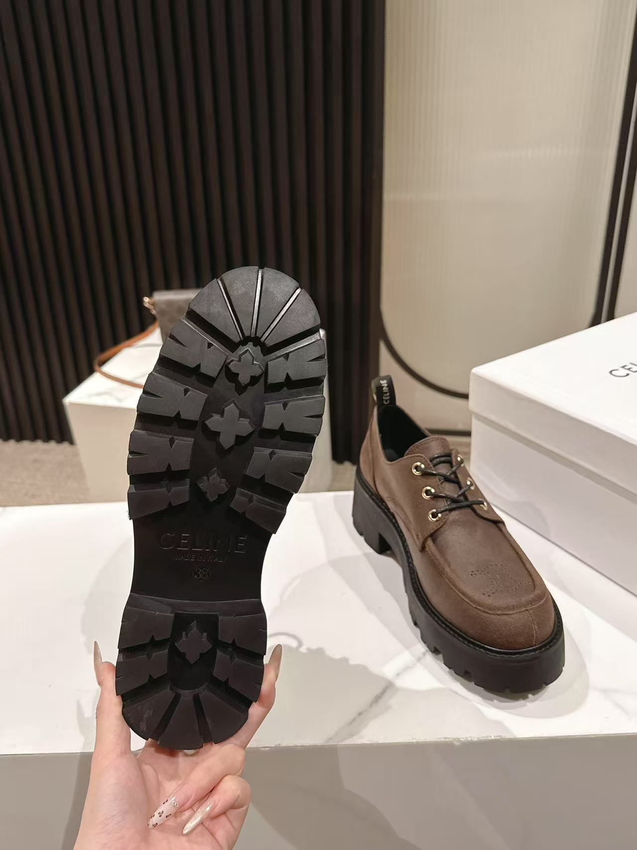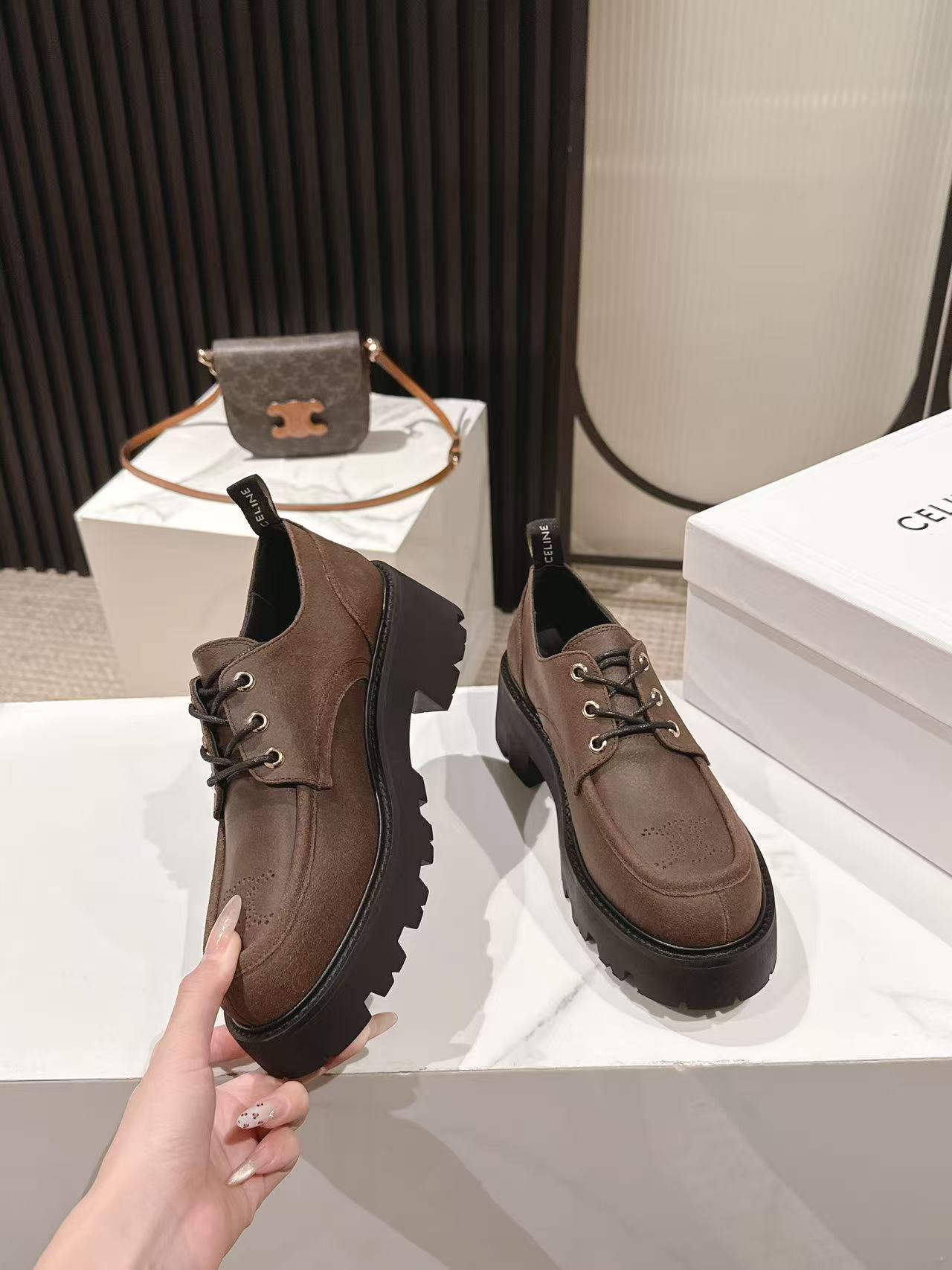 CELINE 25S THICK SOLED LOAFERS 50MM IN BROWN CALFSKIN