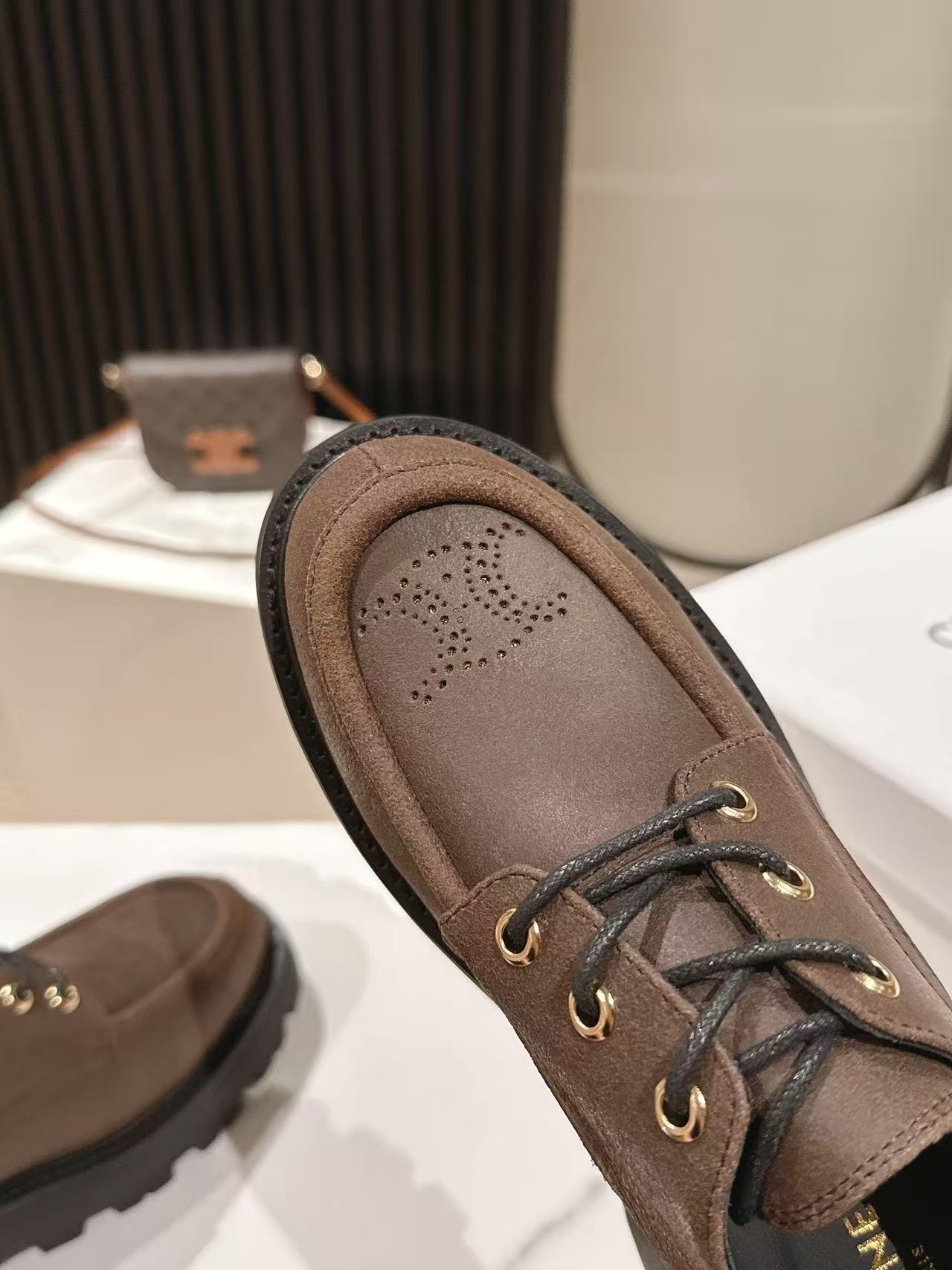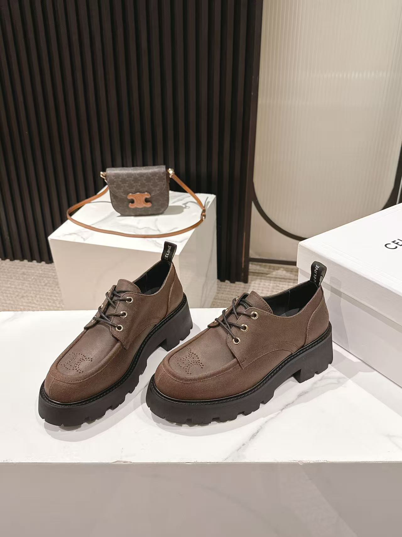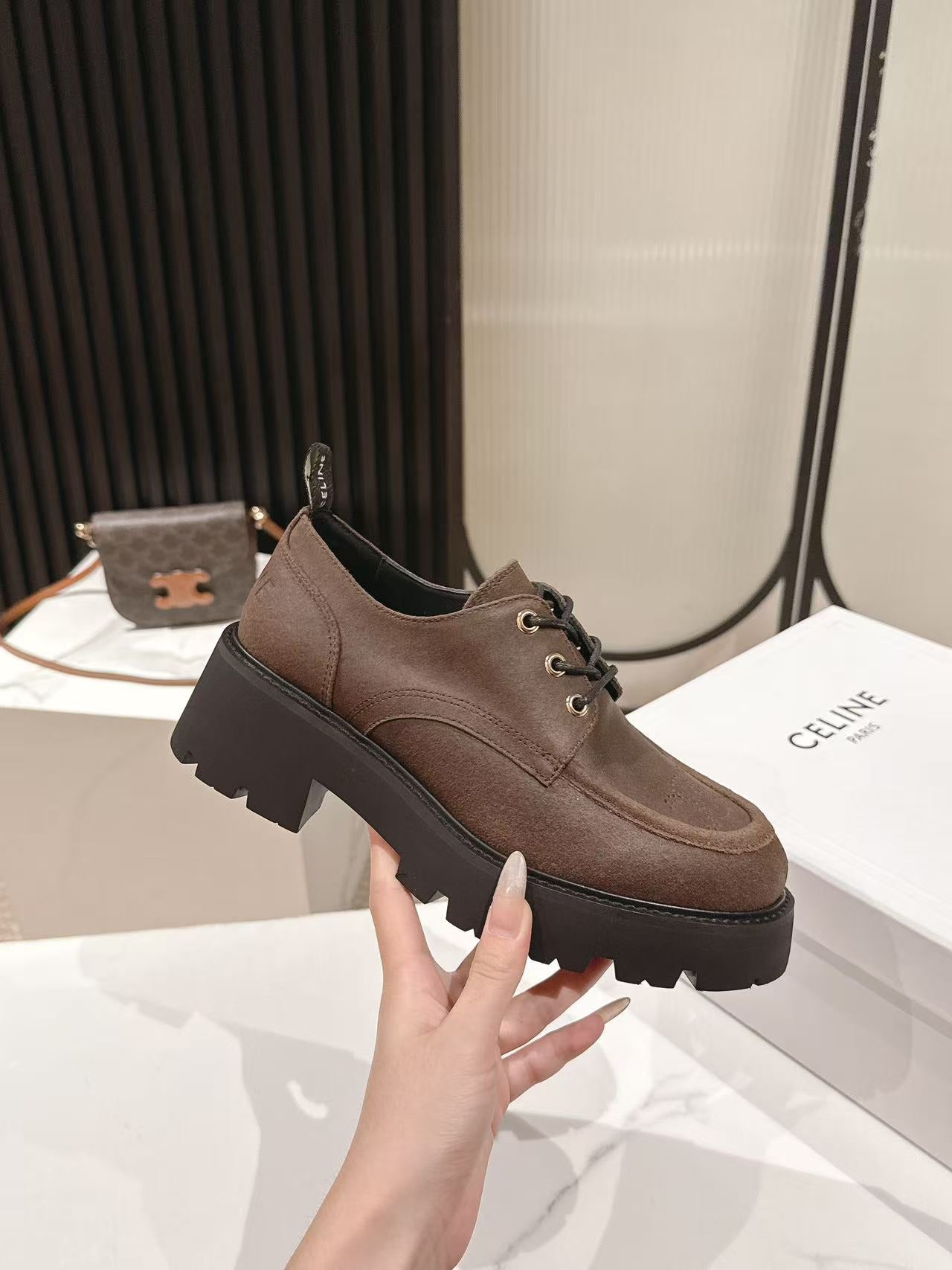 CELINE 25S THICK SOLED LOAFERS 50MM IN BROWN CALFSKIN