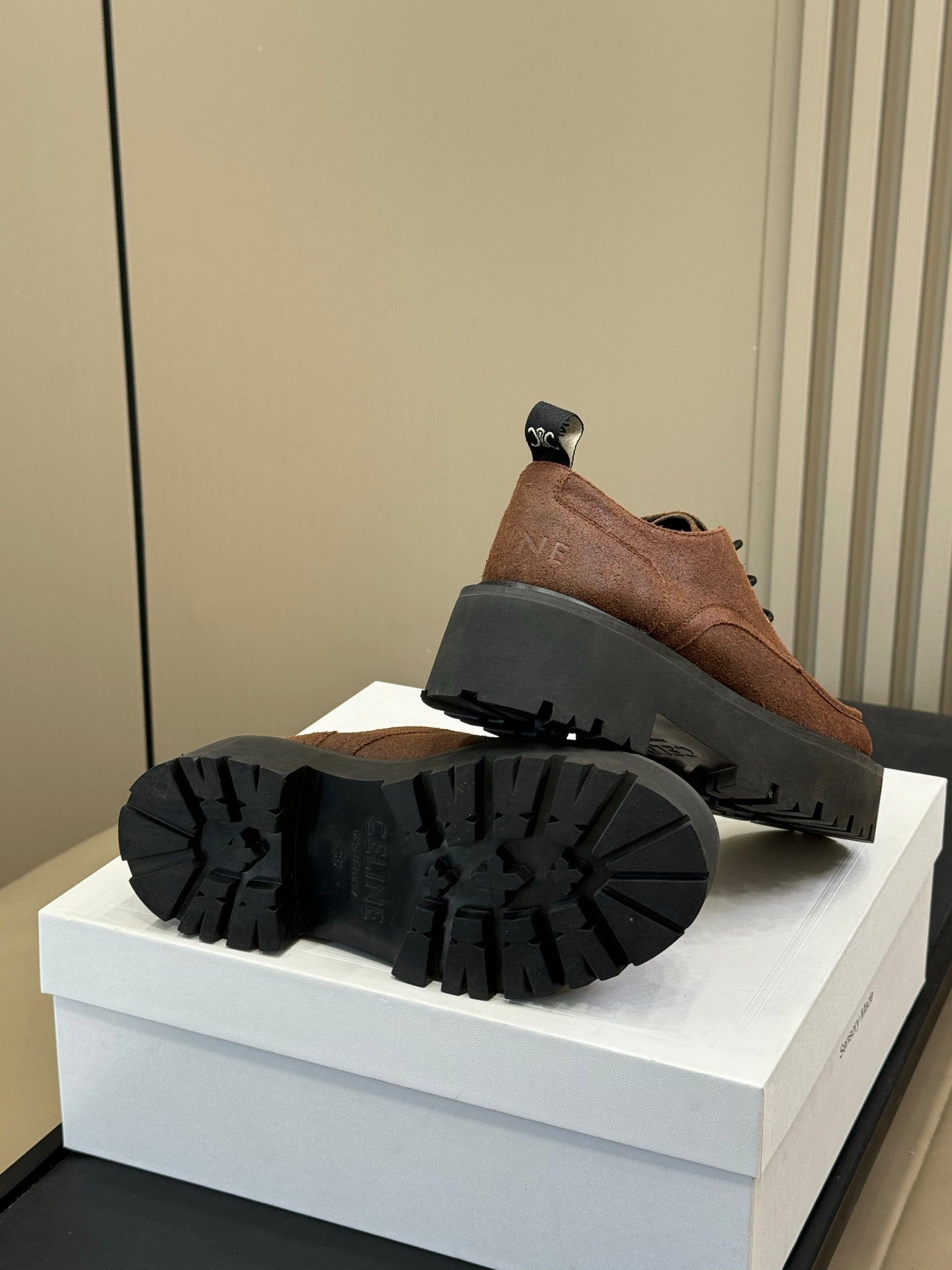 CELINE 25S THICK SOLED LOAFERS IN BROWN CALFSKIN SUEDE