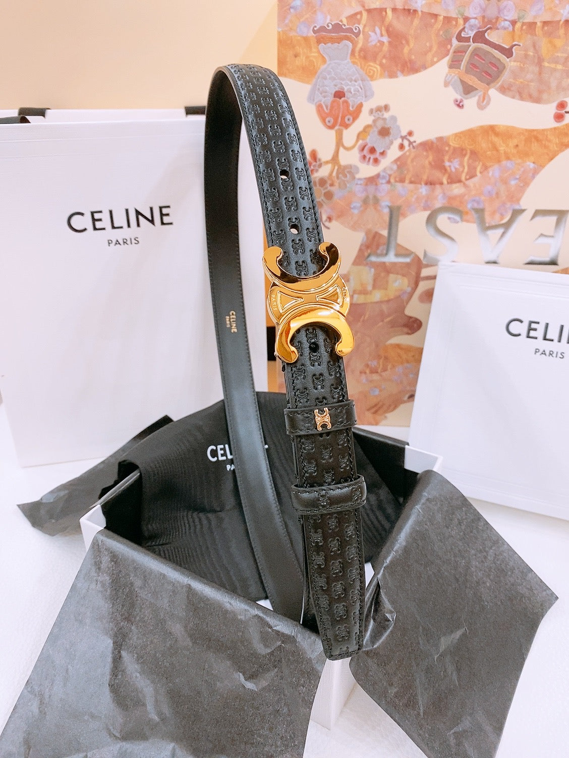 CELINE 25S TRIOMPHE BELT 25MM IN BLACK CALFSKIN DEBOSSED LOGO 570965