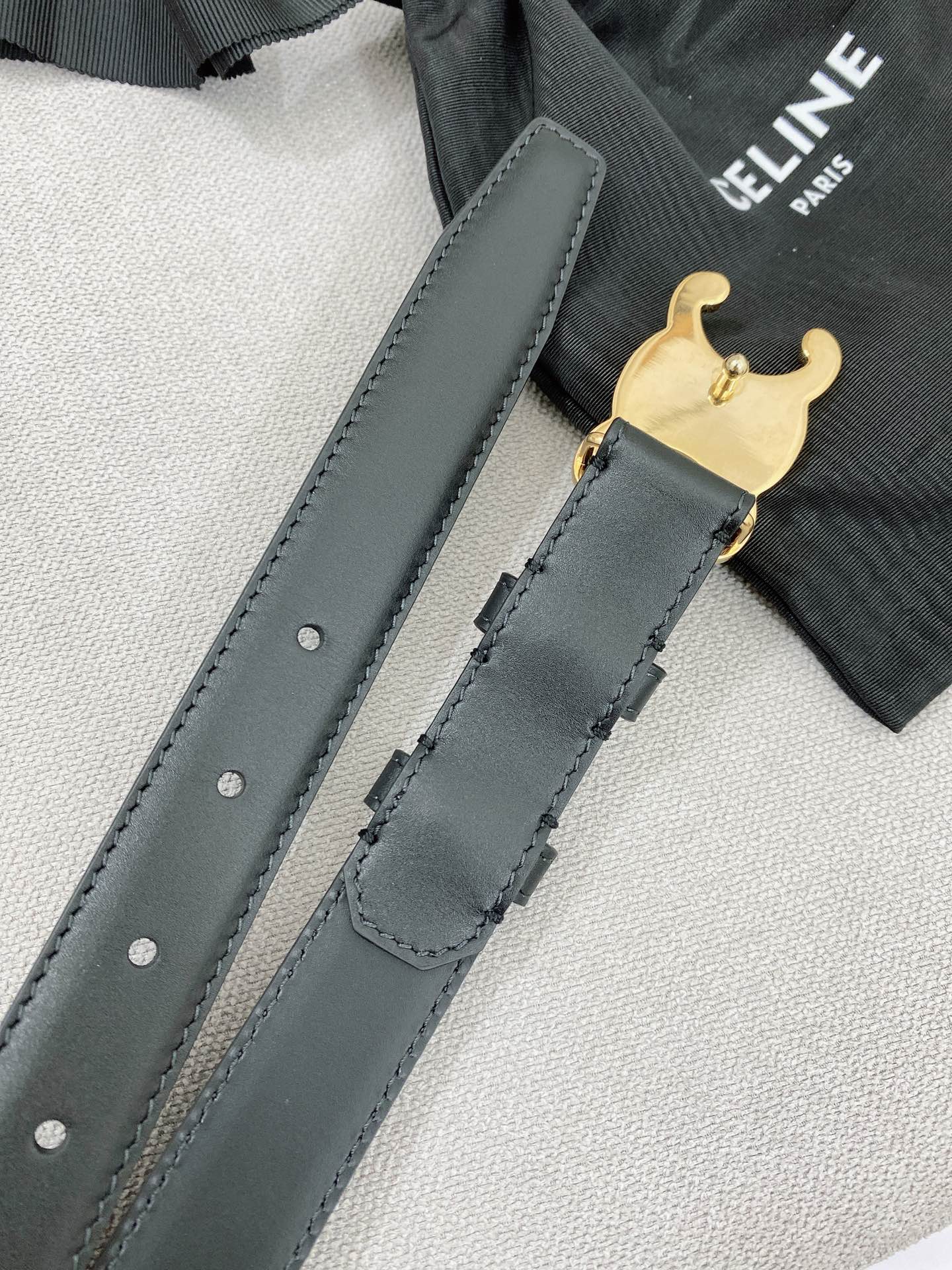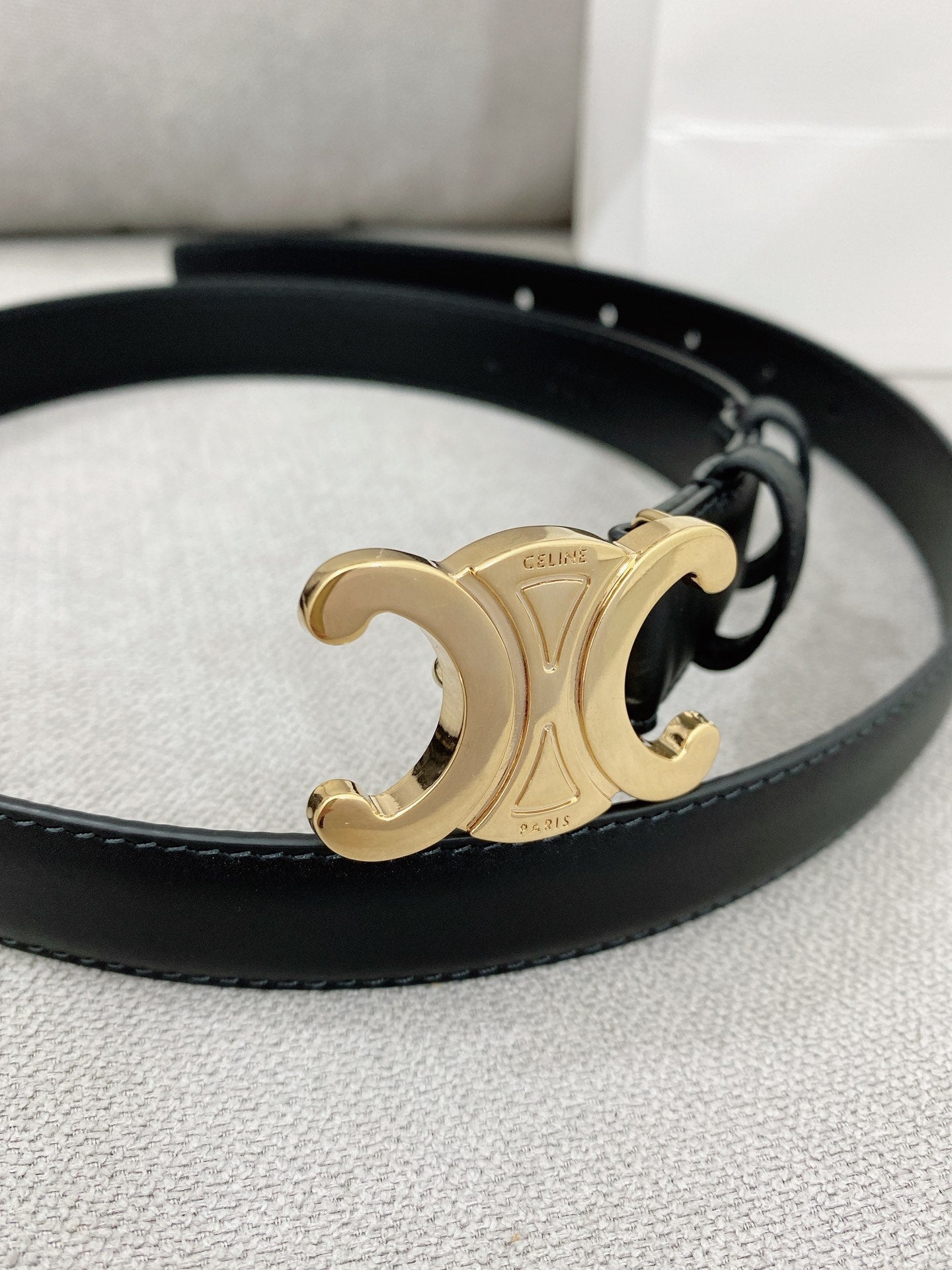 CELINE 25S TRIOMPHE BELT 25MM IN BLACK CALFSKIN GLOD HARDWARE 580679