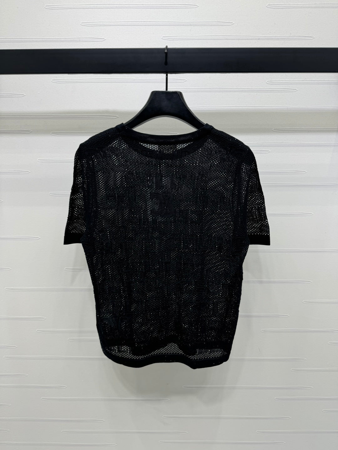 CELINE SHORT-SLEEVE CROCHET TOP BLACK 274808