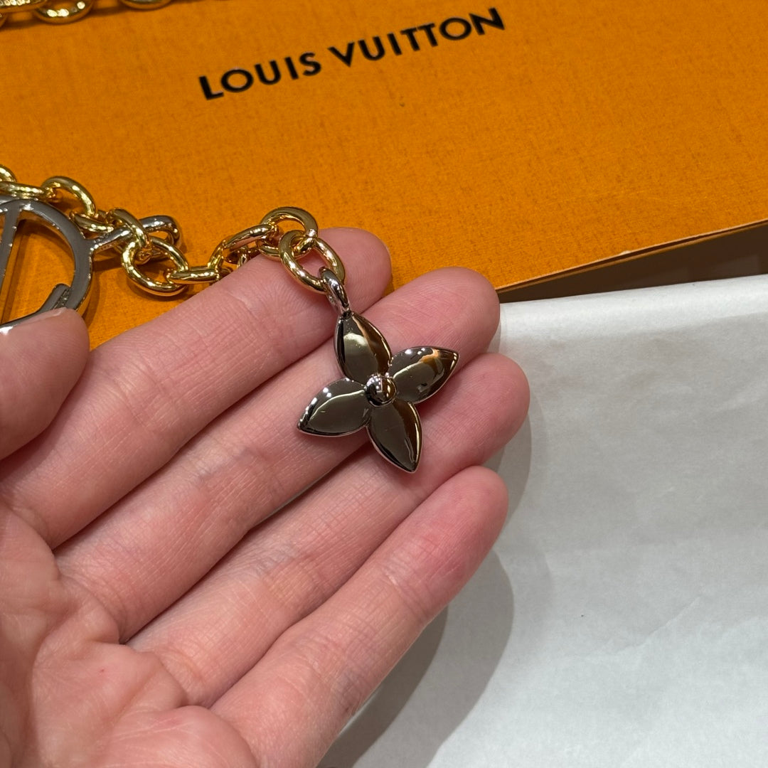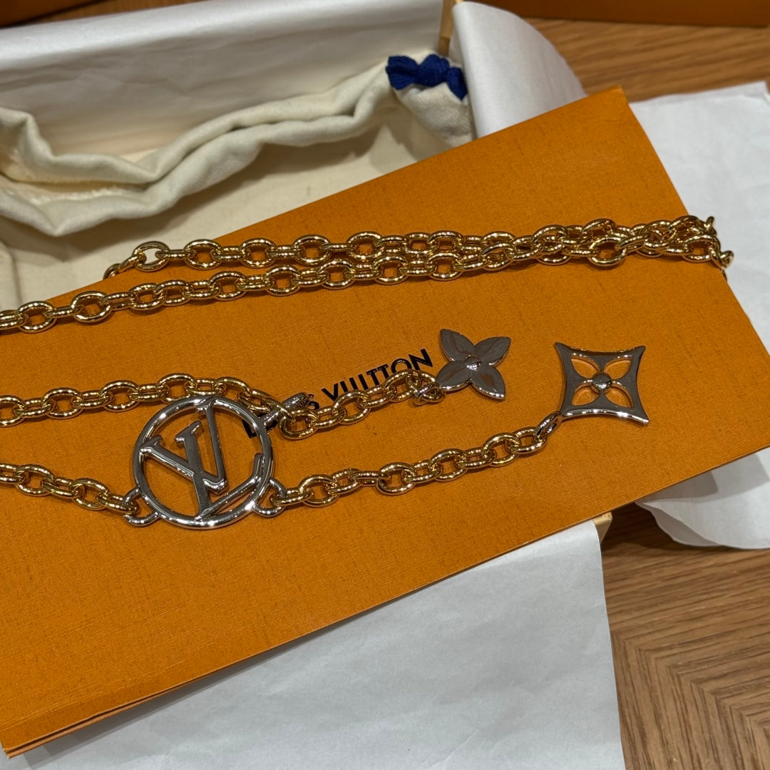 CHAIN BELT FOR WOMEN IN GOLD METAL WITH SILVER MONOGRAM LOGO CHARMS