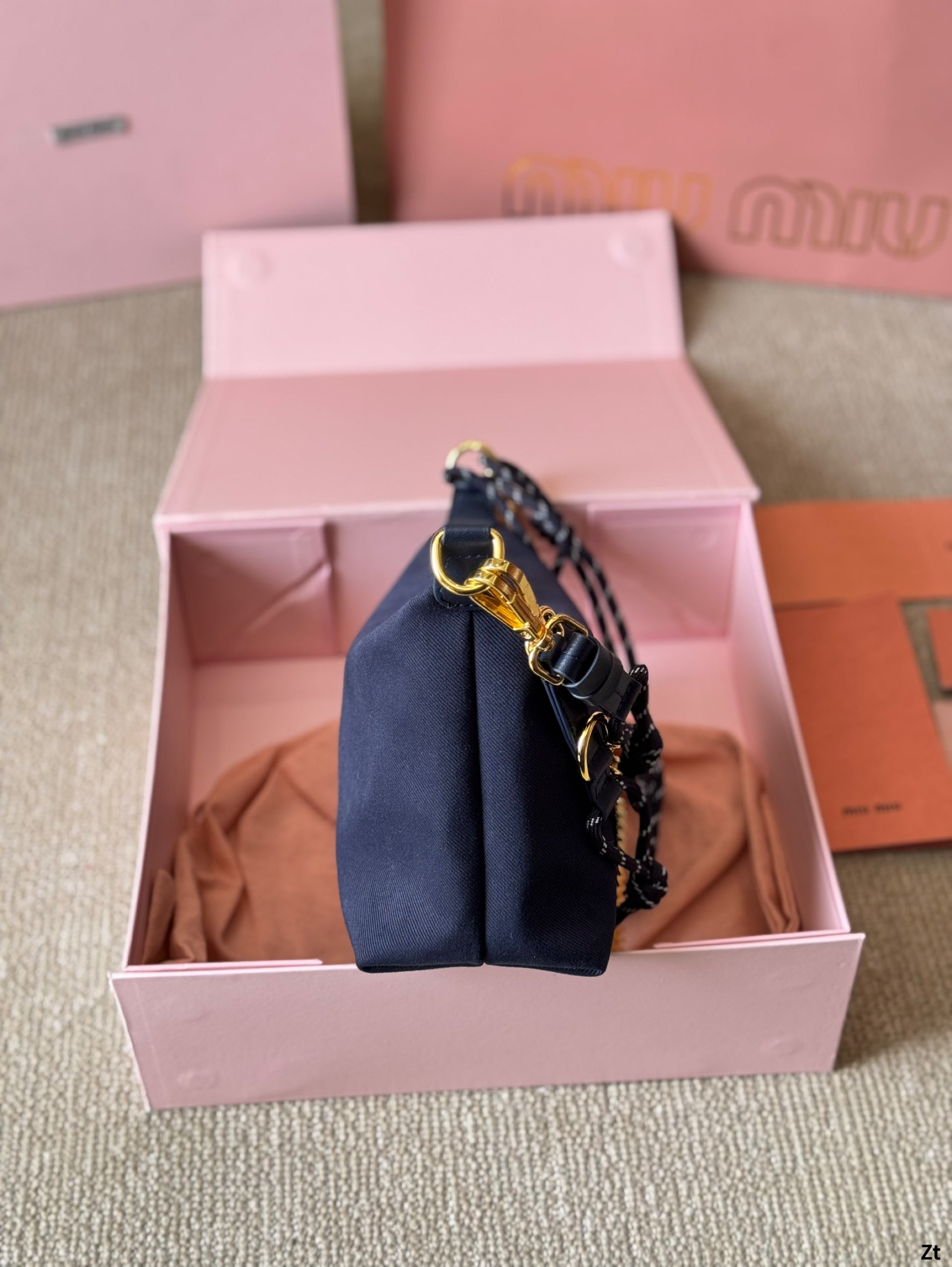 CHAIN SHOULDER BAG 19 IN NAVY BLUE FABRIC GOLD HARDWARE