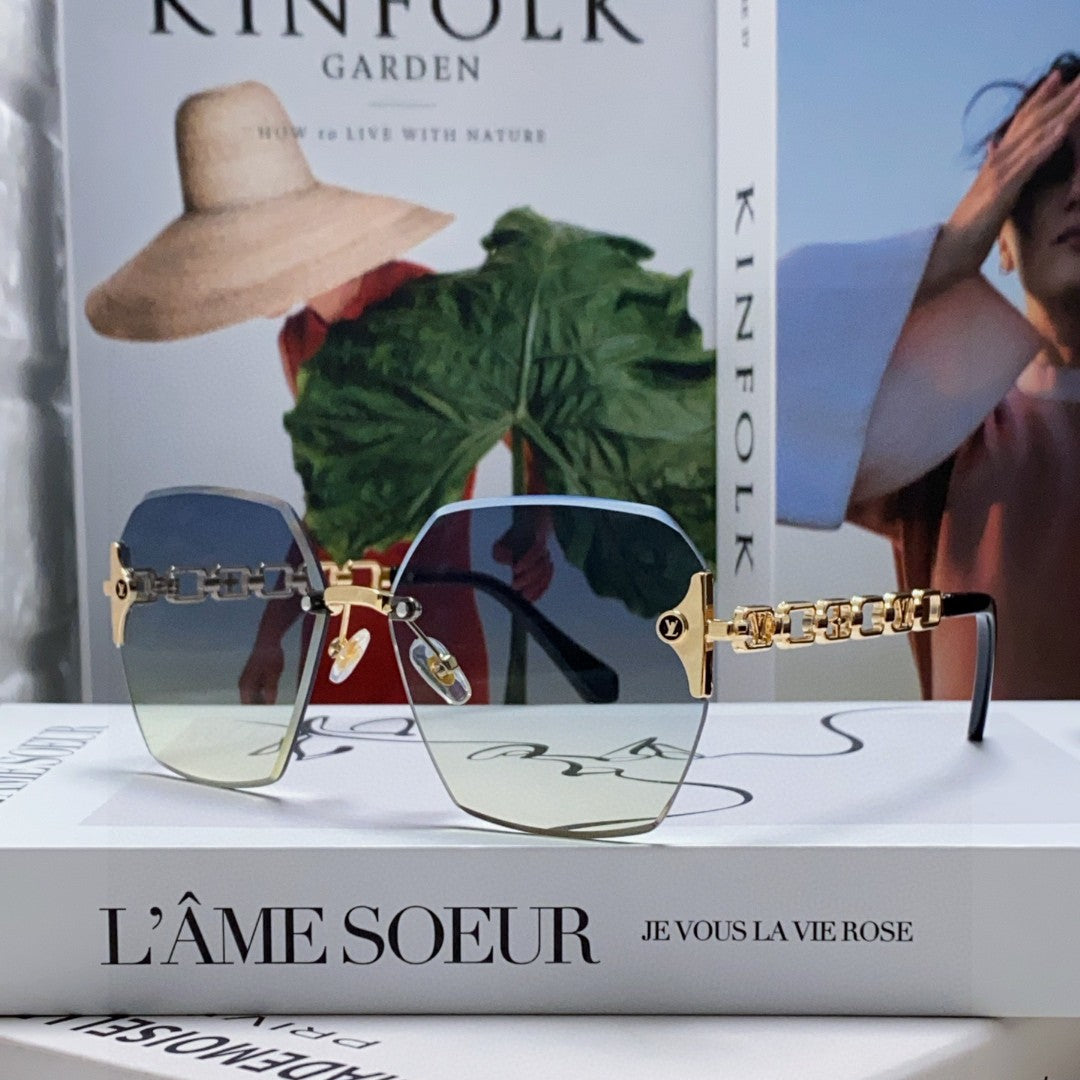 CHAIN SQUARE SUNGLASSES 570259 IN GOLD METAL GREY YELLOW SMOKE LENS