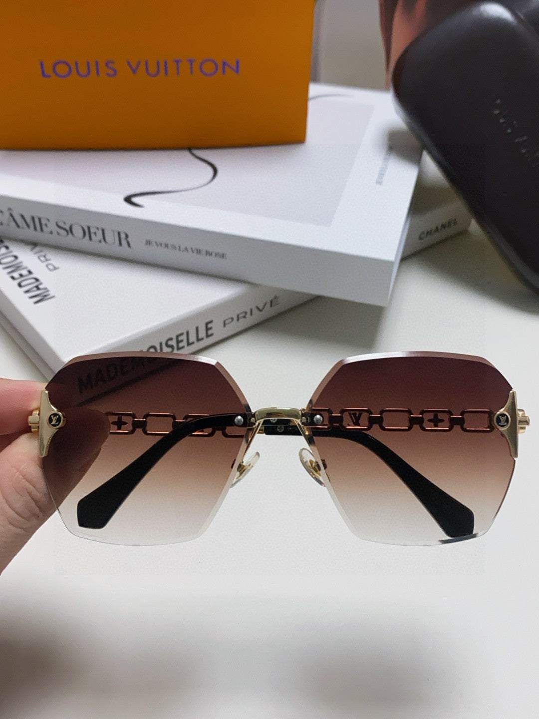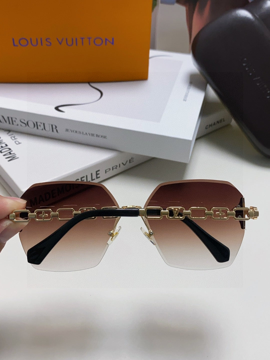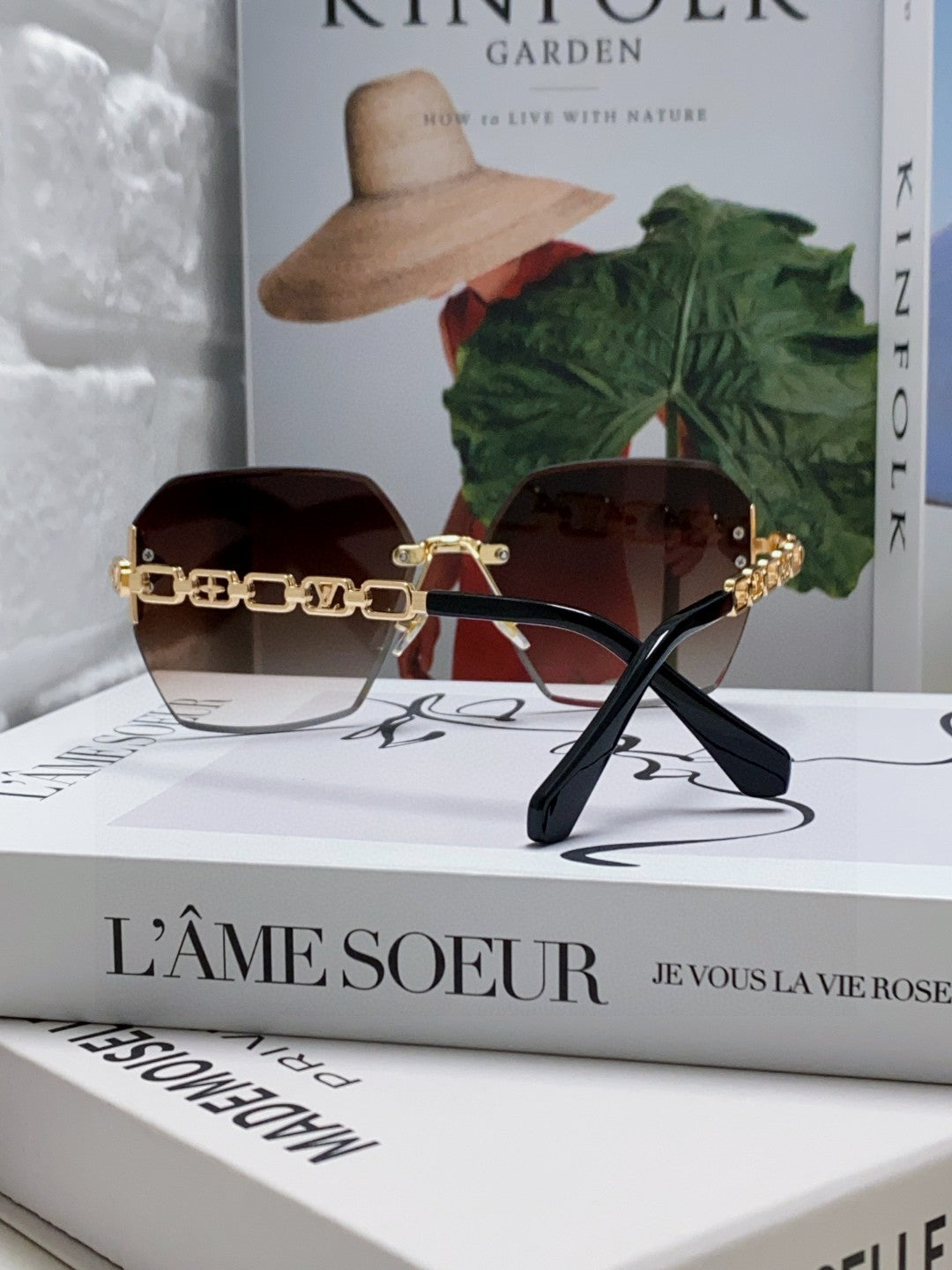CHAIN SQUARE SUNGLASSES 570260 IN GOLD METAL BROWN SMOKE LENS