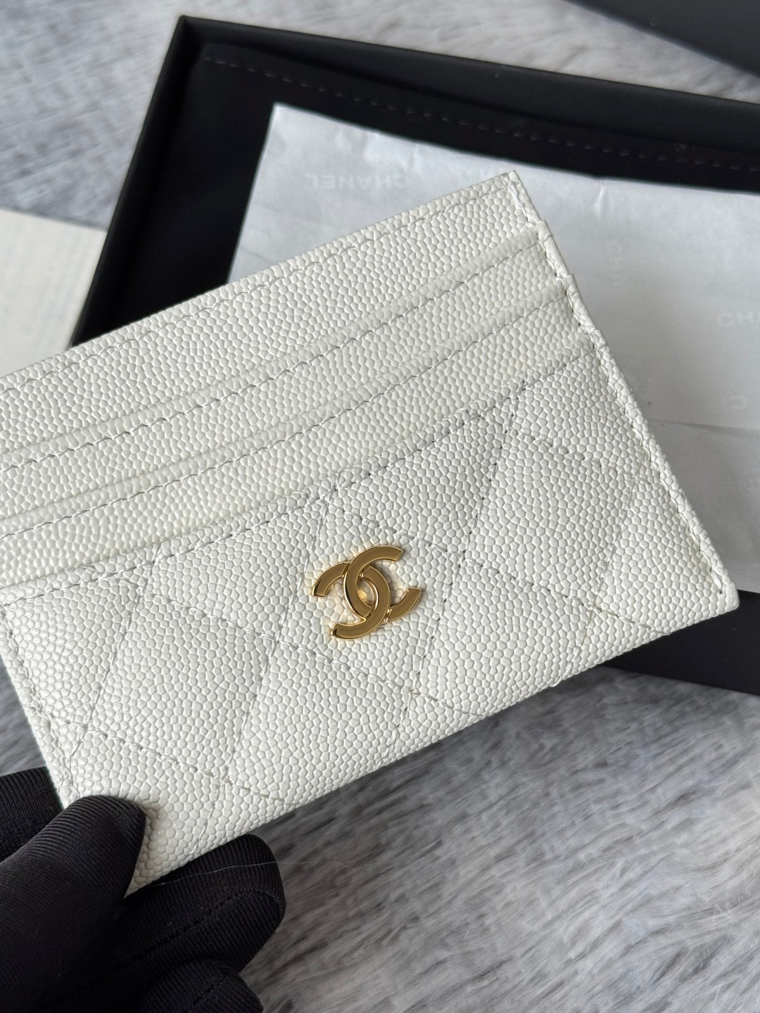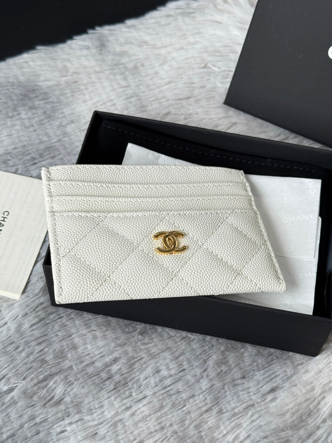 CHANEL 25S CARD HOLDER 11 IN IVORY CAVIAR GOLD HARDWARE