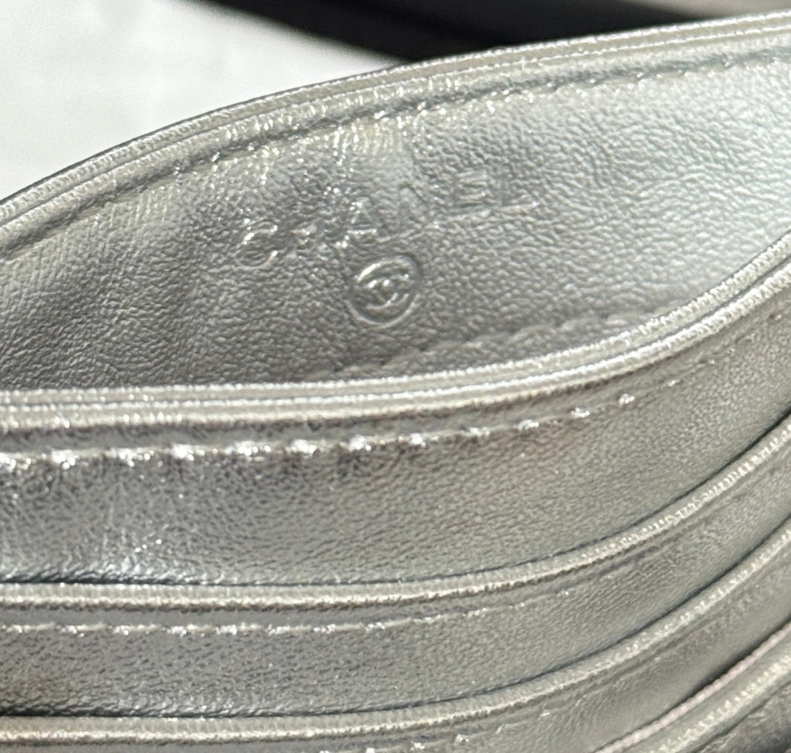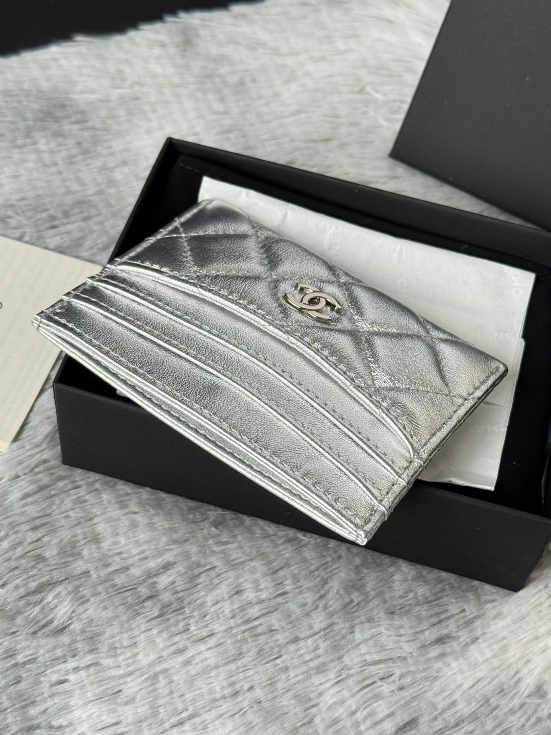 CHANEL 25S CARD HOLDER 11 IN SILVER LAMBSKIN GOLD HARDWARE
