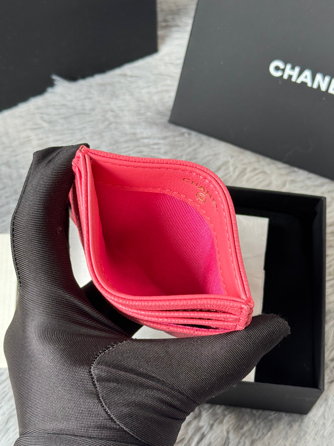 CHANEL 25S CARD HOLDER 11 IN WATERMELON CAVIAR GOLD HARDWARE