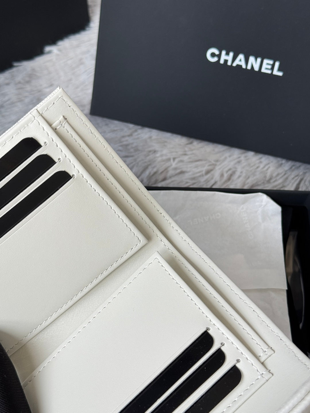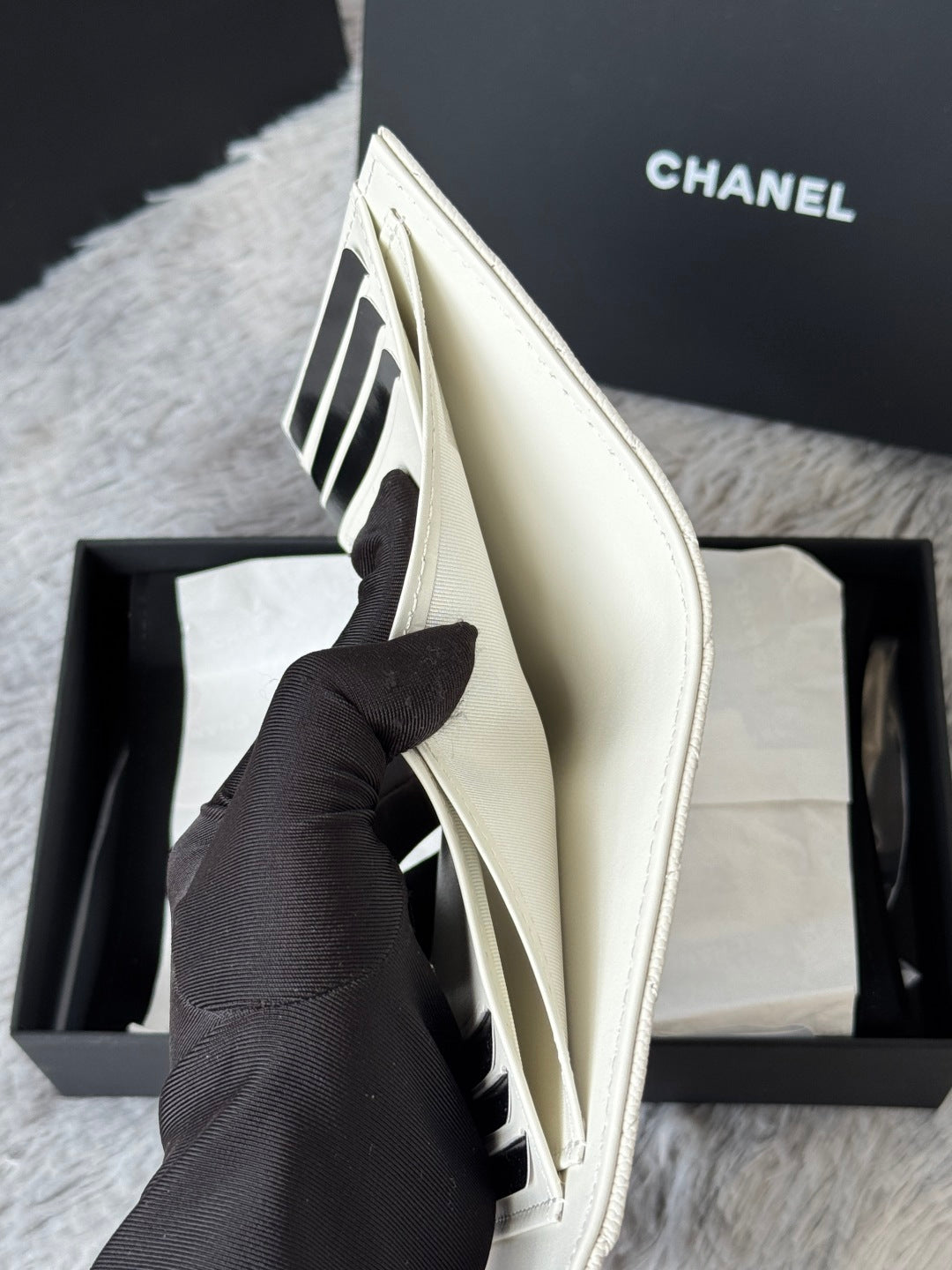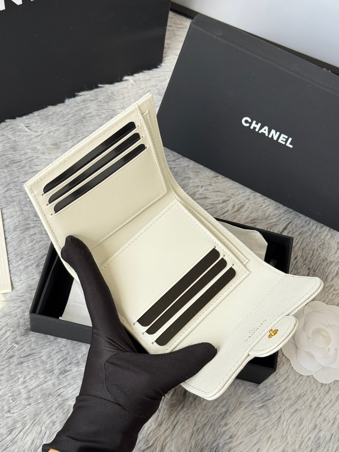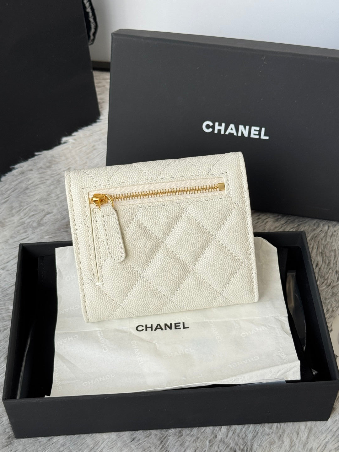 CHANEL 25S CF SMALL TRI FOLD WALLET 11 IN IVORY CAVIAR GOLD HARDWARE