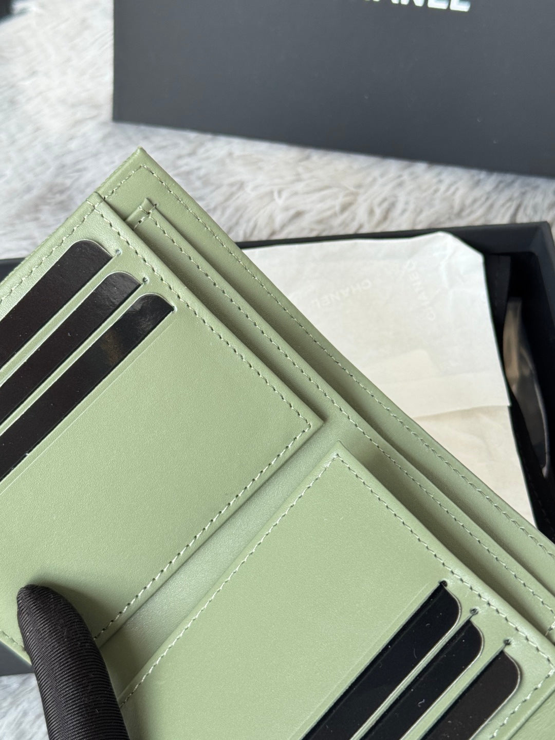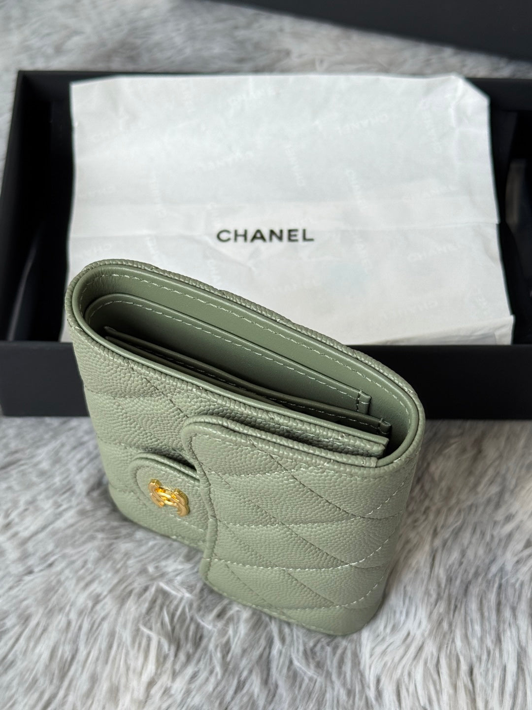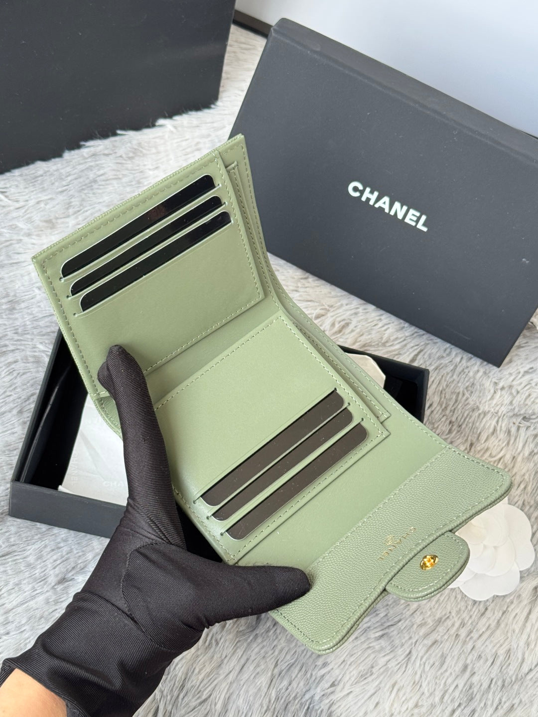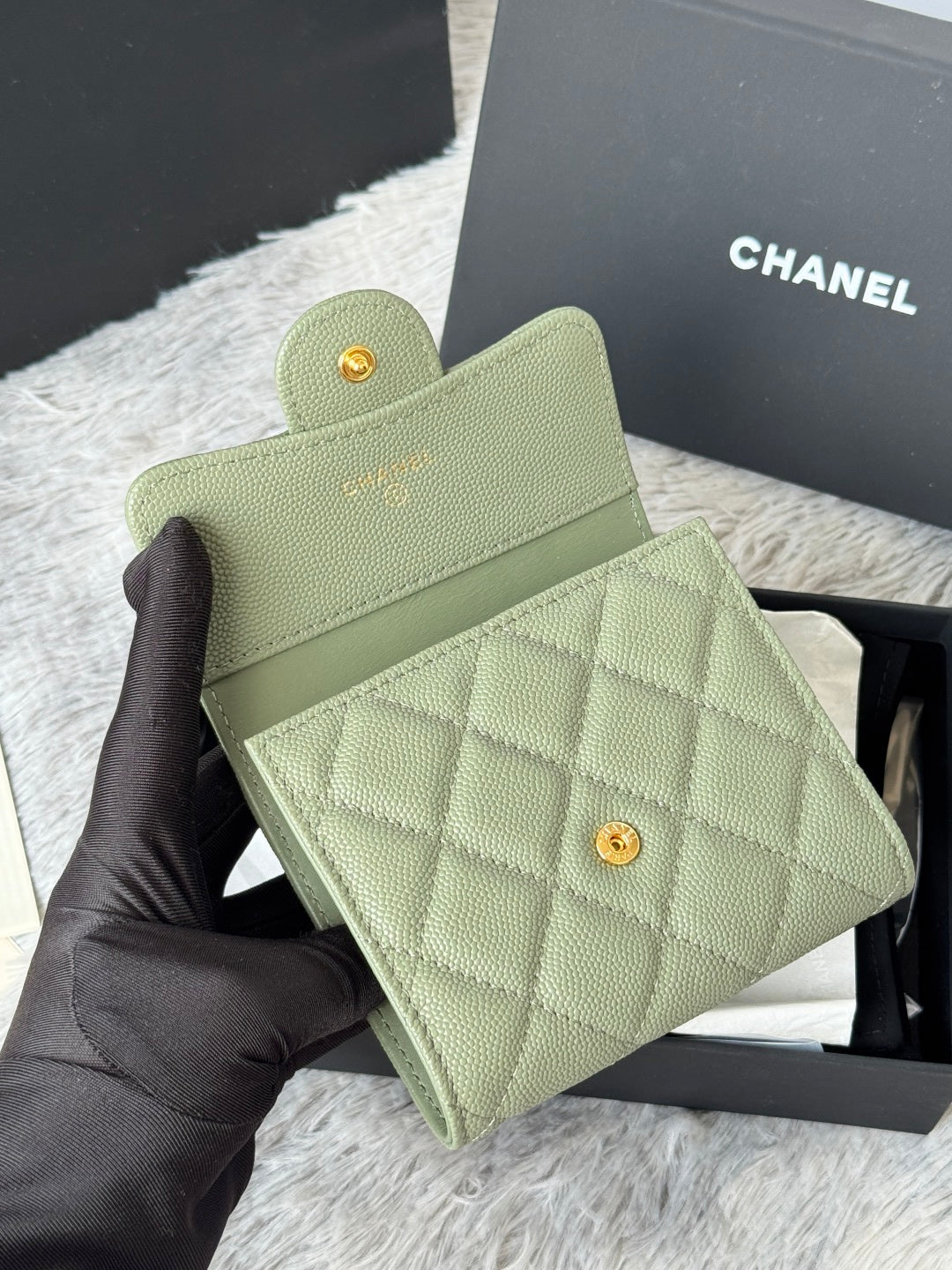 CHANEL 25S CF SMALL TRI FOLD WALLET 11 IN MOSS GREEN CAVIAR GOLD HARDWARE