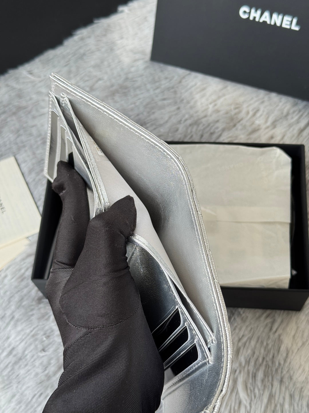 CHANEL 25S CF SMALL TRI FOLD WALLET 11 IN SILVER CAVIAR GOLD HARDWARE