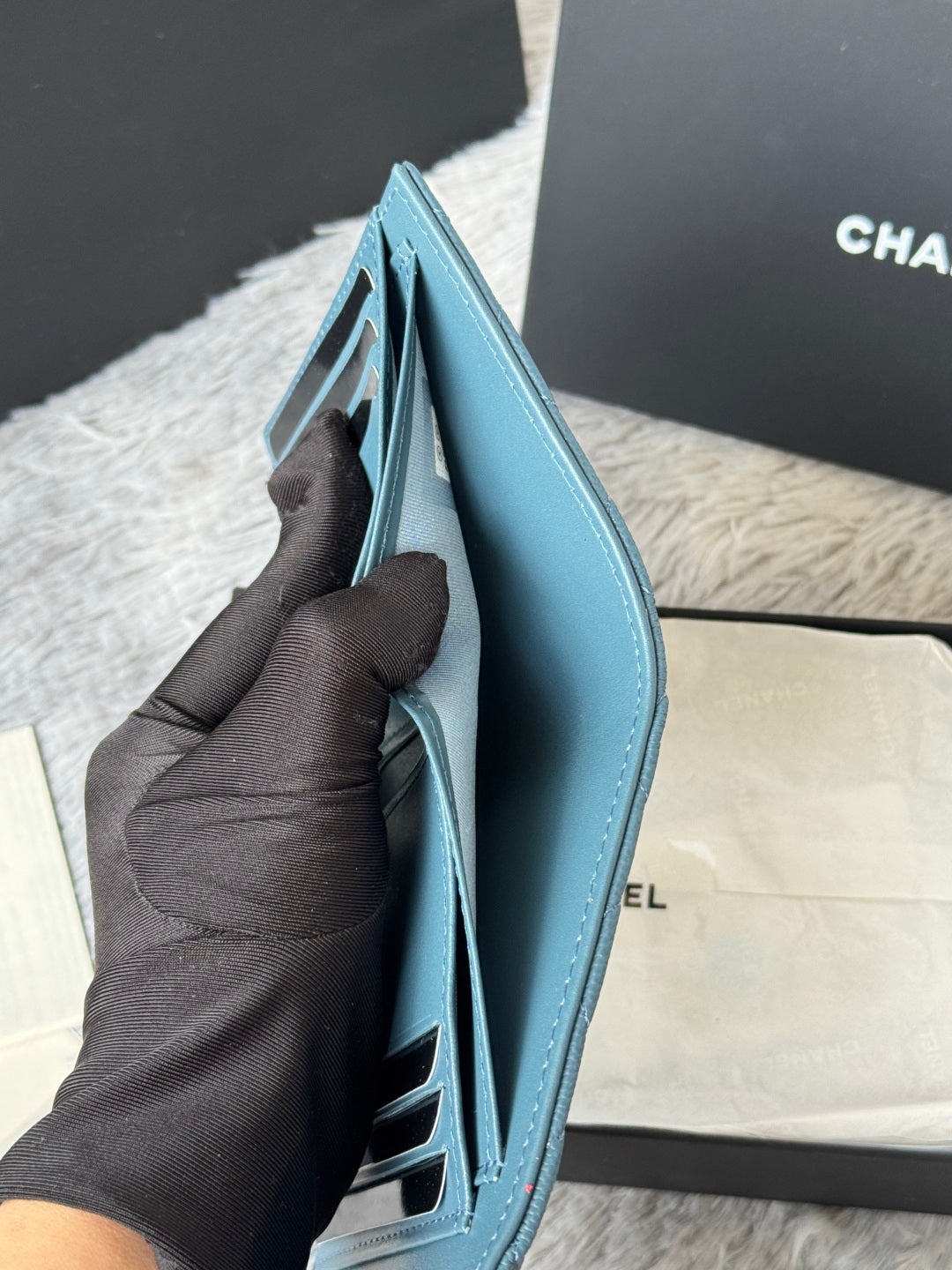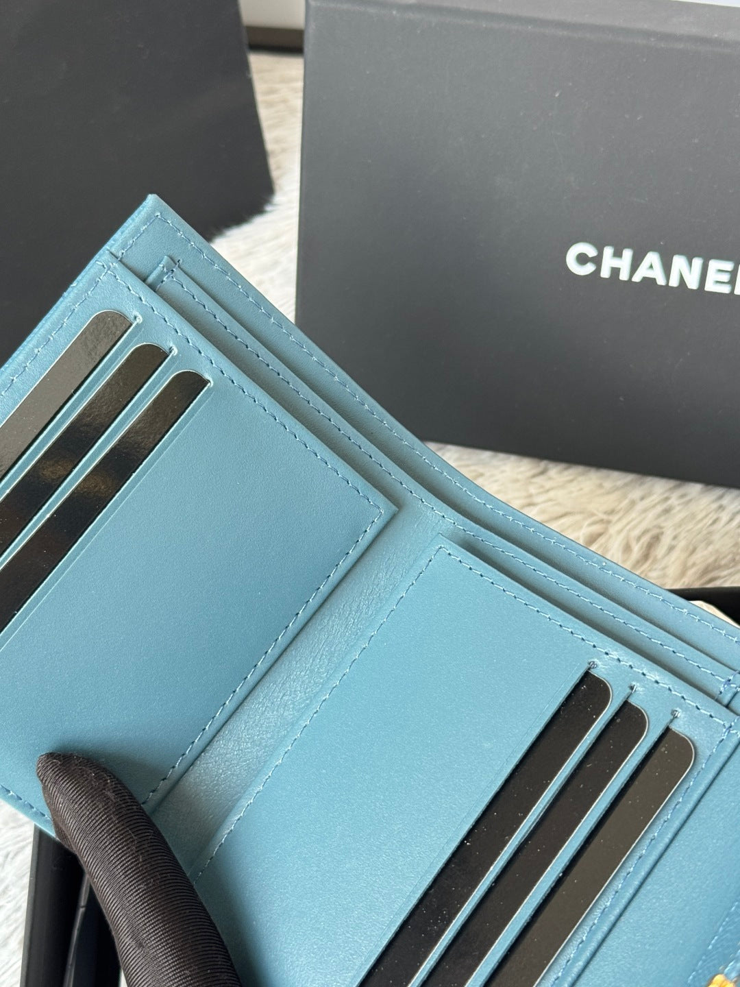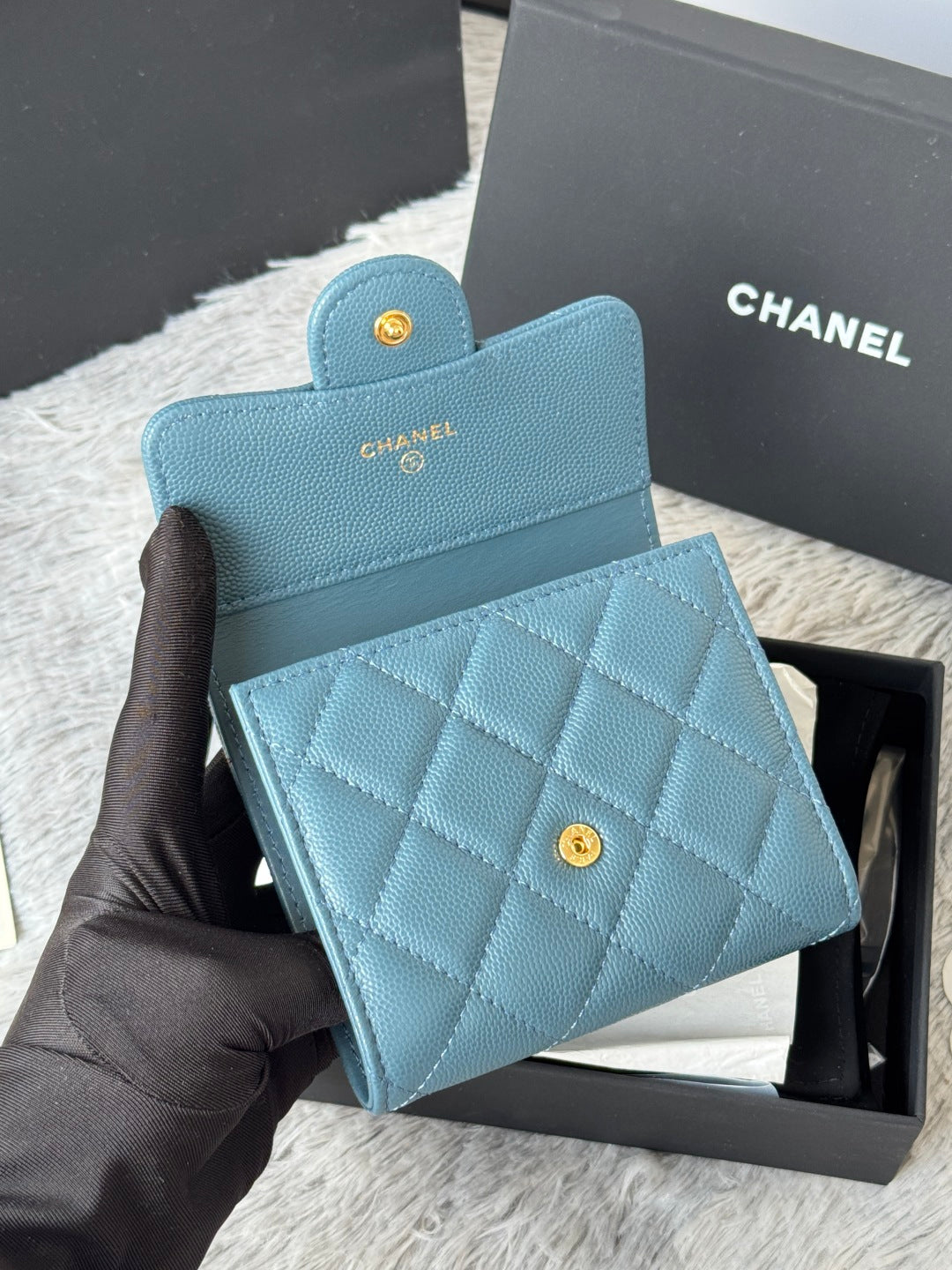 CHANEL 25S CF SMALL TRI FOLD WALLET 11 IN SLATE BLUE CAVIAR GOLD HARDWARE