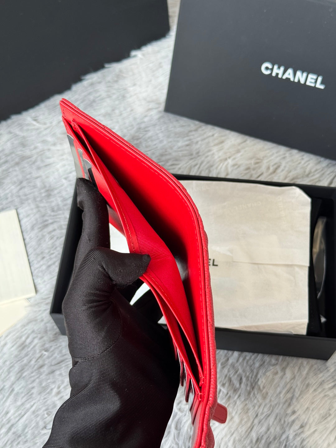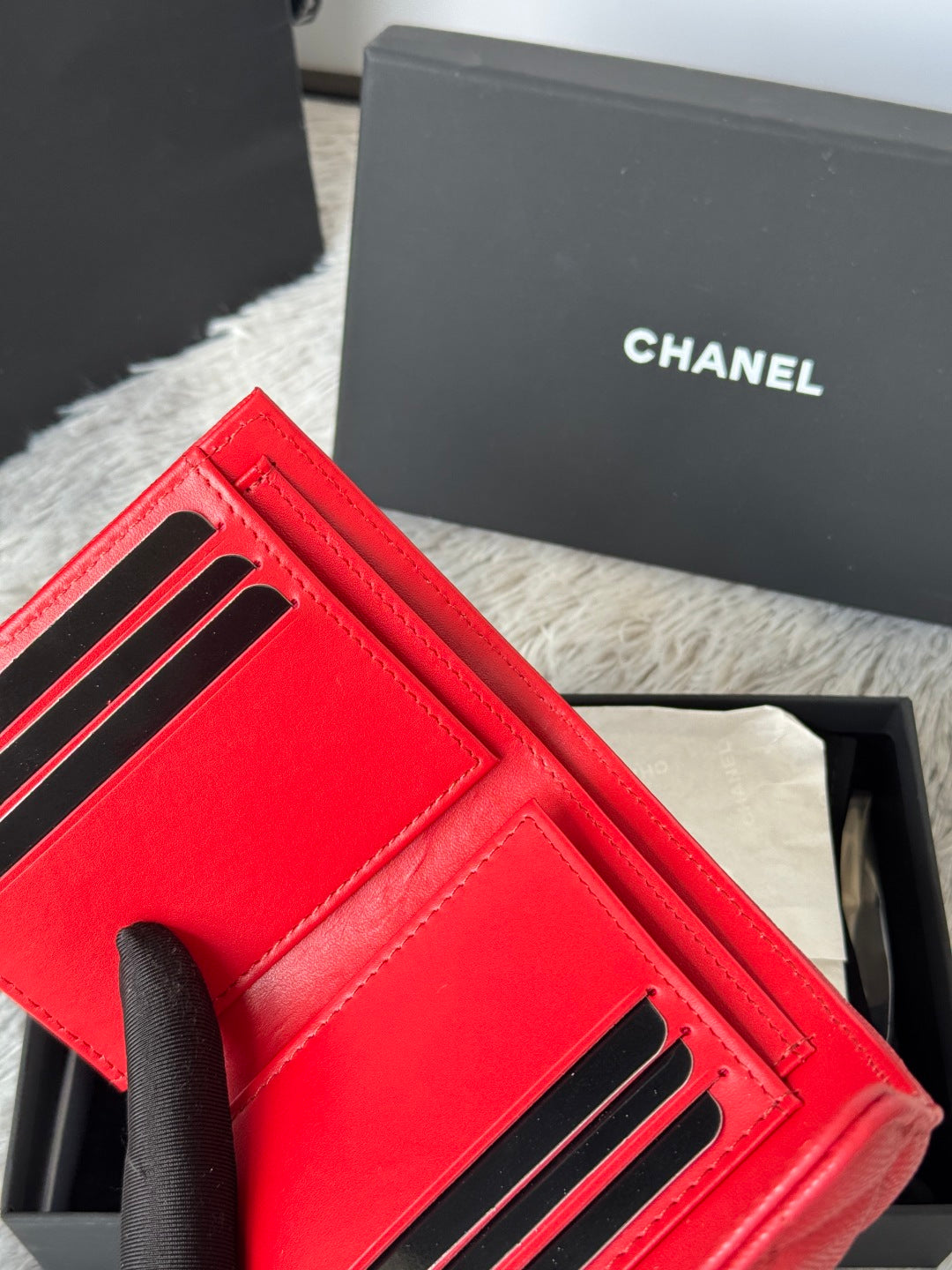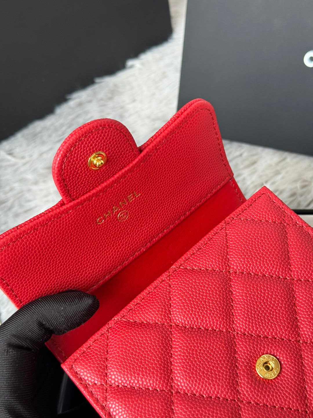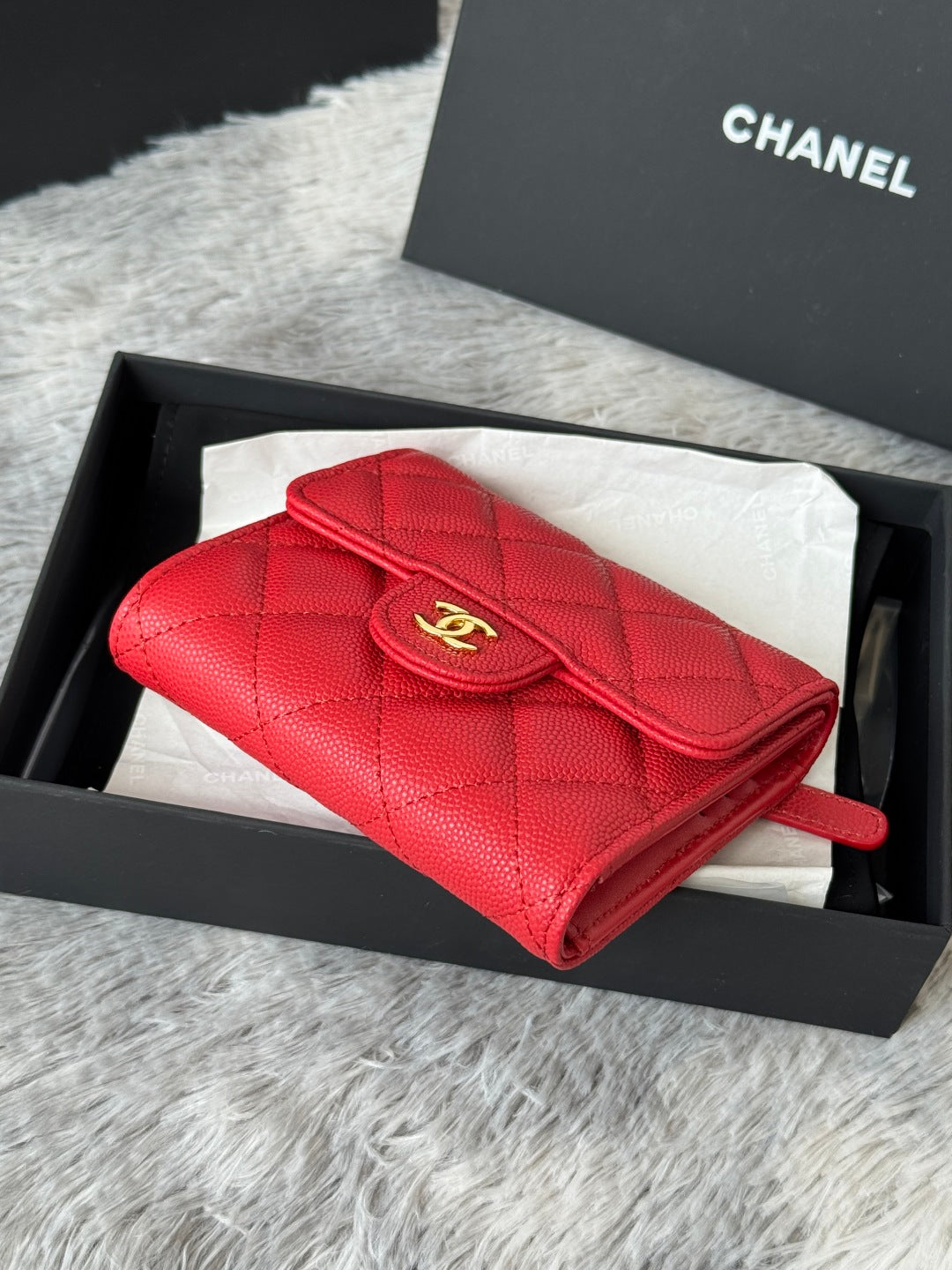CHANEL 25S CF SMALL TRI FOLD WALLET 11 IN VIVID RED CAVIAR GOLD HARDWARE