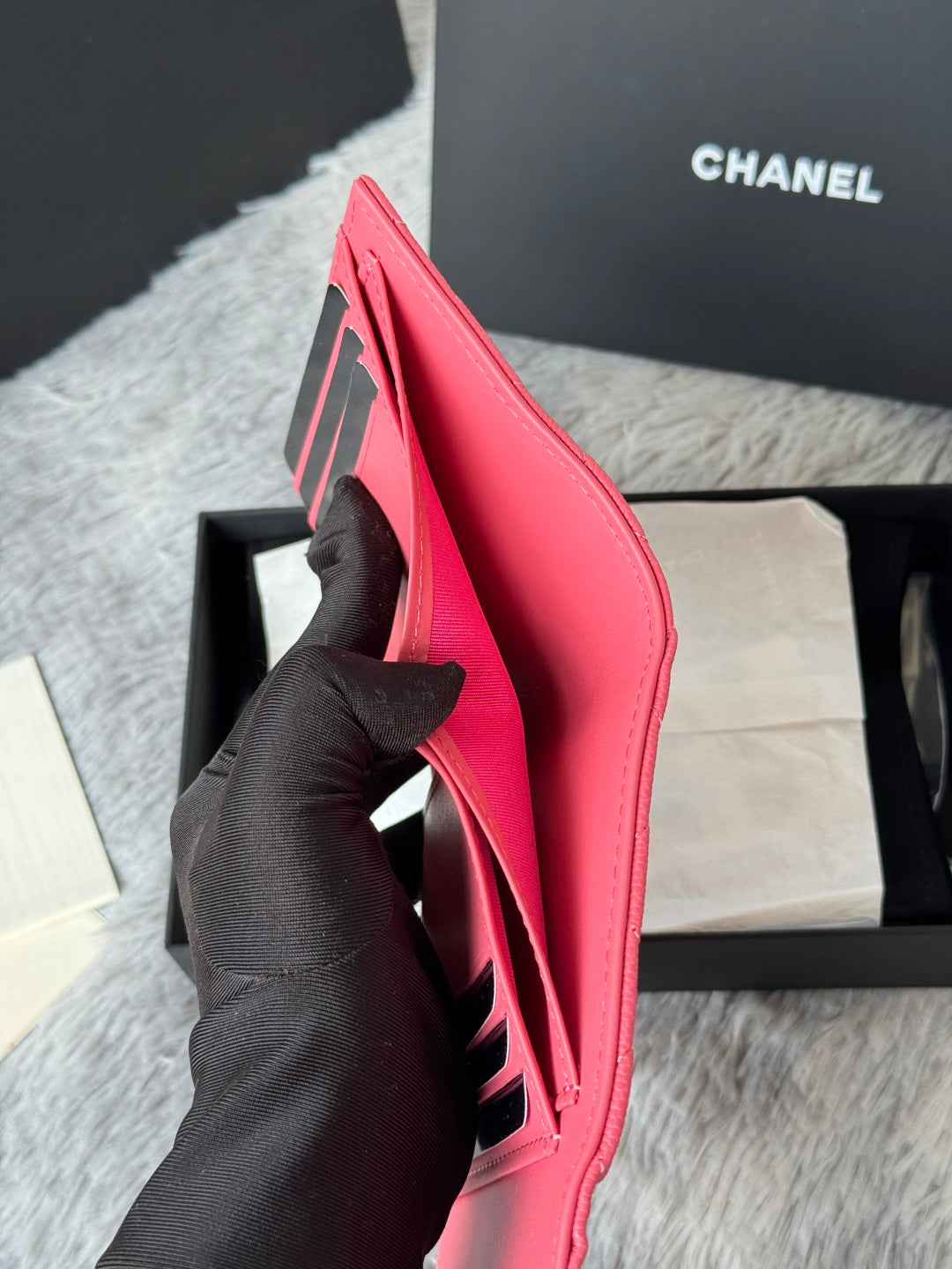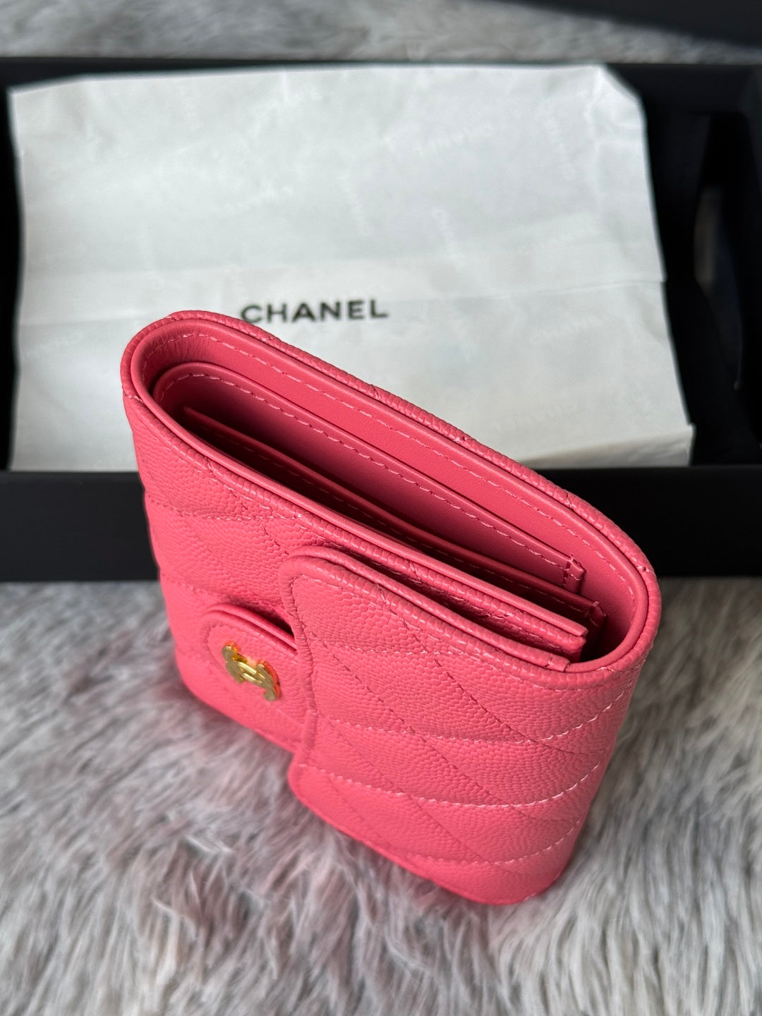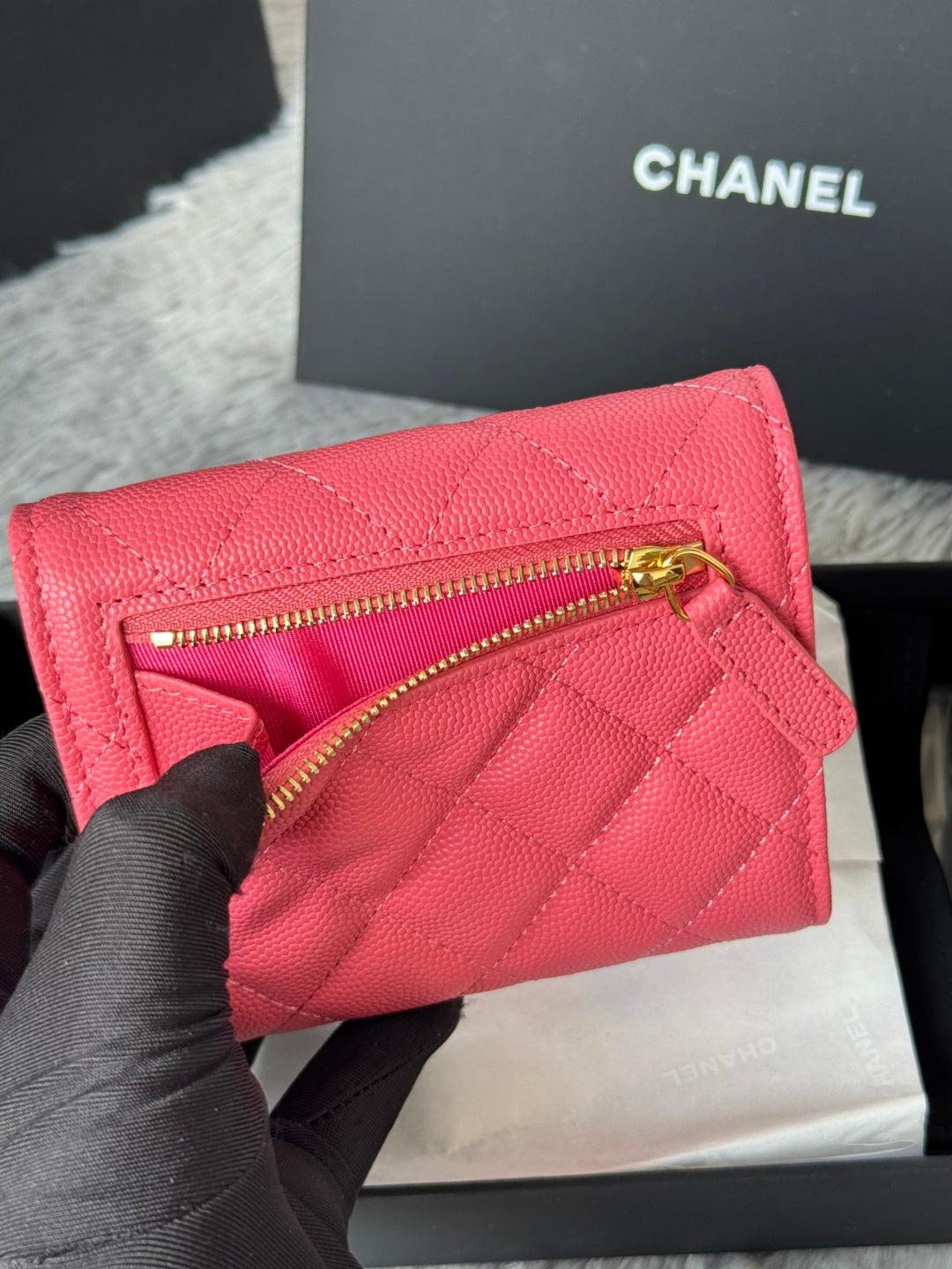 CHANEL 25S CF SMALL TRI FOLD WALLET 11 IN WATERMELON CAVIAR GOLD HARDWARE