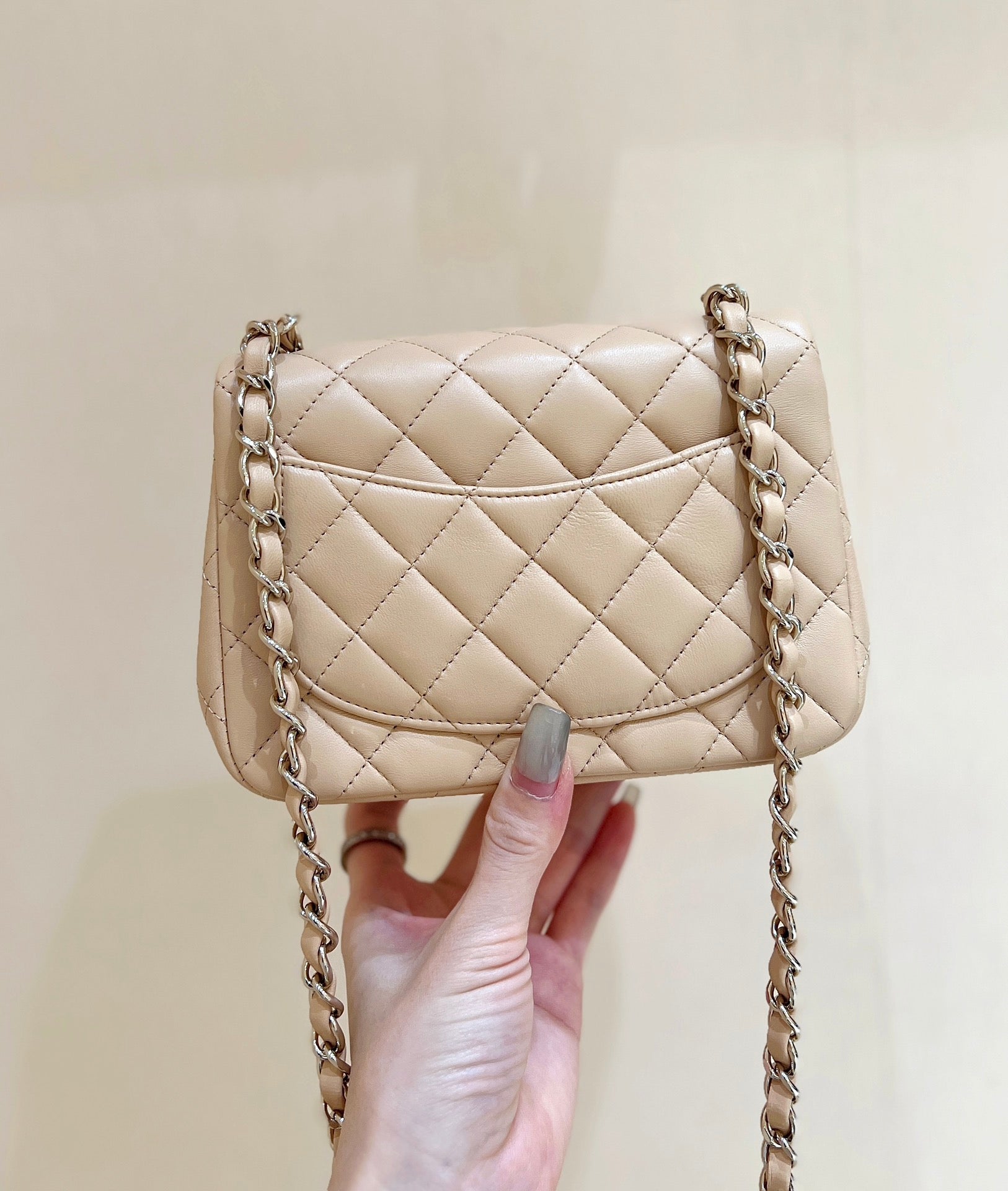CHANEL 25S FLAP BAG 17 CM IN LIGHT BEIGE LAMBSKIN WITH GOLD HARDWARE