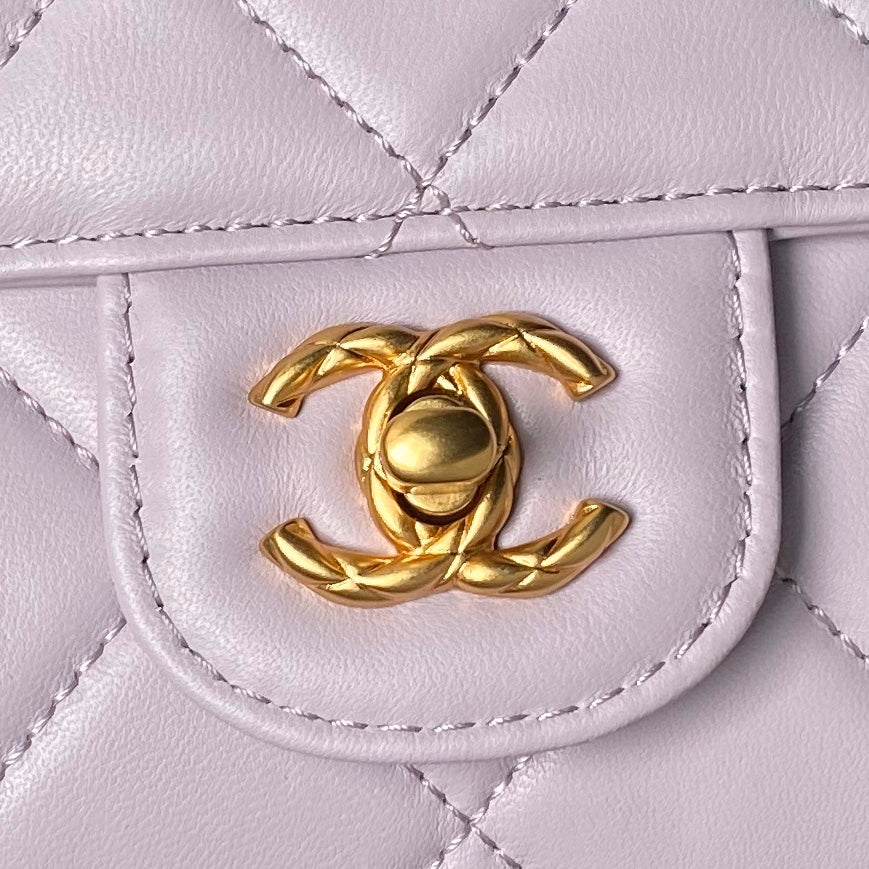 CHANEL 25S FLAP BAG 18 CM IN LIGHT PURPLE LAMBSKIN WITH TOP HANDLE