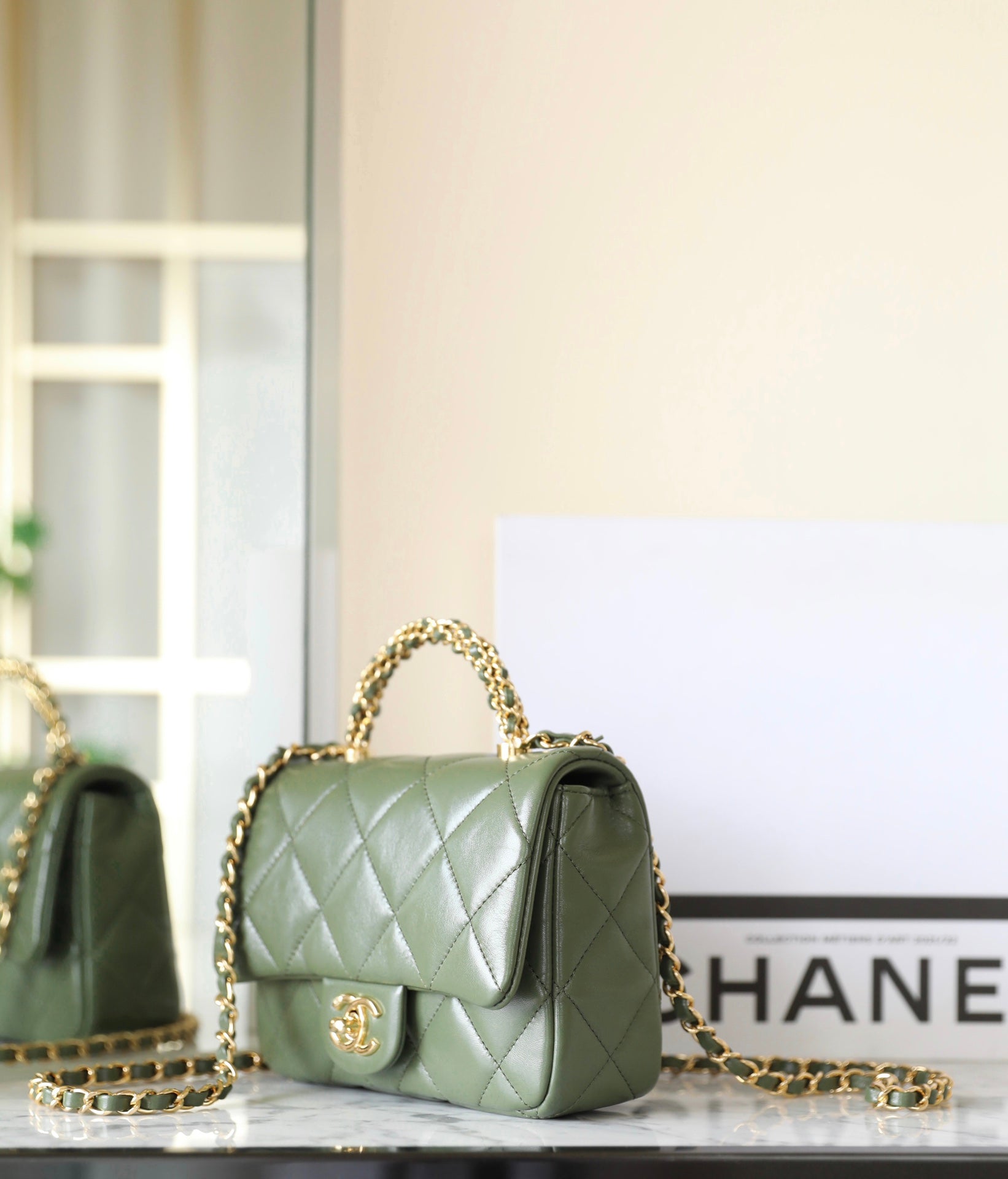 CHANEL 25S FLAP BAG 19 CM IN MOSS GREEN LAMBSKIN WITH GOLD HARDWARE