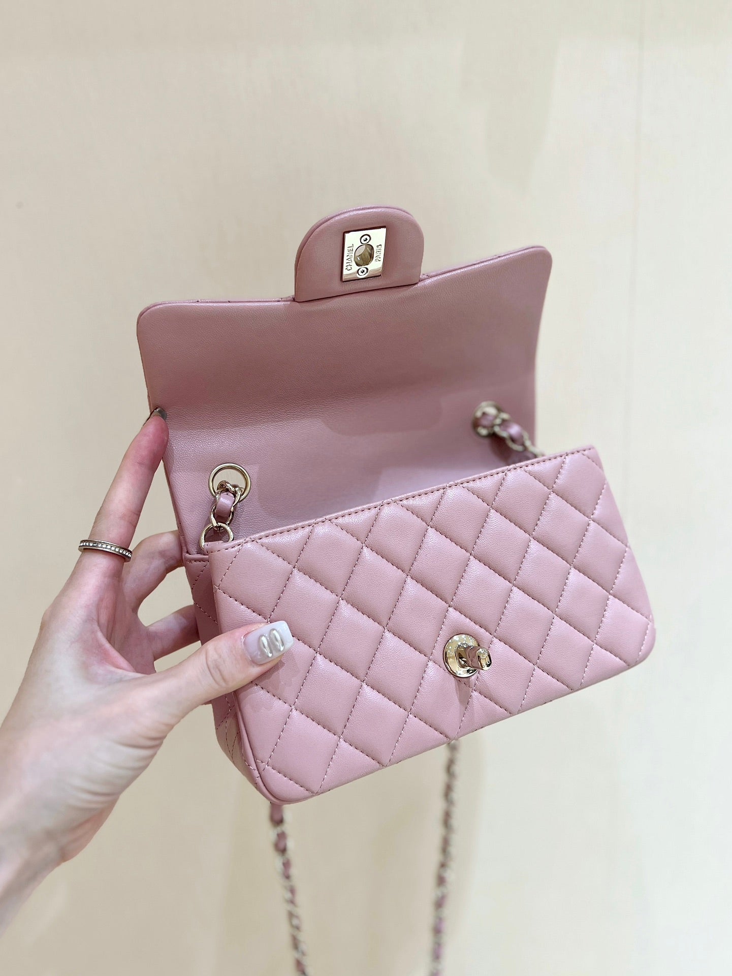 CHANEL 25S FLAP BAG 20 CM IN LIGHT PINK LAMBSKIN WITH GOLD HARDWARE