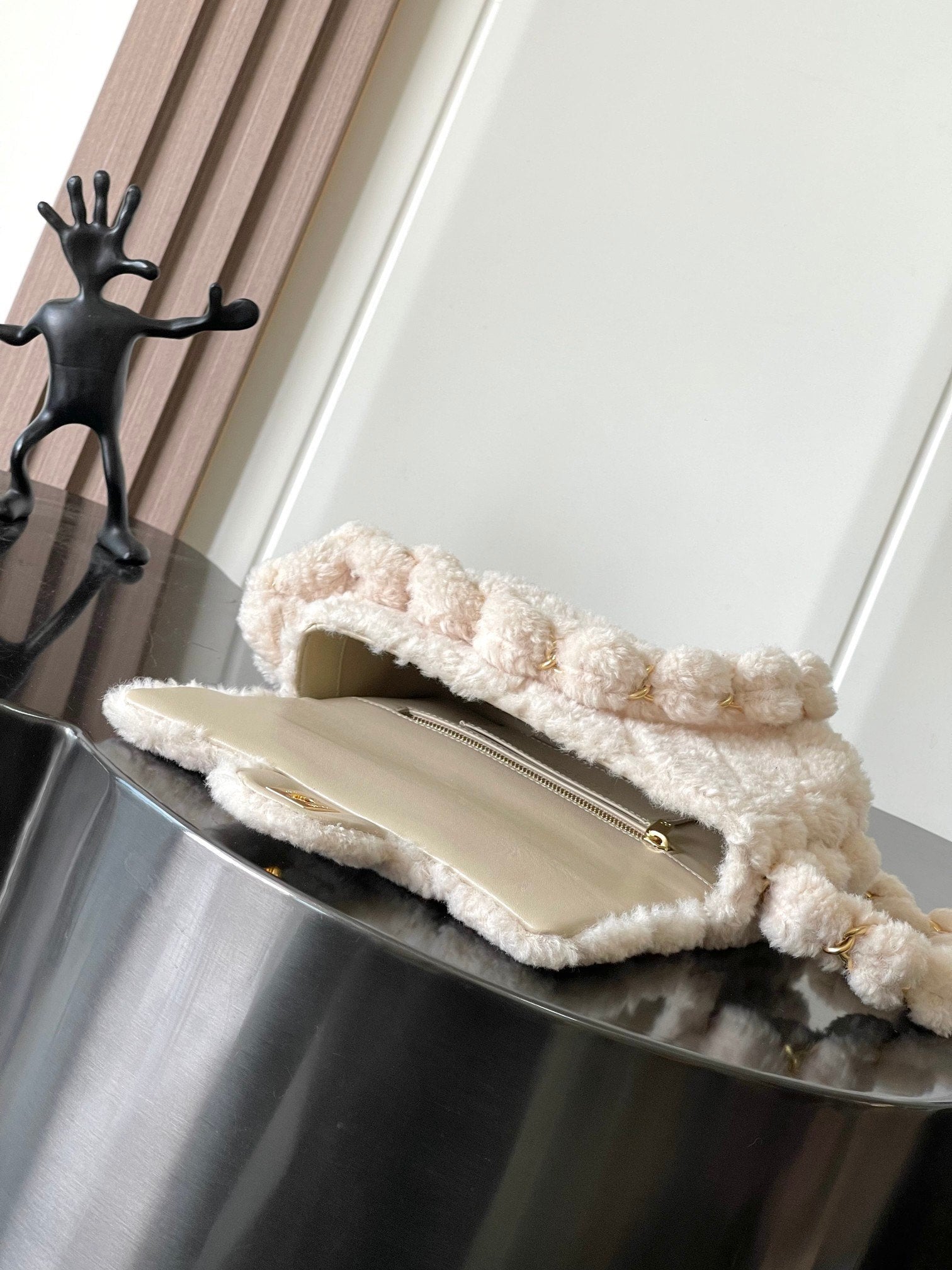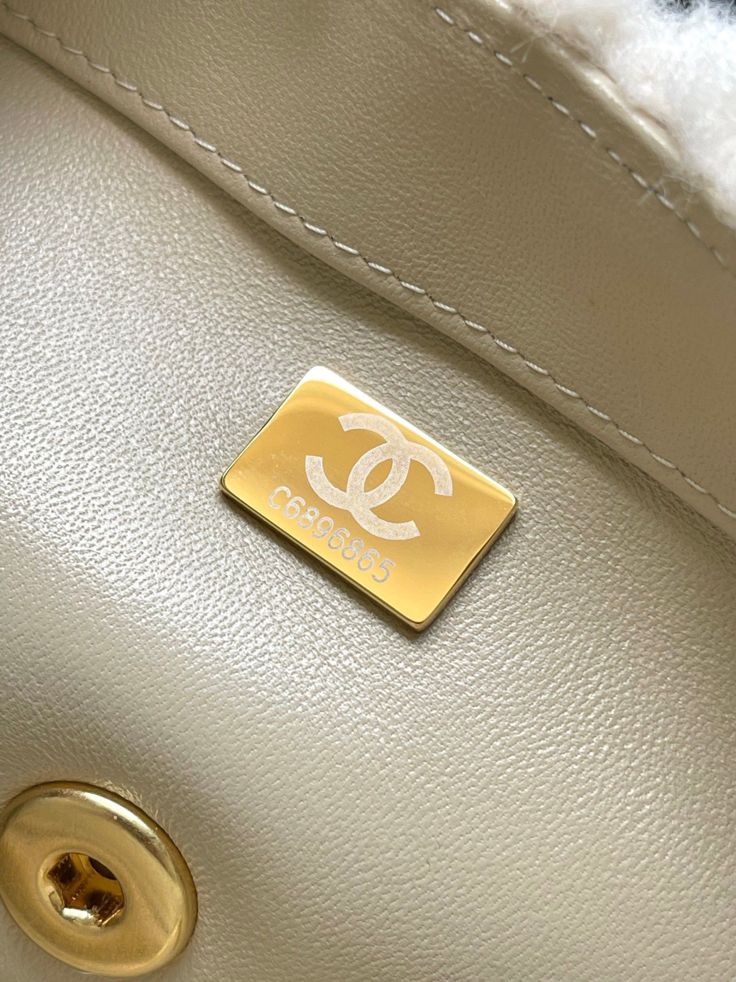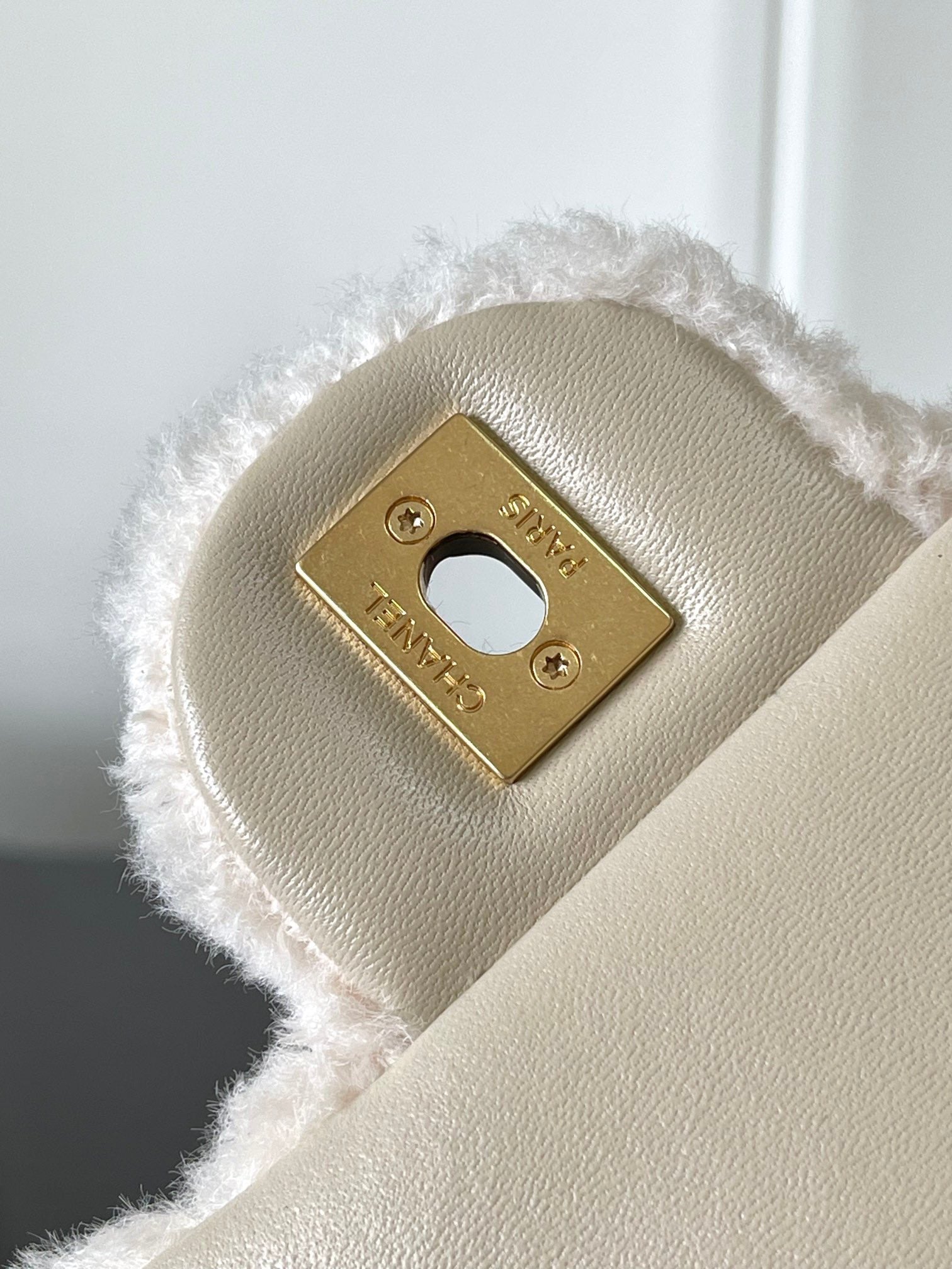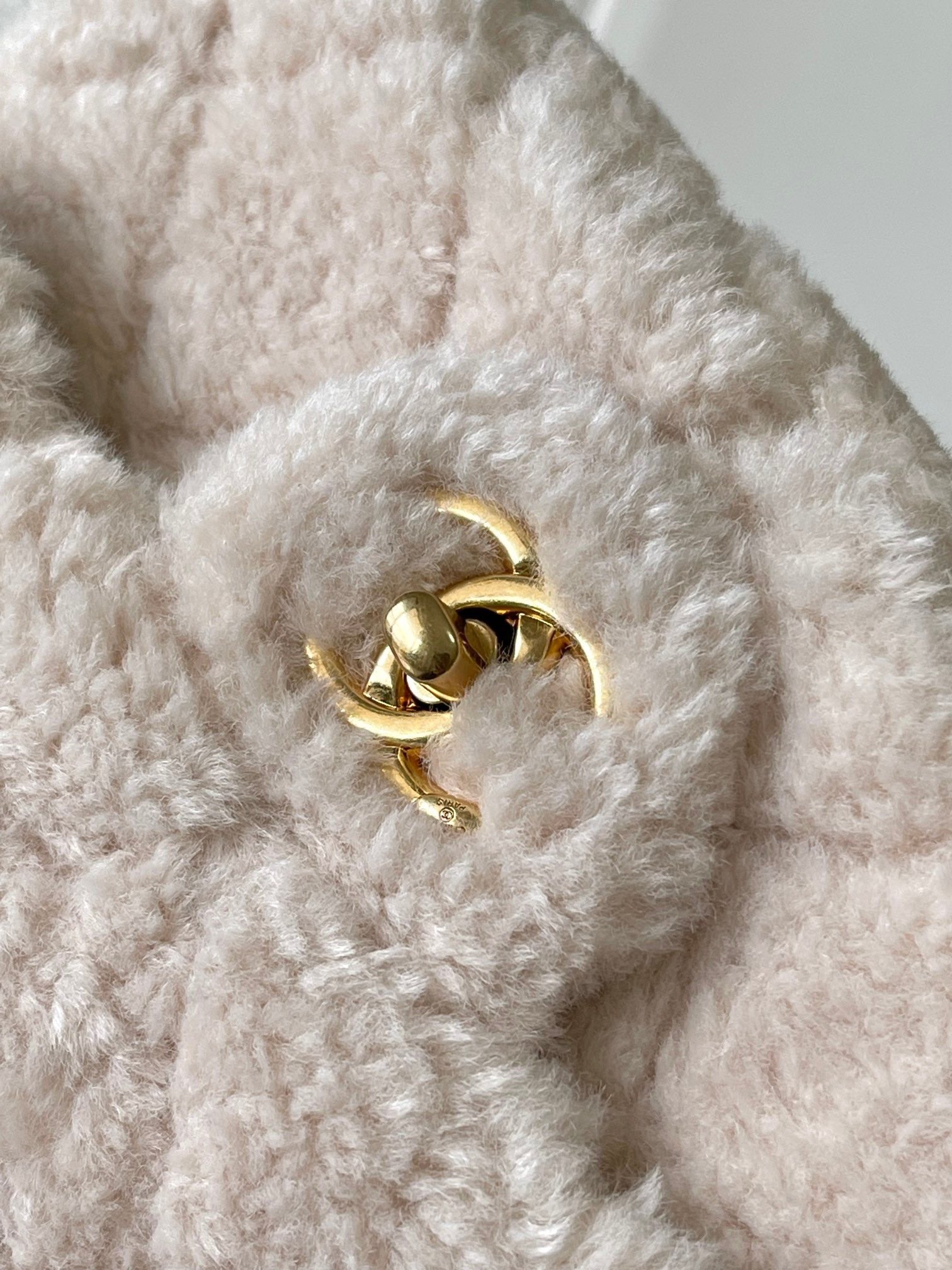 CHANEL 25S FLAP BAG 21 CM IN CREAM WHITE SHEEP WOOL WITH GOLD HARDWARE