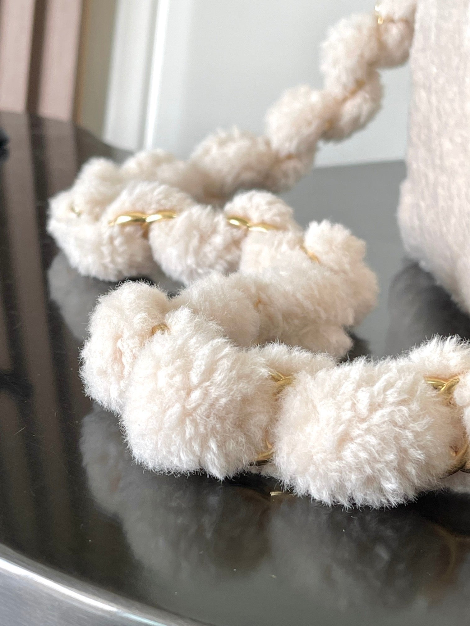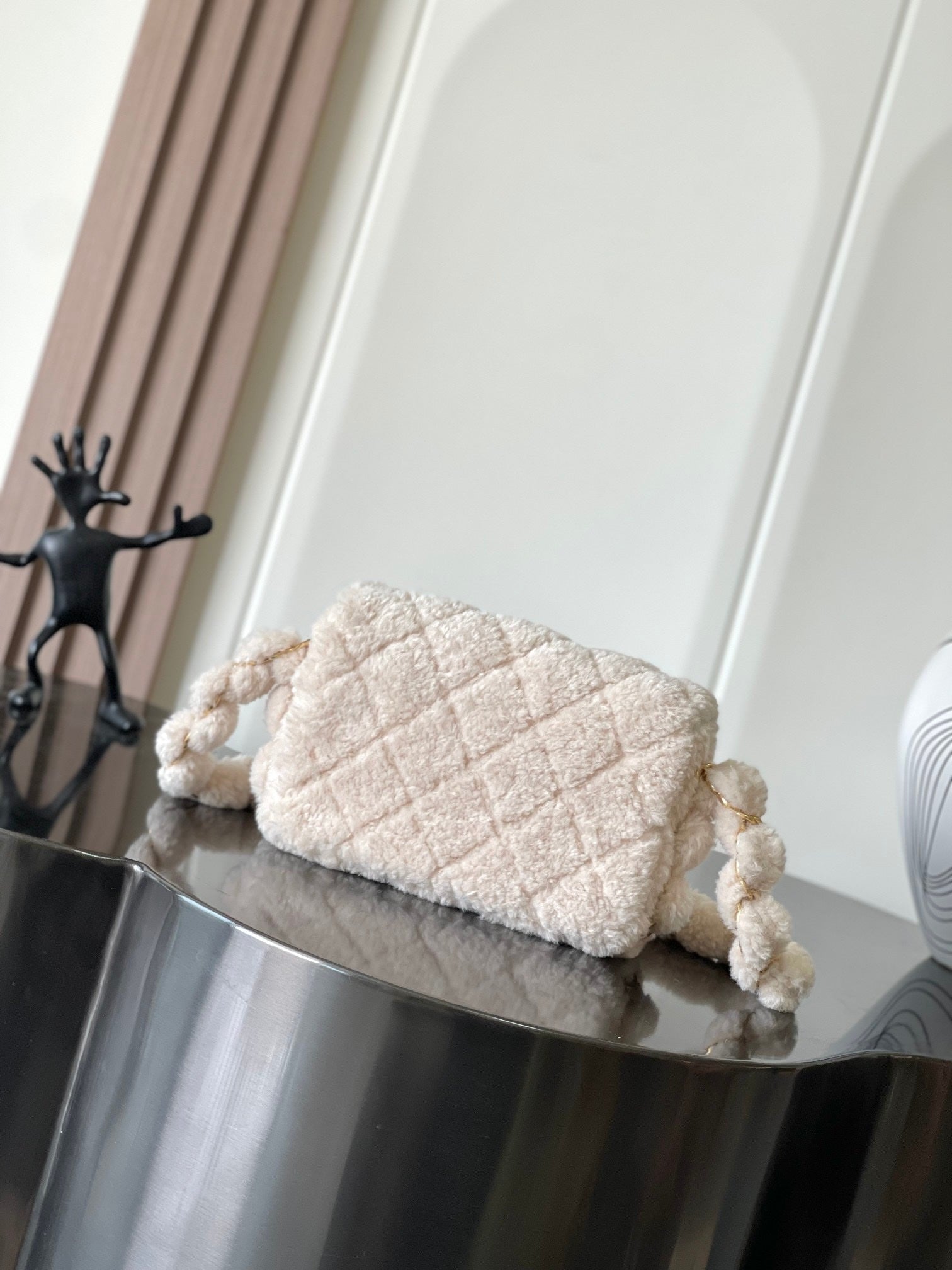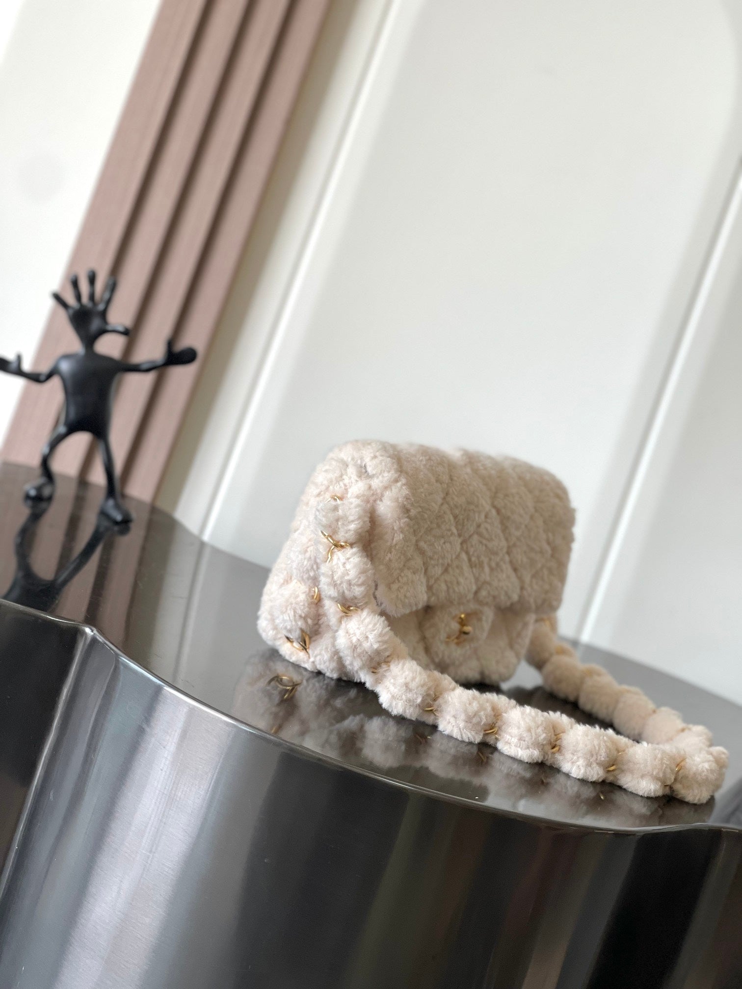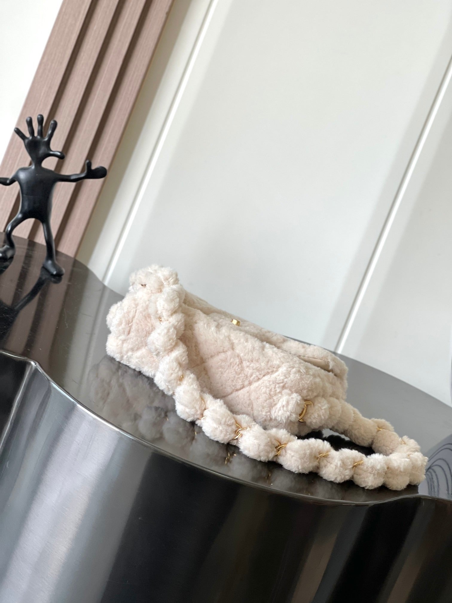 CHANEL 25S FLAP BAG 21 CM IN CREAM WHITE SHEEP WOOL WITH GOLD HARDWARE