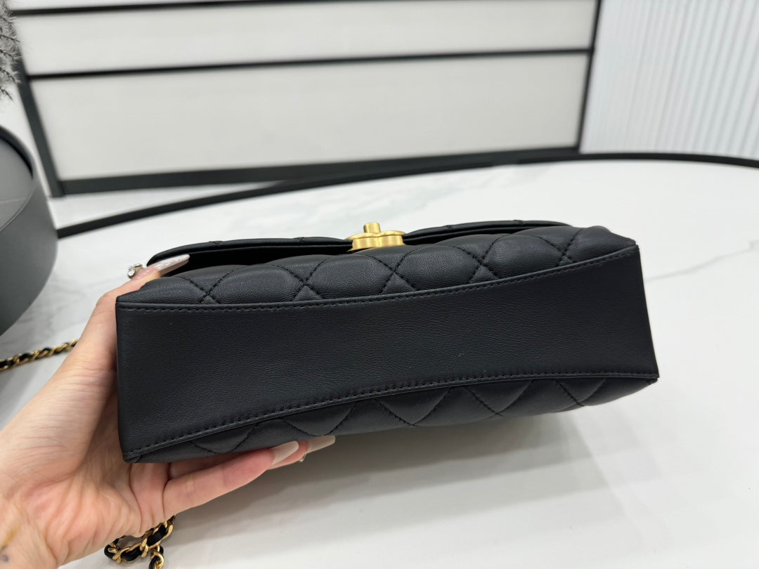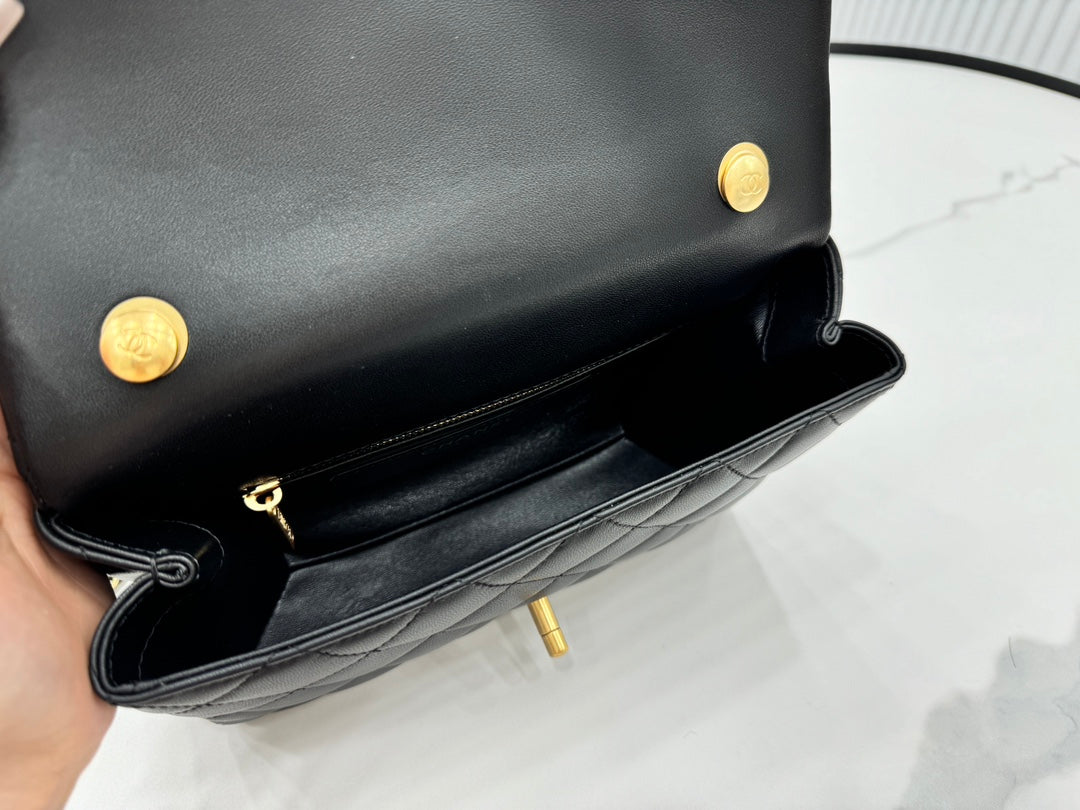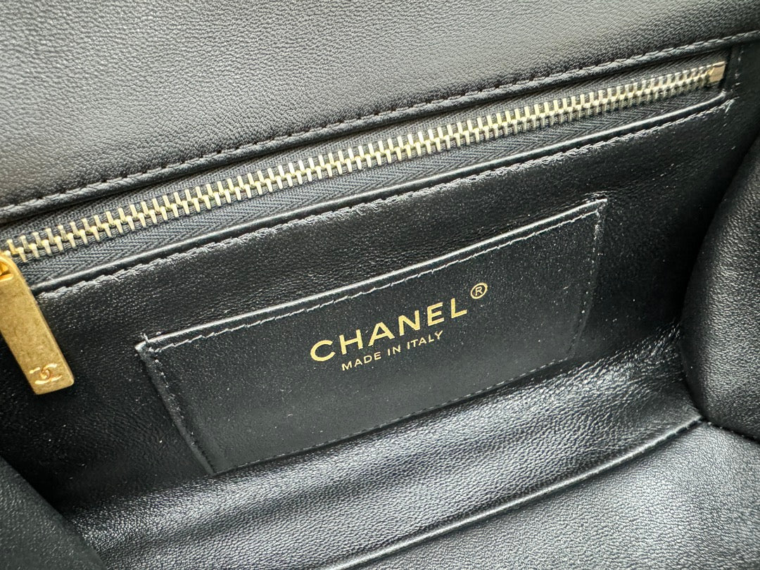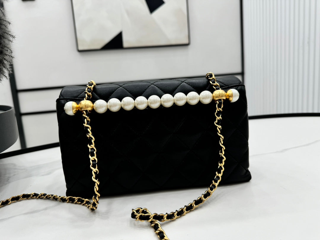 CHANEL 25S FLAP BAG 23 CM IN BLACK LAMBSKIN WITH PEARL TOP HANDLE