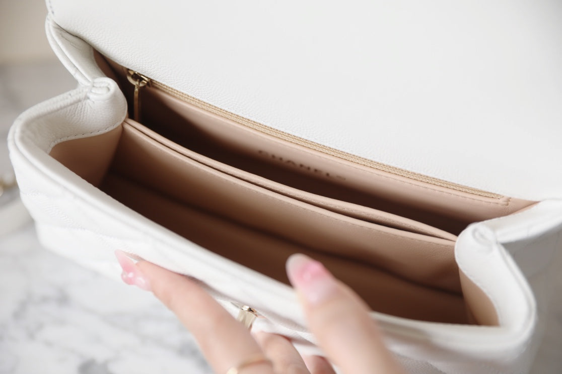 CHANEL 25S FLAP BAG 24 CM IN WHITE LAMBSKIN WITH GOLD HARDWARE