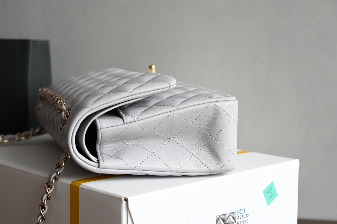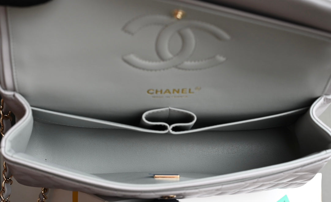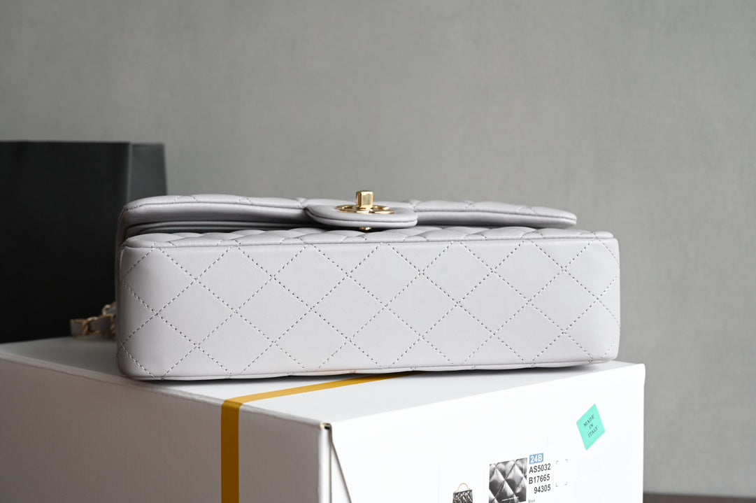 CHANEL 25S FLAP BAG 25.5 CM IN LIGHT GREY LAMBSKIN