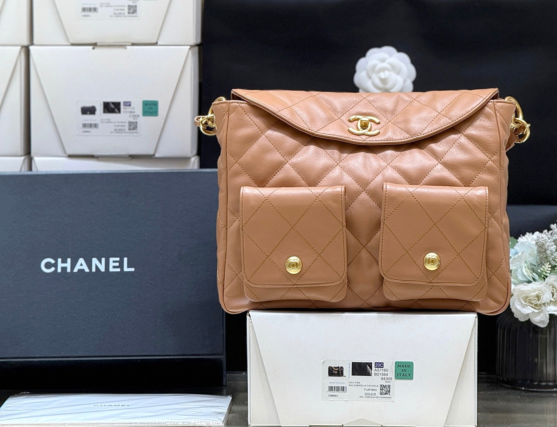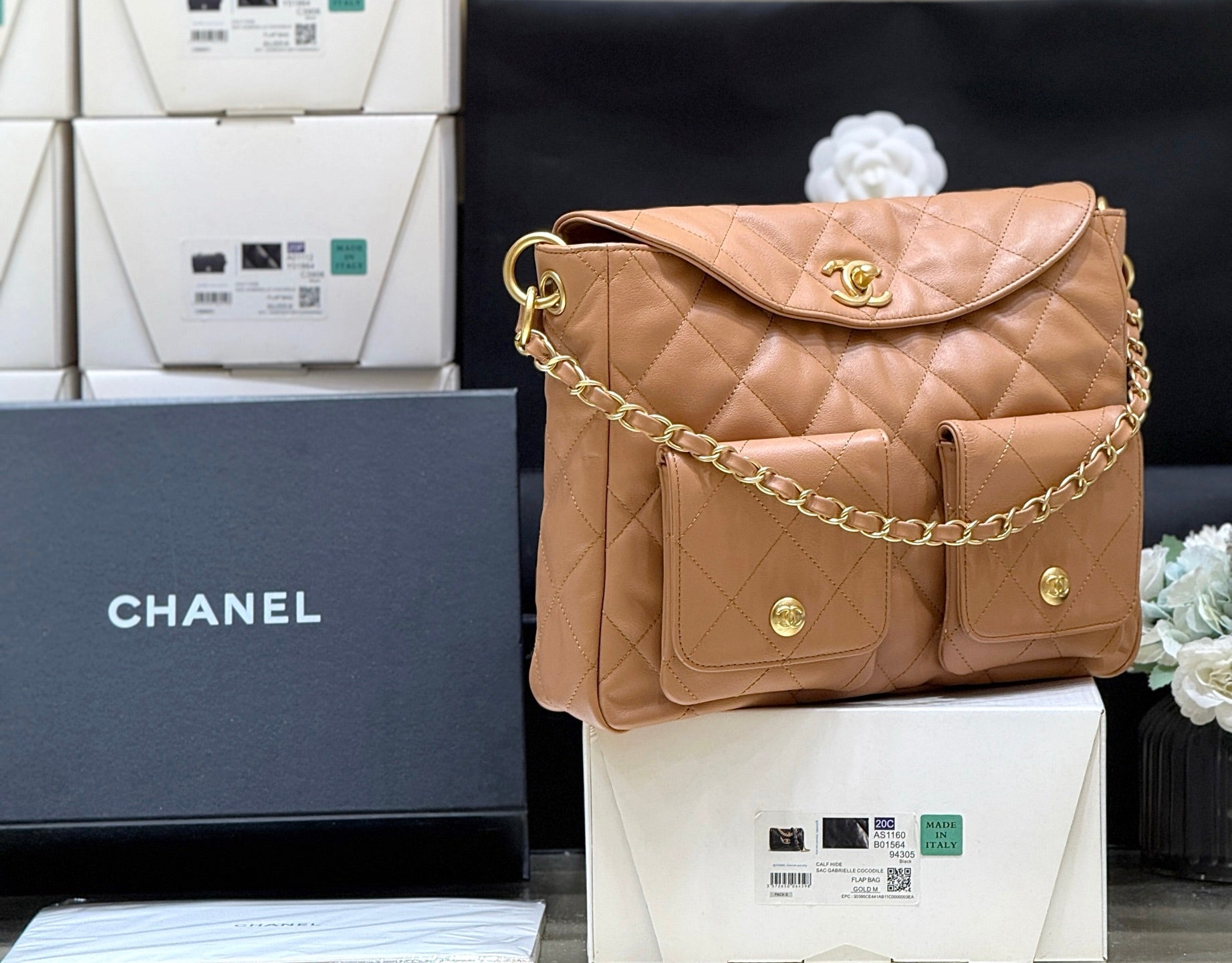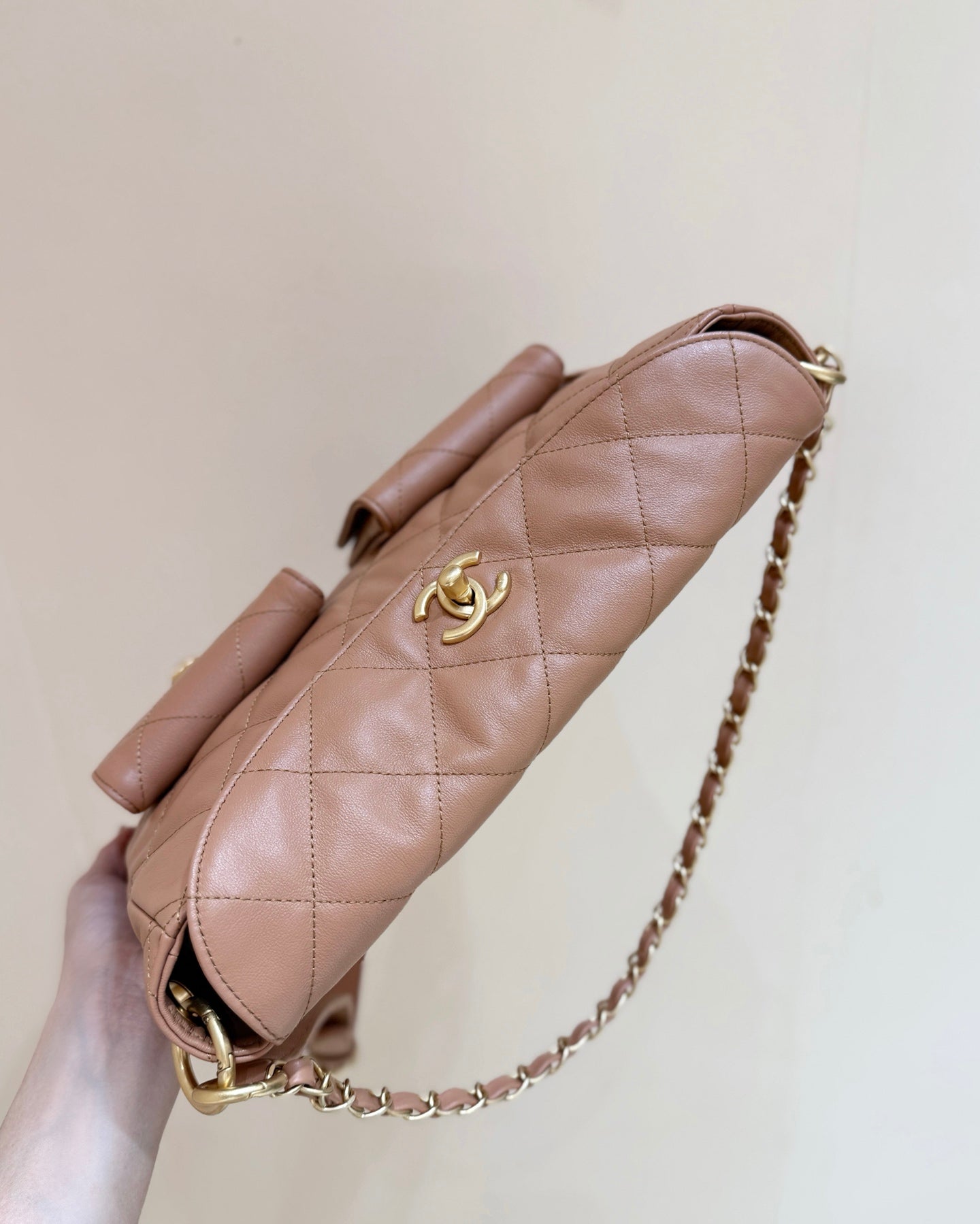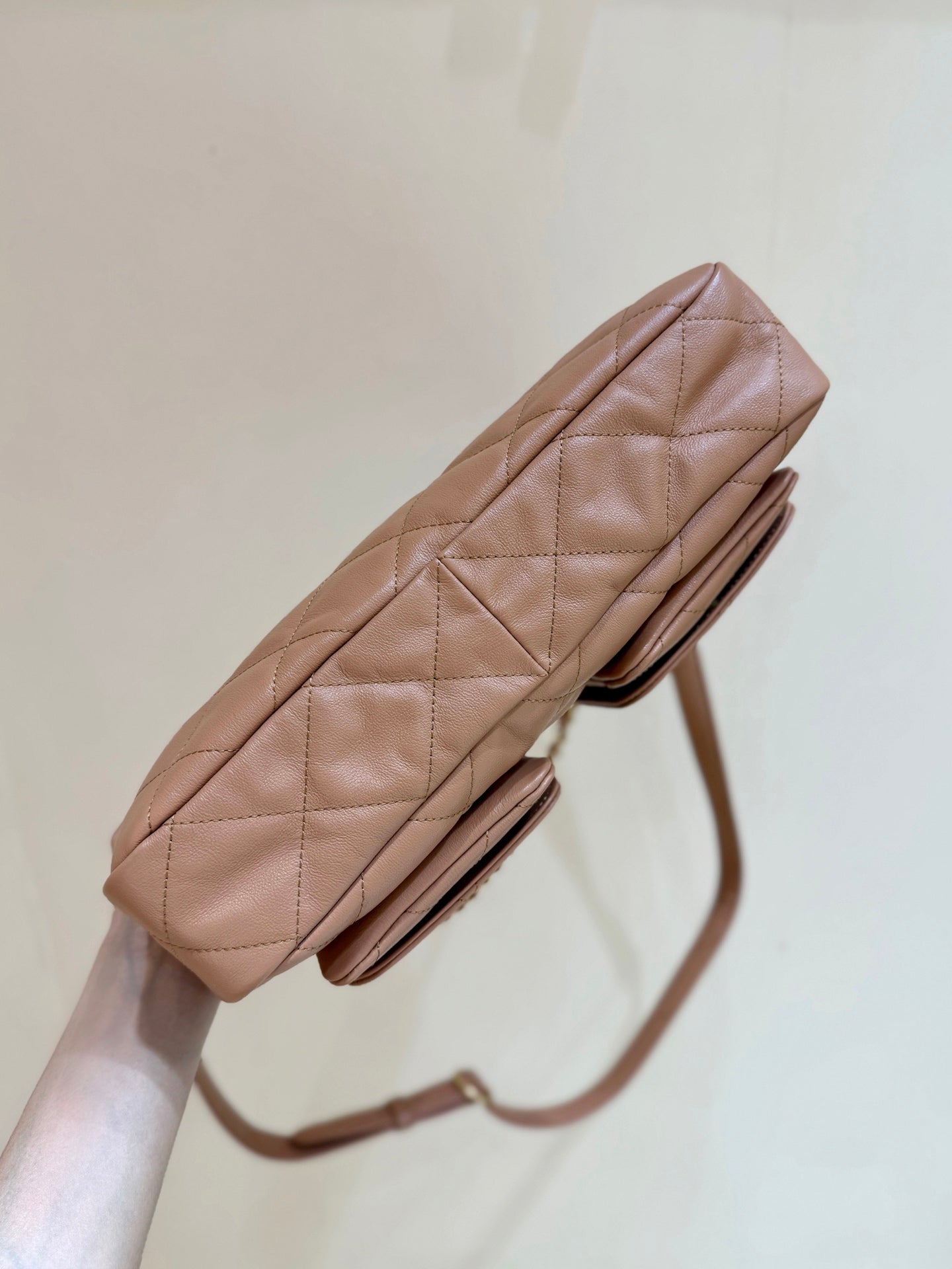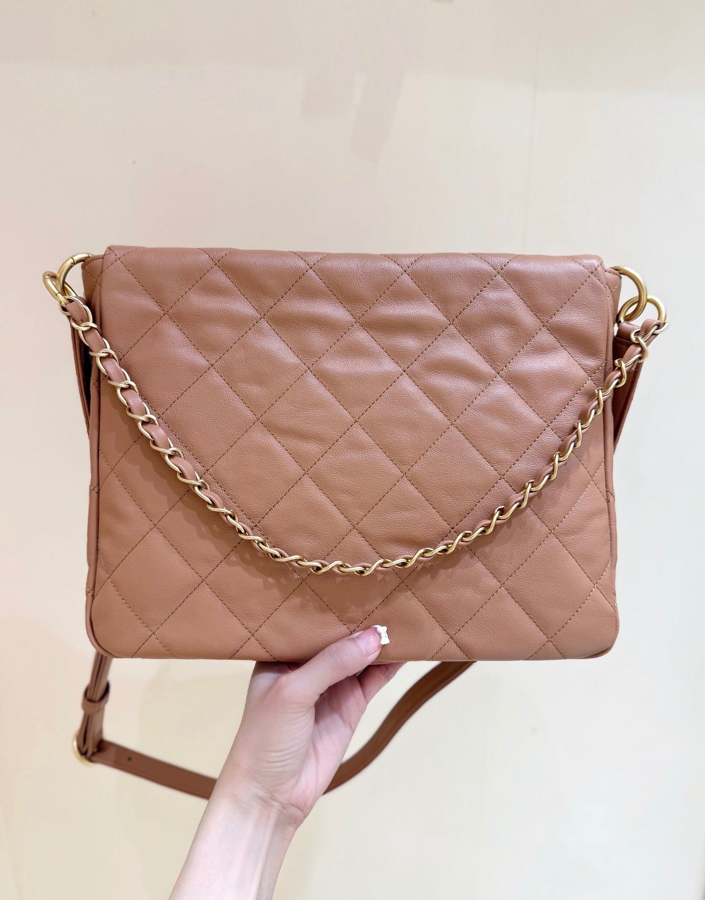 CHANEL 25S HIPPIE HOBO POSTMAN BAG 30 IN WARM TAUPE CALFSKIN GOLD HARDWARE