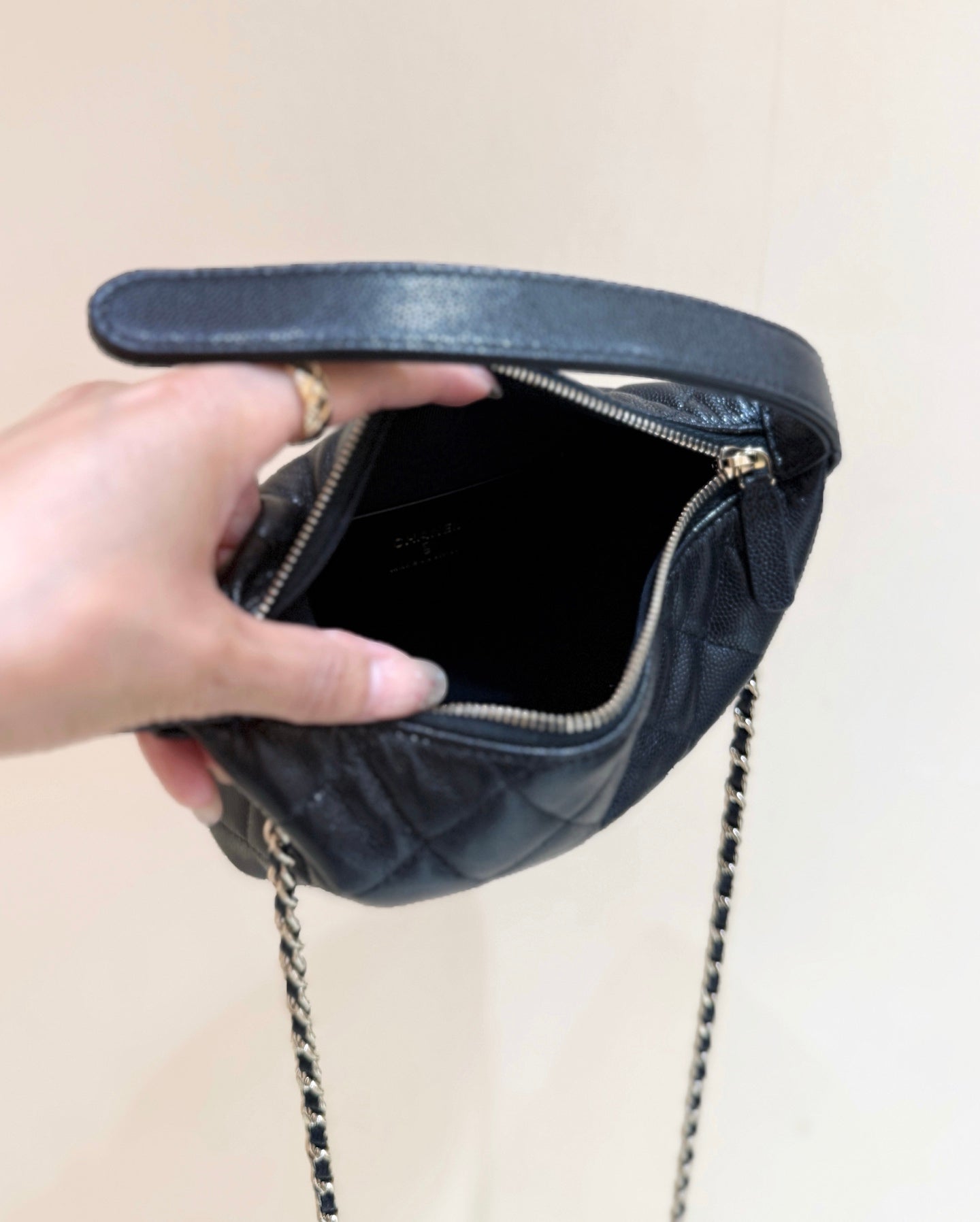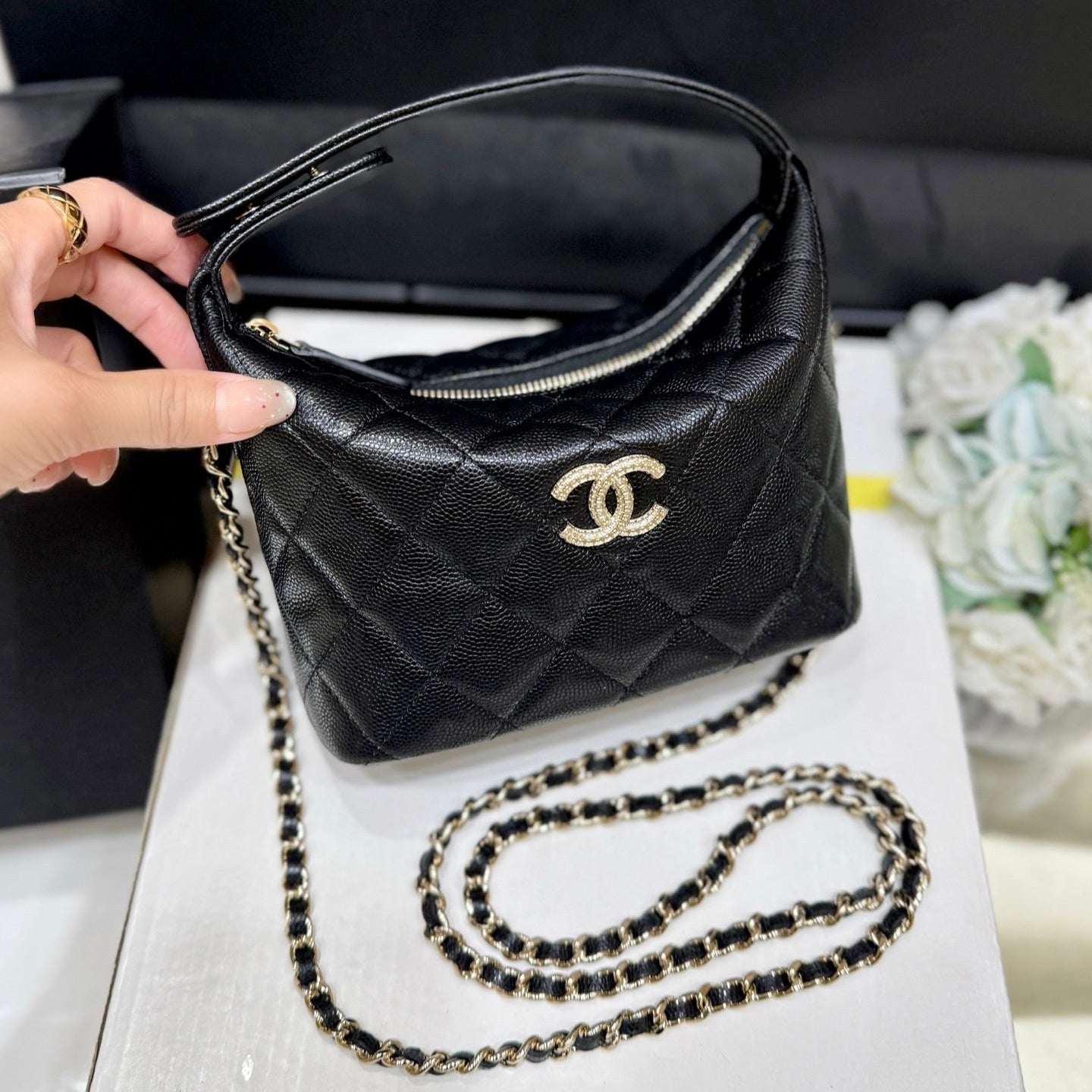 CHANEL 25S HOBO BAG 21 IN BLACK GRAINED CALFSKIN EMBELLISHED LOGO