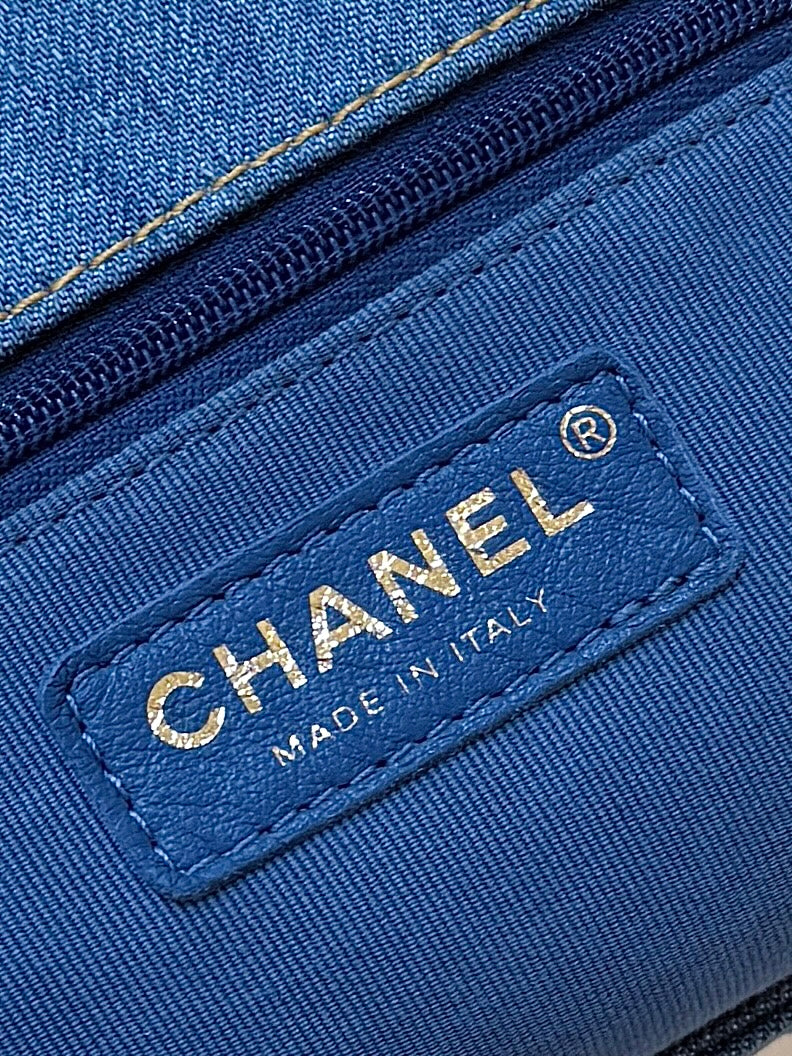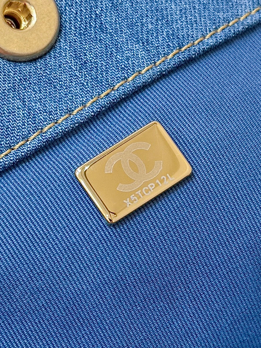 CHANEL 25S HOBO BAG 24 IN BLUE DENIM GOLD HARDWARE