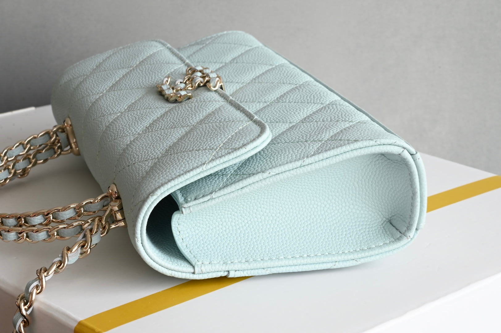 CHANEL 25S KELLY 18 CM IN SOFT MINT BLUE LAMBSKIN