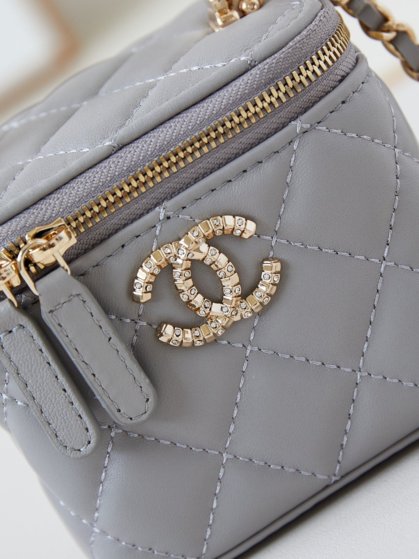 CHANEL 25S MINI VANITY BAG 11 CM IN GREY LAMBSKIN WITH CRYSTAL-EMBELLISHED CC LOGO