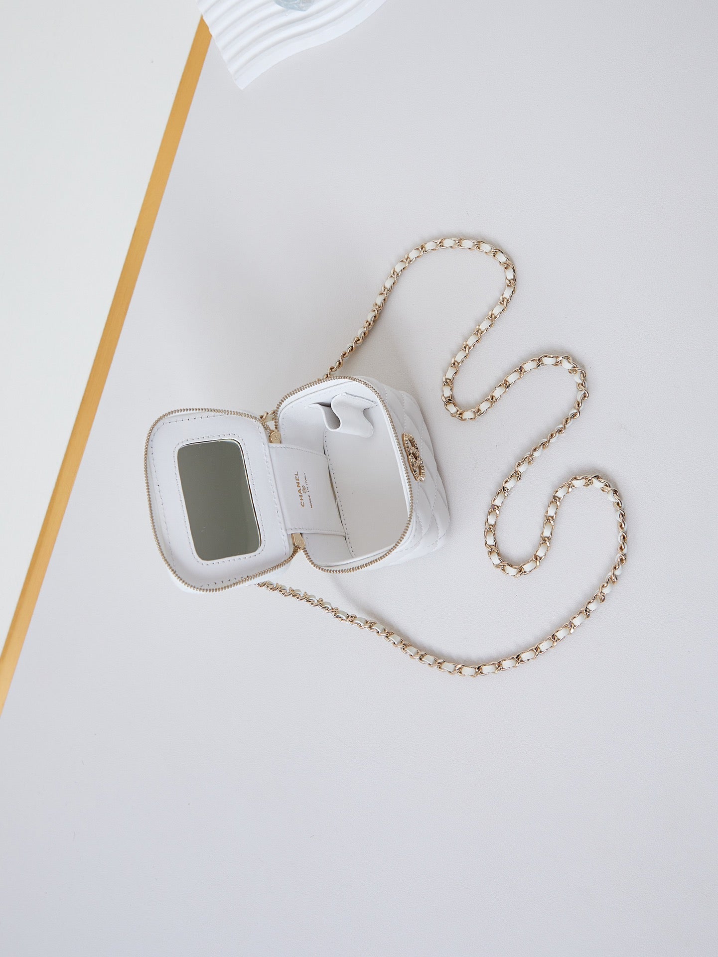 CHANEL 25S MINI VANITY BAG 11 CM IN WHITE LAMBSKIN WITH CRYSTAL-EMBELLISHED CC LOGO