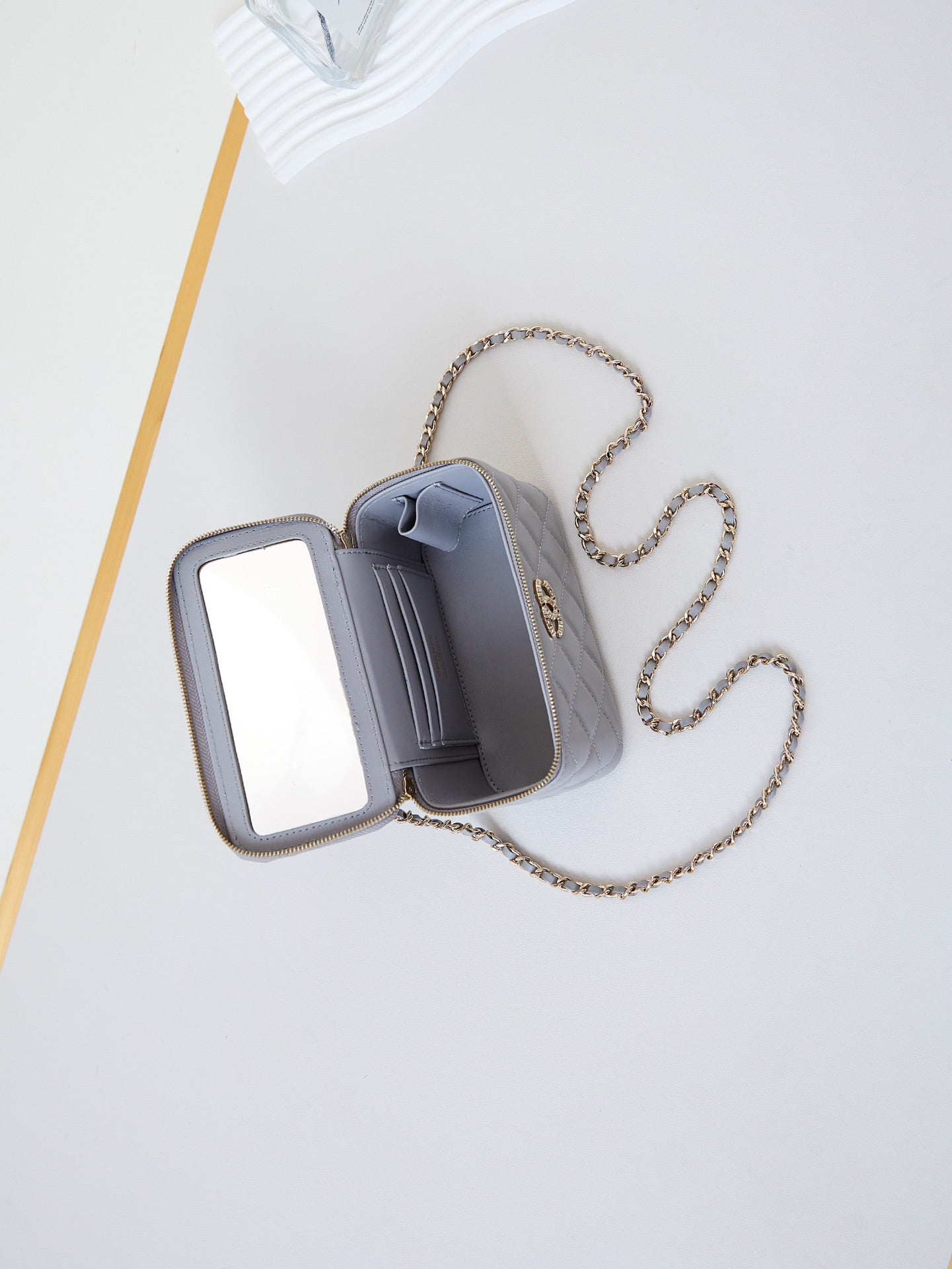 CHANEL 25S MINI VANITY BAG 16 CM IN GREY LAMBSKIN WITH CRYSTAL-EMBELLISHED CC LOGO