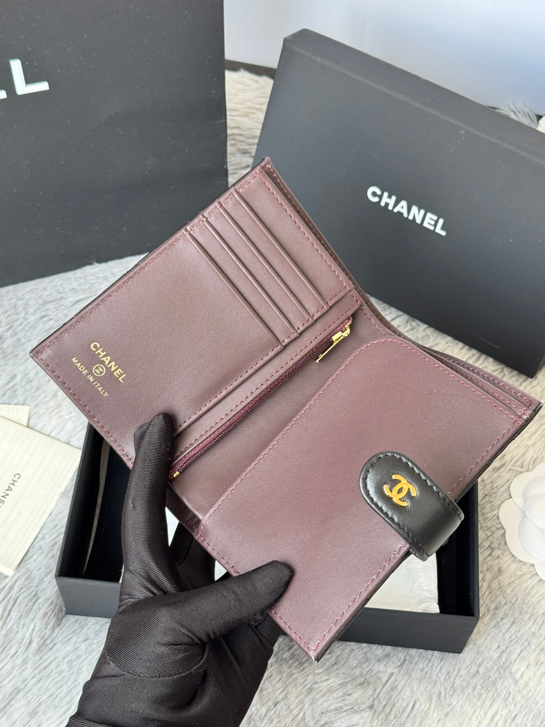 CHANEL 25S MULTI PURPOSE PASSPORT WALLET 15 IN BLACK LAMBSKIN GOLD HARDWARE