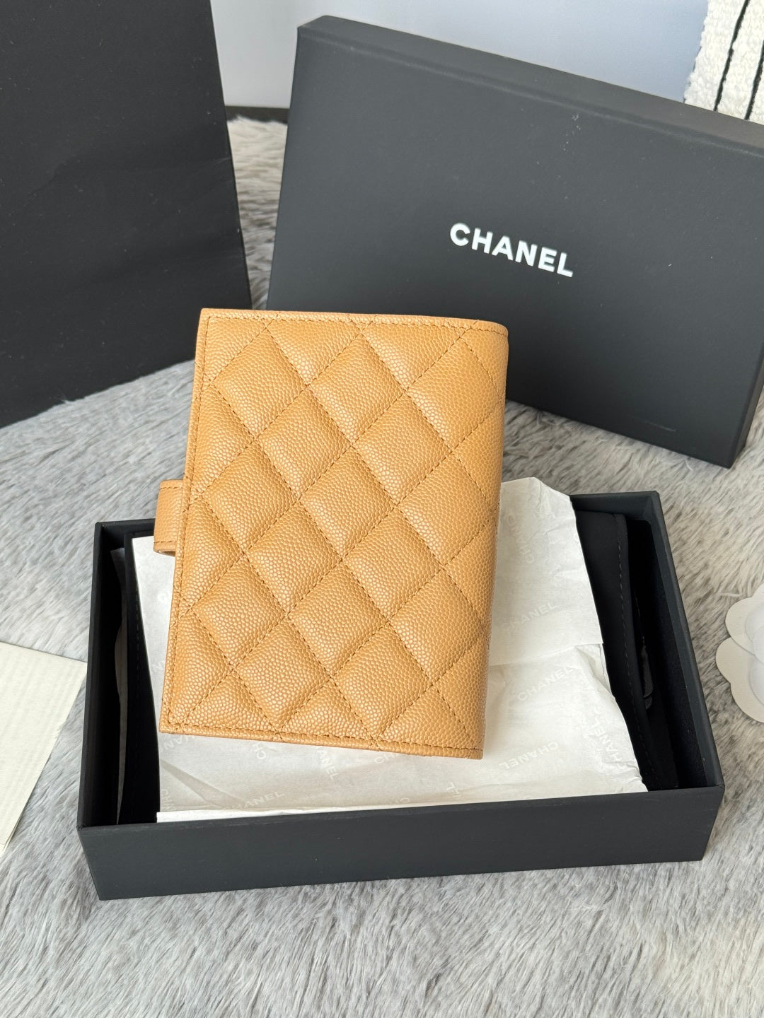 CHANEL 25S MULTI PURPOSE PASSPORT WALLET 15 IN GOLDEN CARAMEL CALFSKIN GOLD HARDWARE