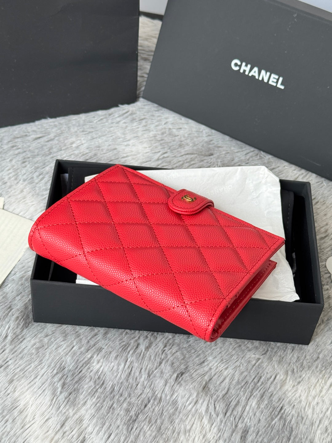 CHANEL 25S MULTI PURPOSE PASSPORT WALLET 15 IN VIVID RED CALFSKIN GOLD HARDWARE