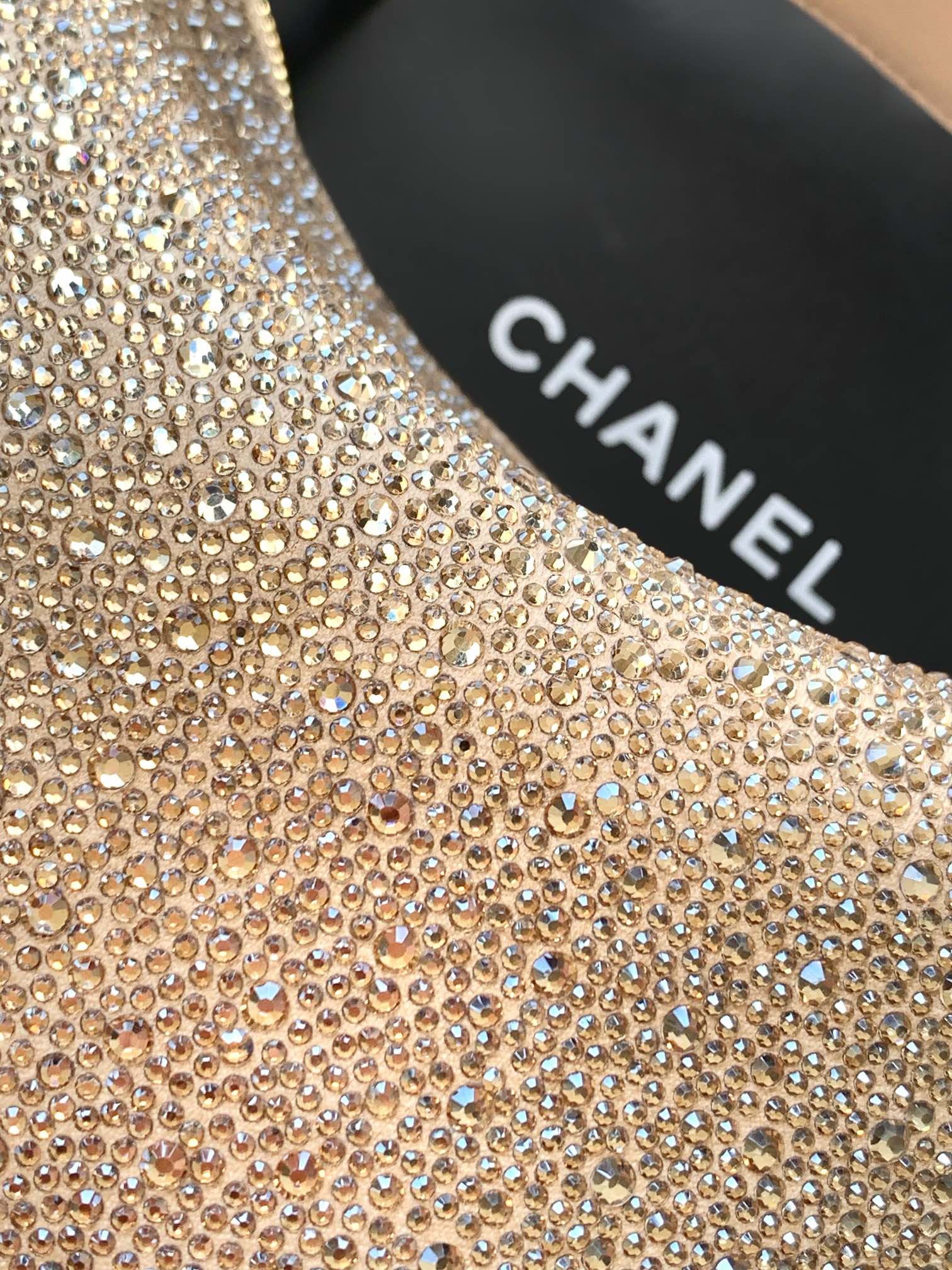 CHANEL 25S SHOPPING BAG 18 CM IN BEIGE RHINESTONE-STUDDED