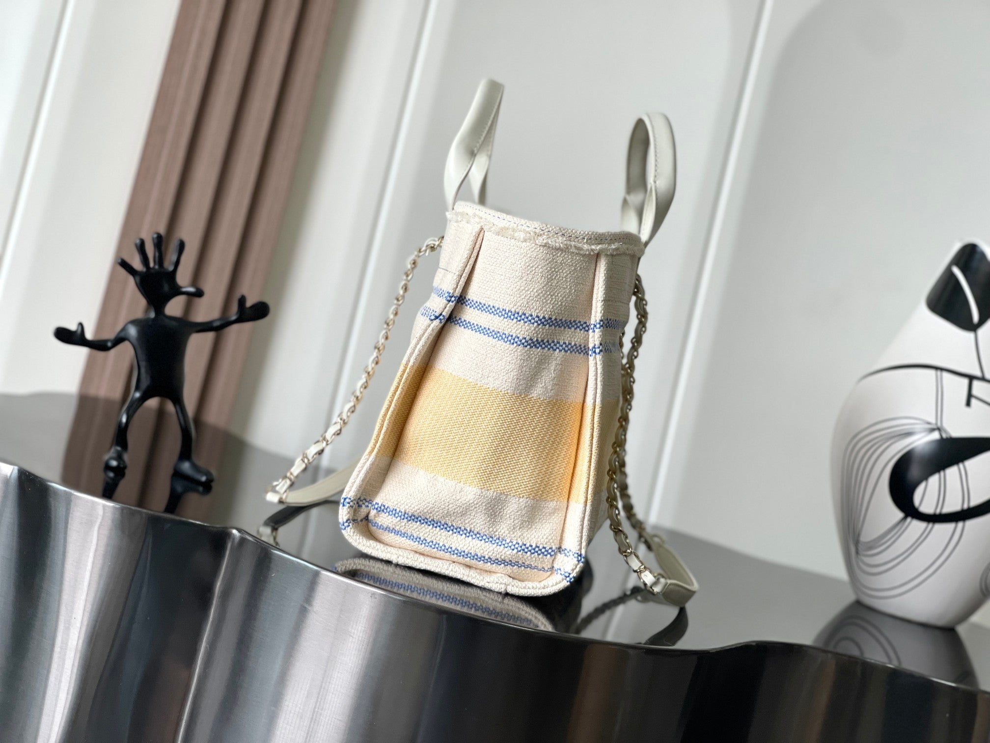 CHANEL 25S SHOPPING BAG 35 IN CREAM WHITE AND YELLOW CANVAS