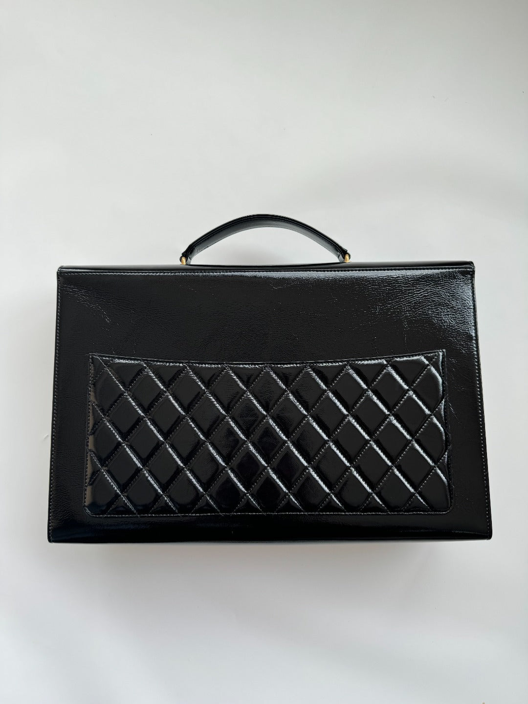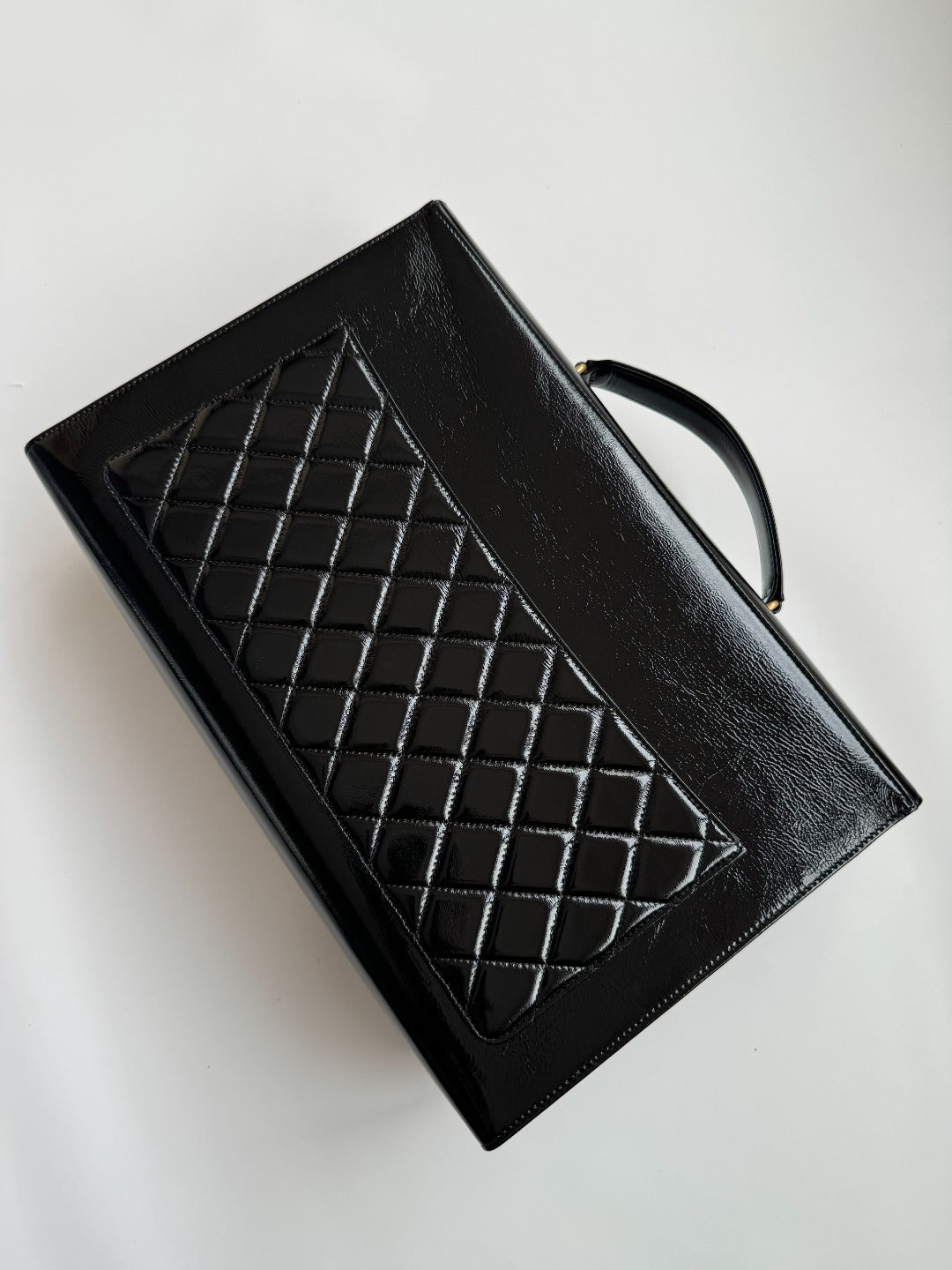 CHANEL 25S TOP HANDLE BAG 36 CM IN BLACK LAMBSKIN WITH GOLD HARDWARE