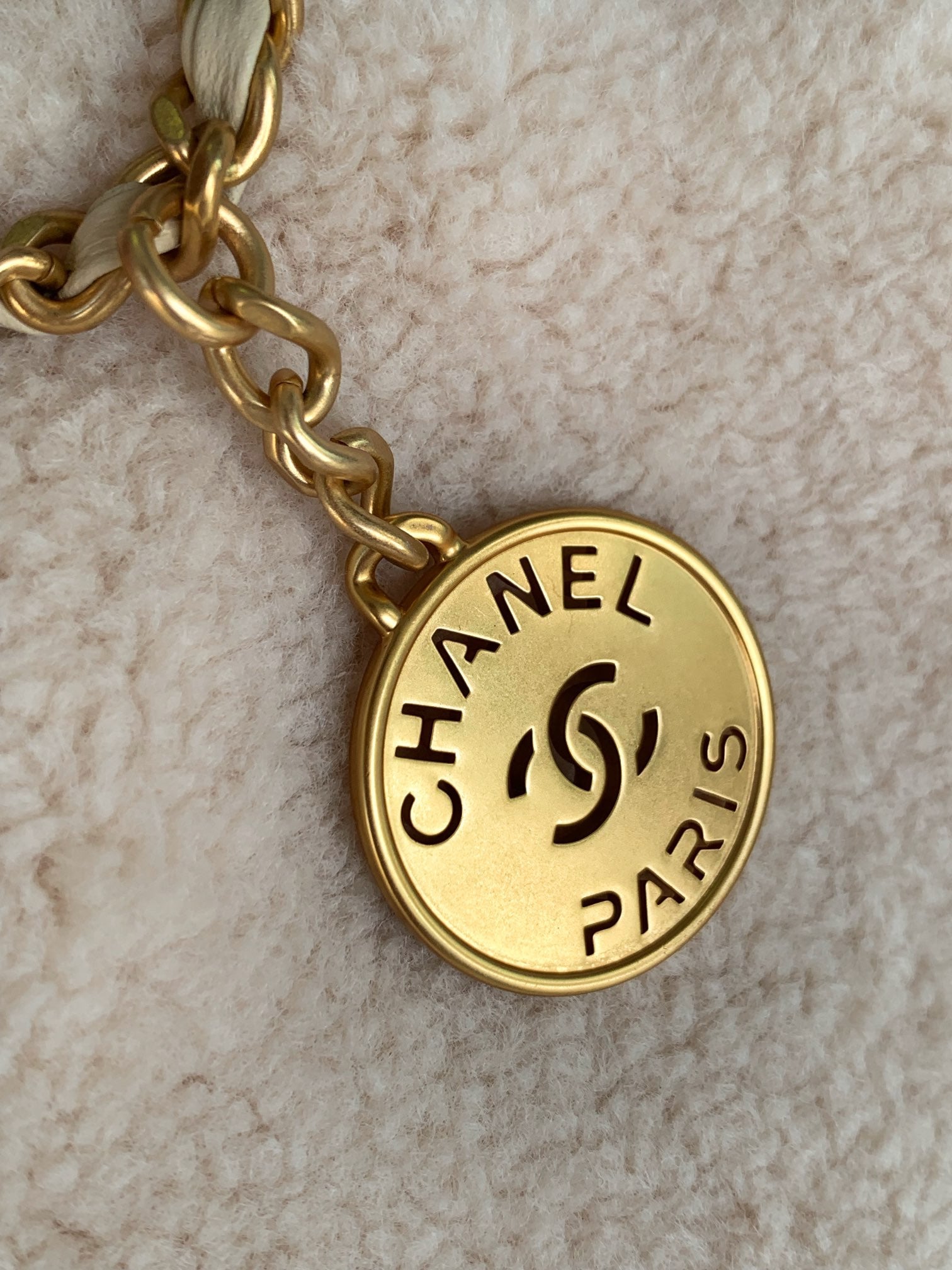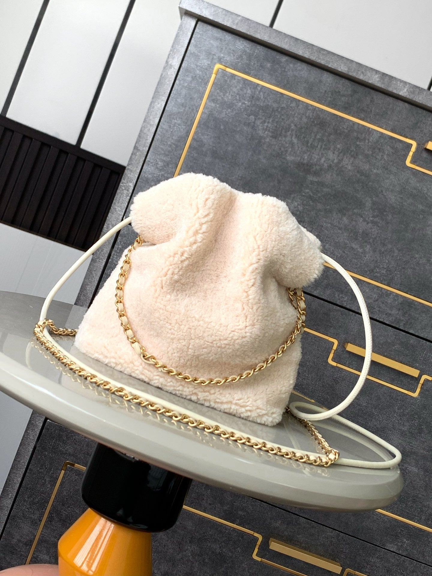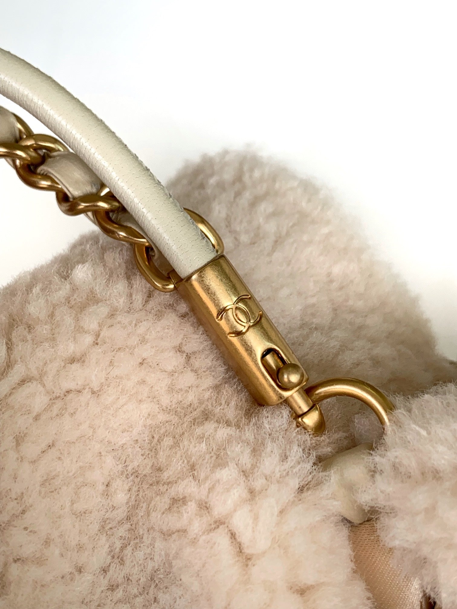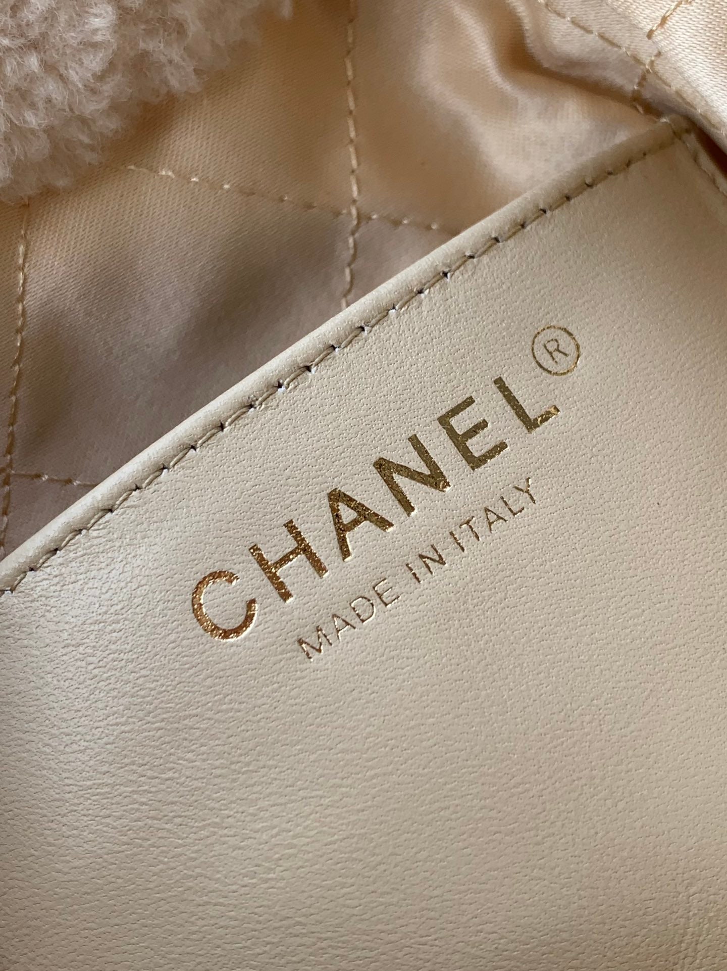 CHANEL BAG 25S 20 CM IN CREAM WHITE WOOL WITH GOLD HARDWARE