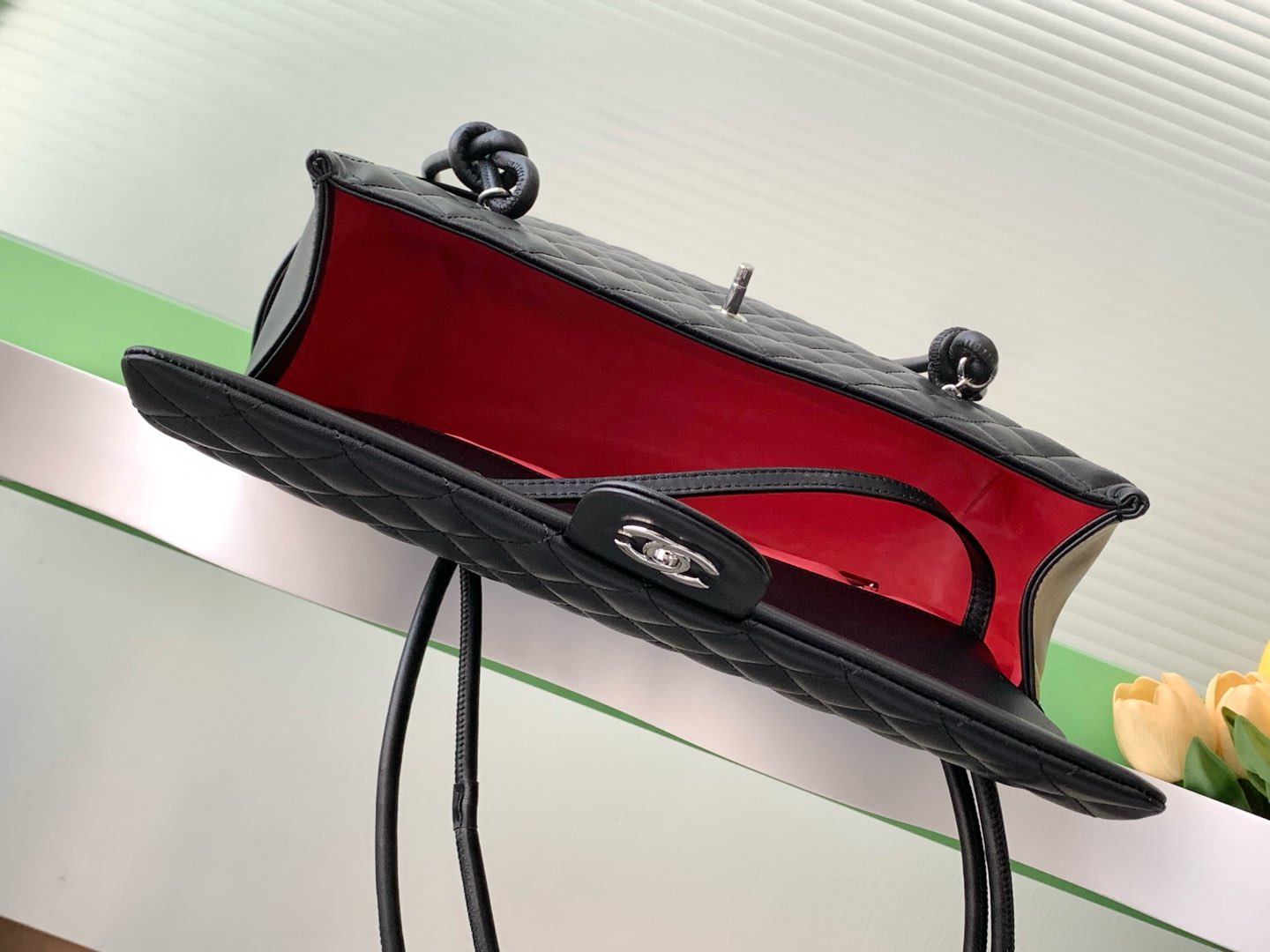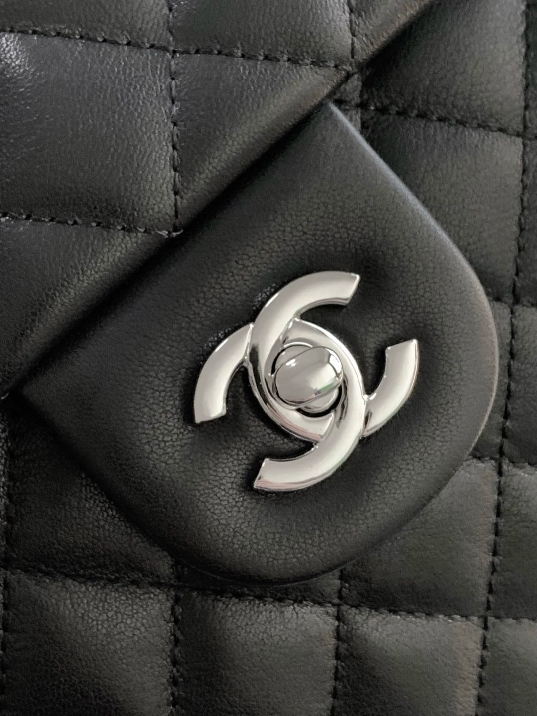 CHANEL CAMBON LARGE FLAP 25S 33 CM IN BLACK CALFSKIN WITH LOGO