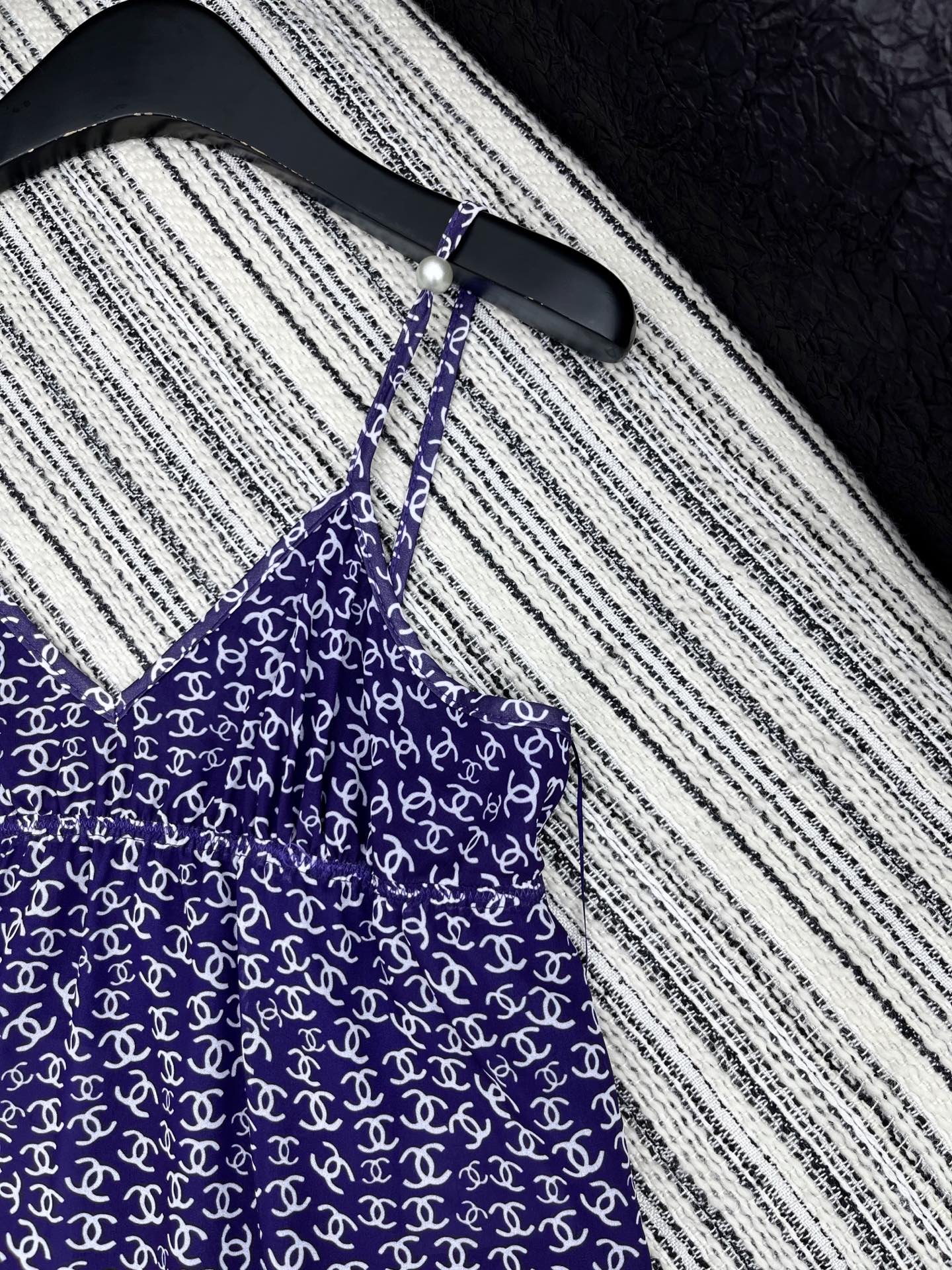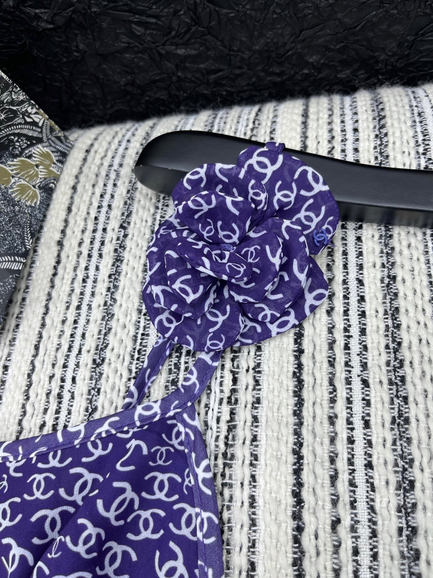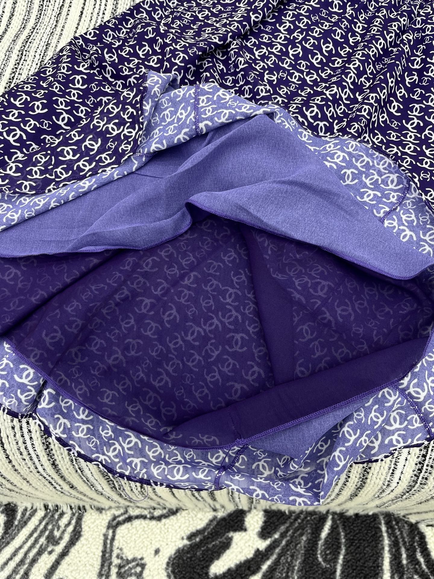 CHANEL DARK PURPLE SILK CAMELLIA DRESS WITH PEARL DETAILS